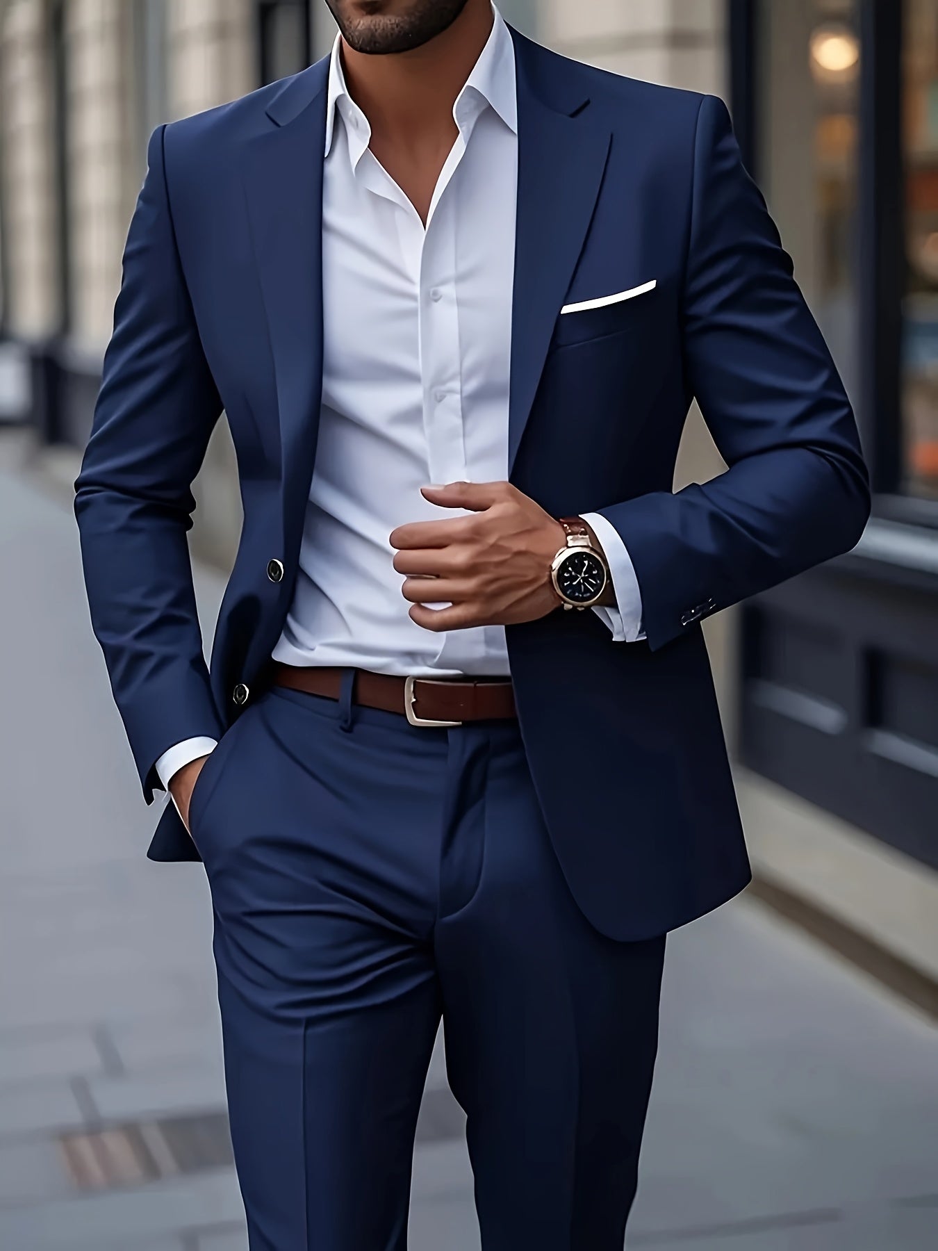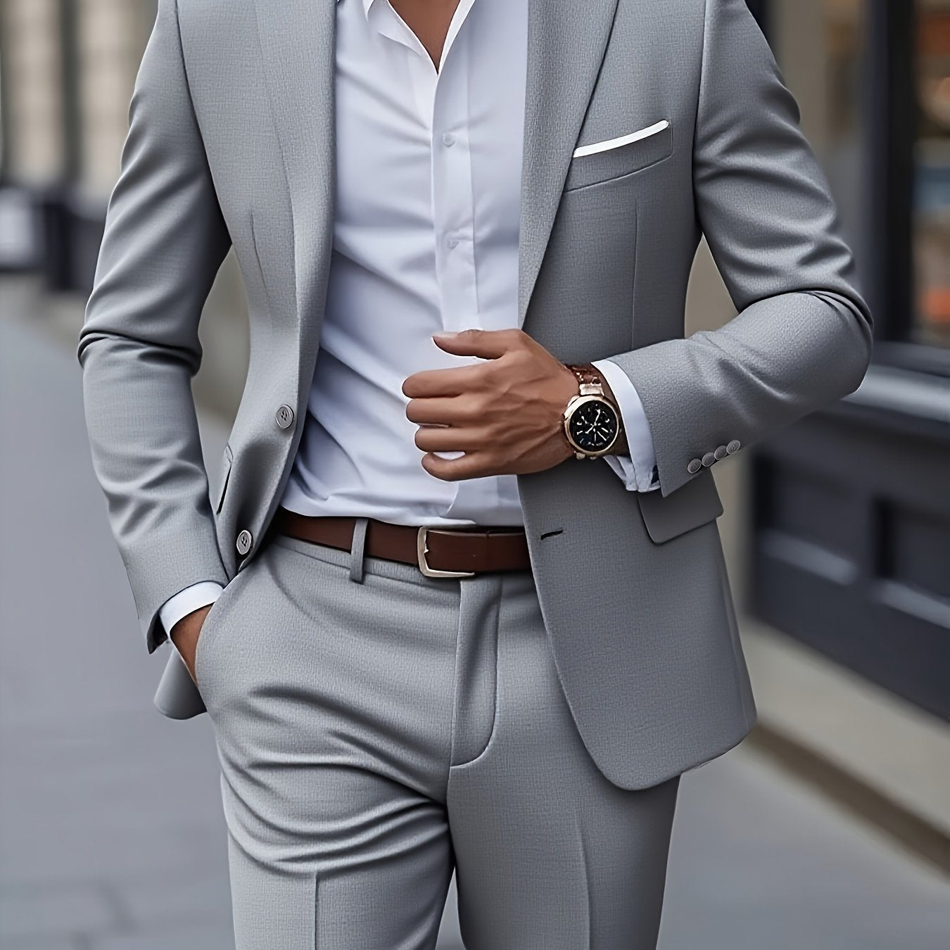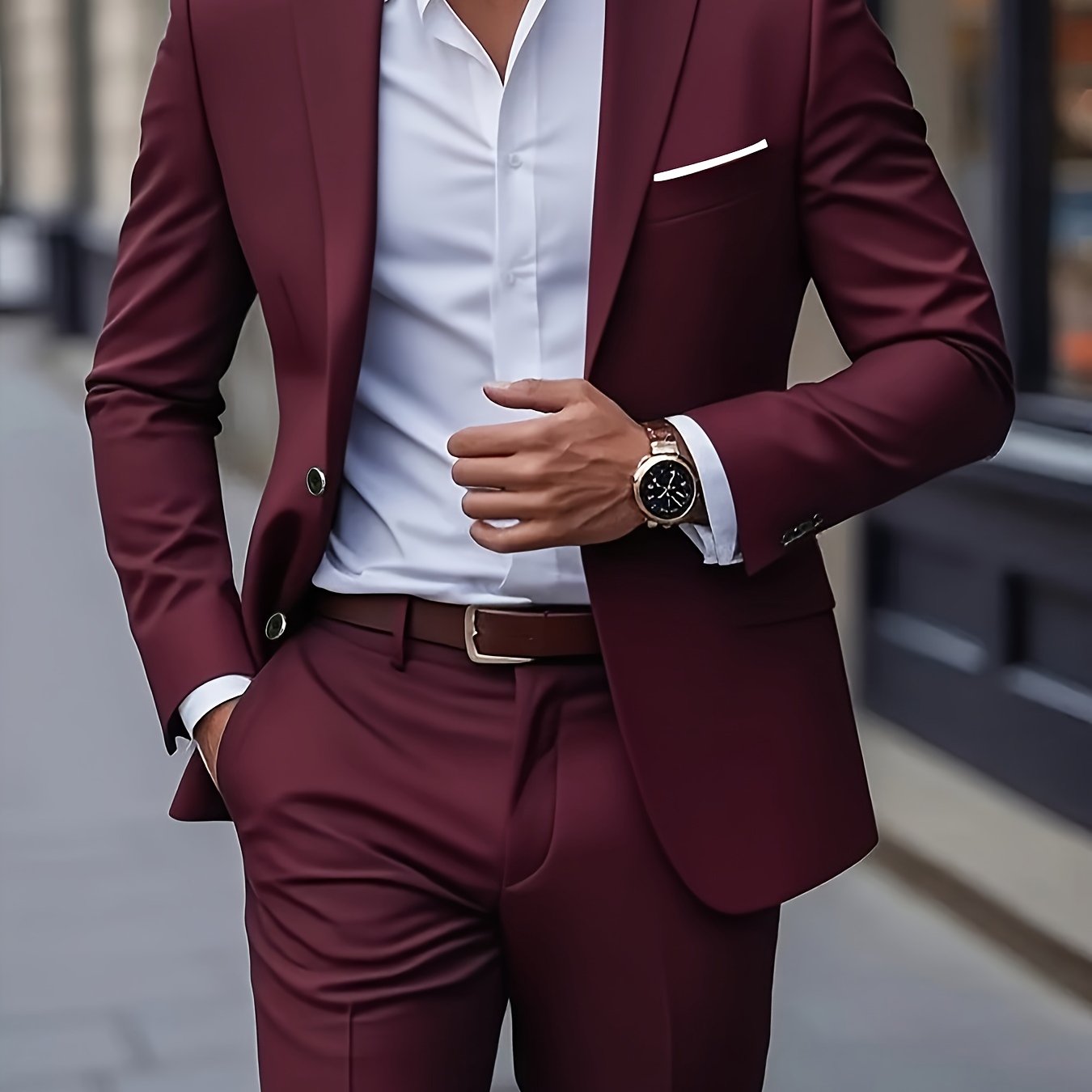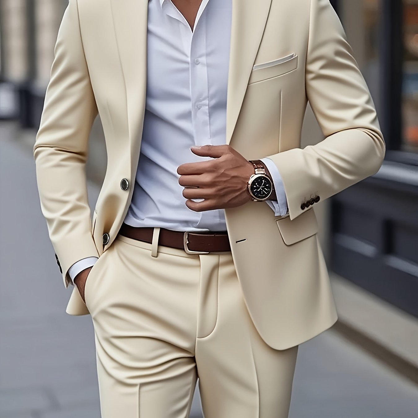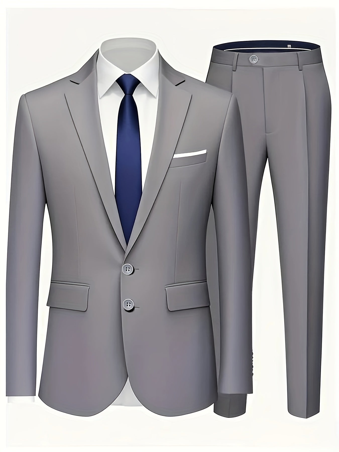 Stylish Men's 2pcs Suit Set - Blazer & Trousers for Events