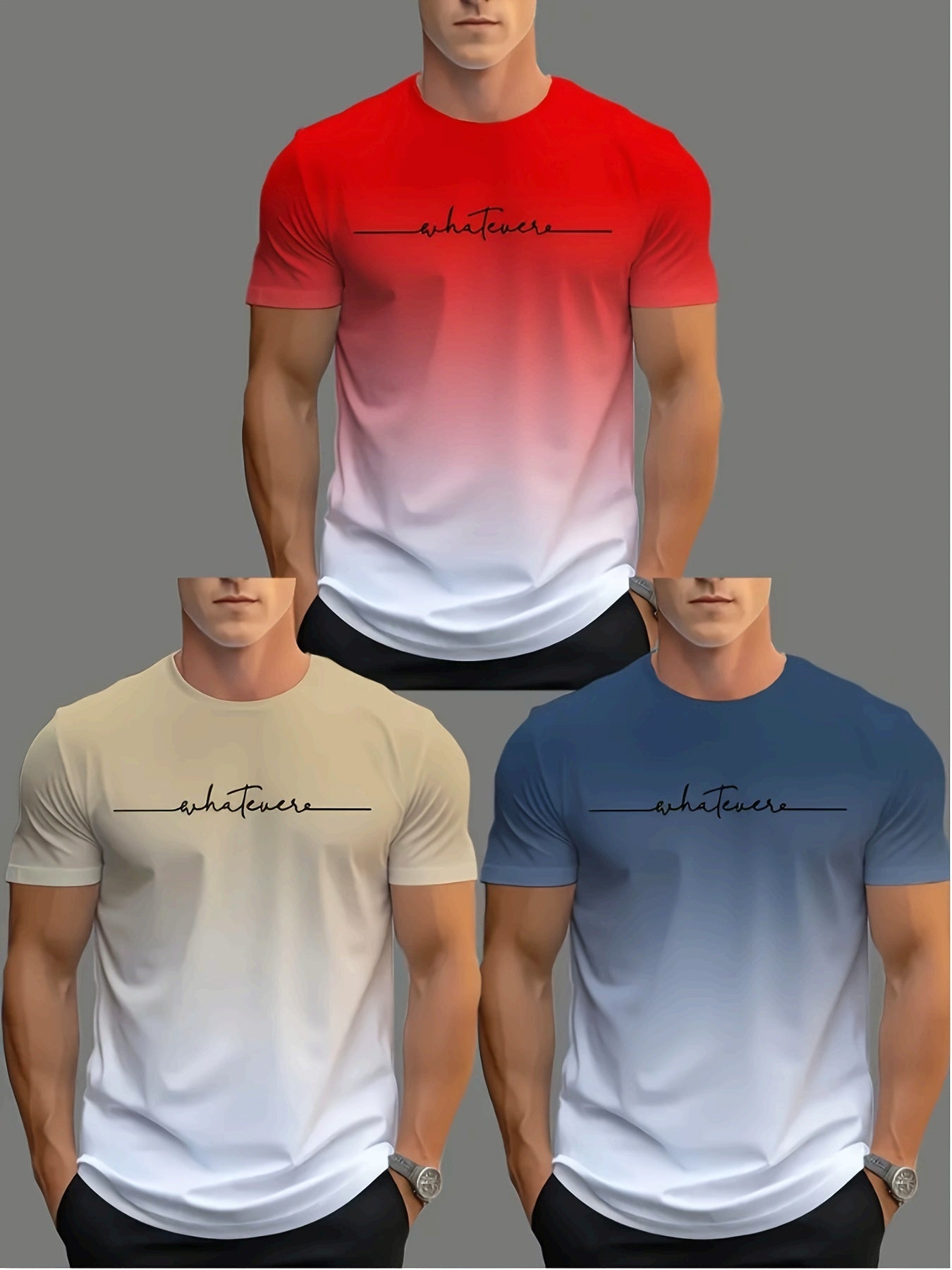 Men's 3pcs Novelty T-shirt Set - Casual Crew Neck Polyester