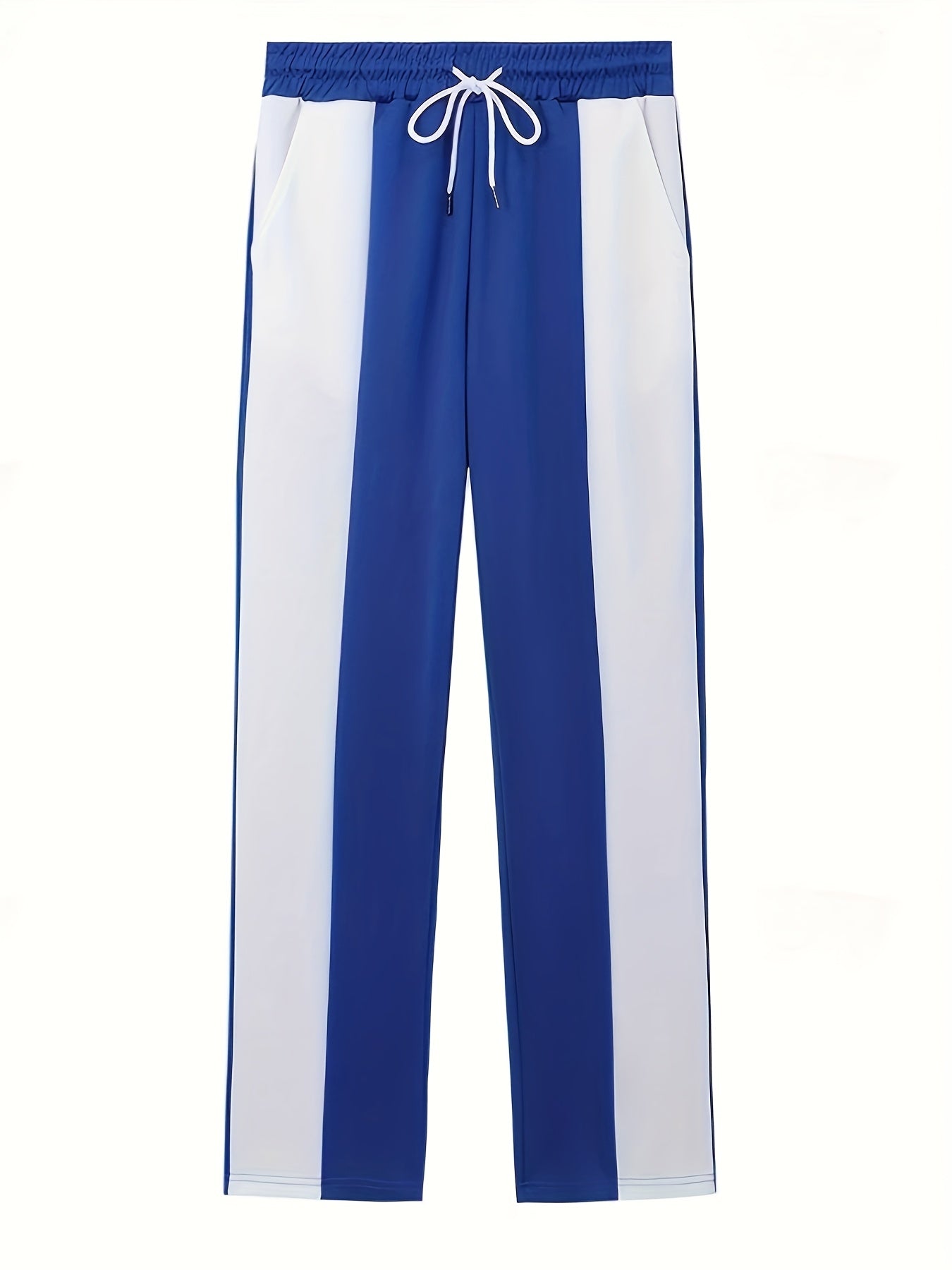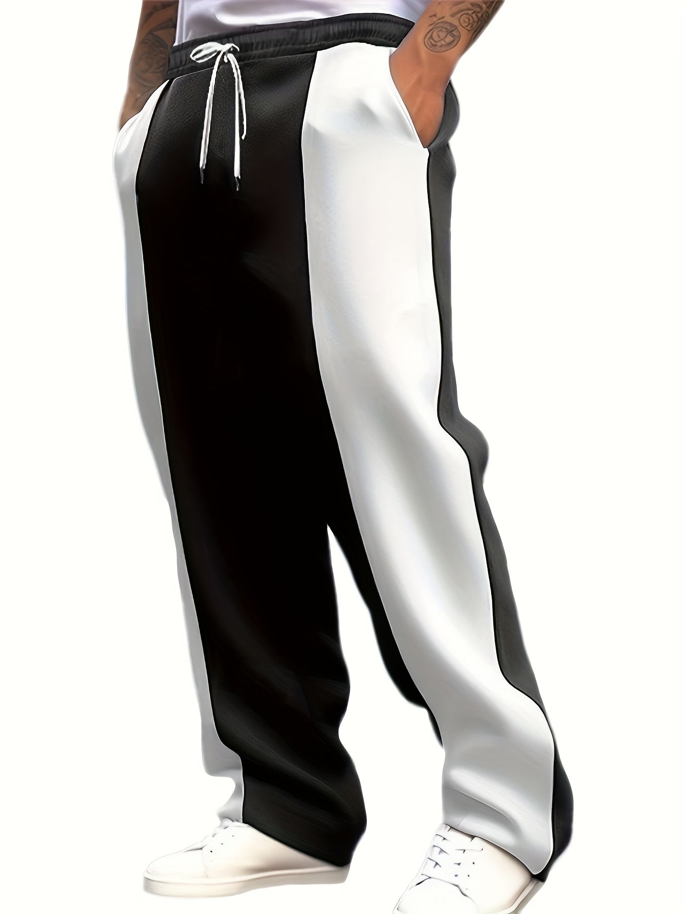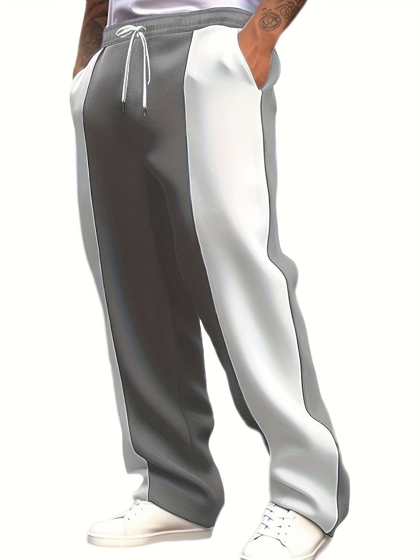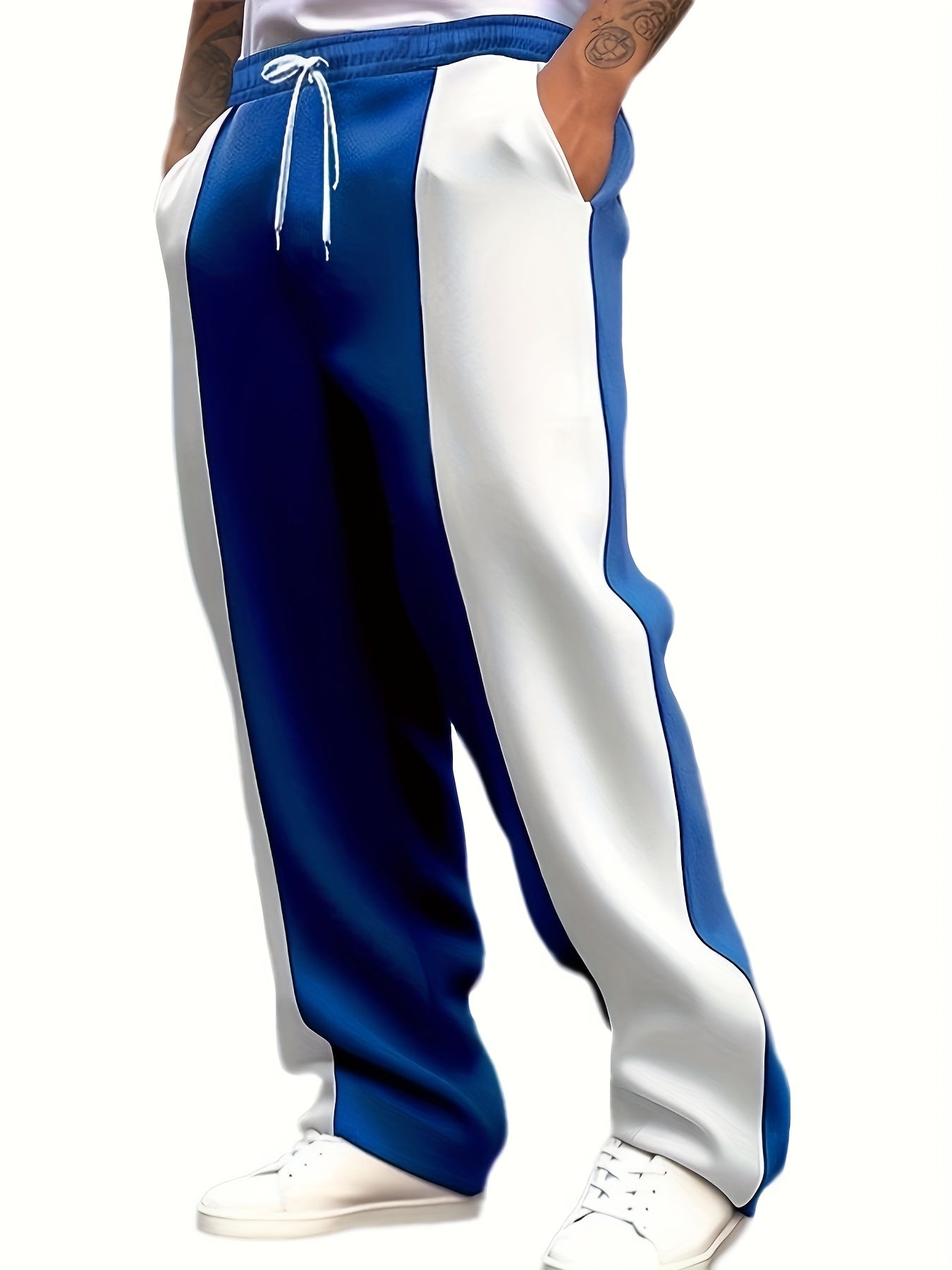 Men's Casual Color Block Pants - Comfortable Drawstring Waist Trousers