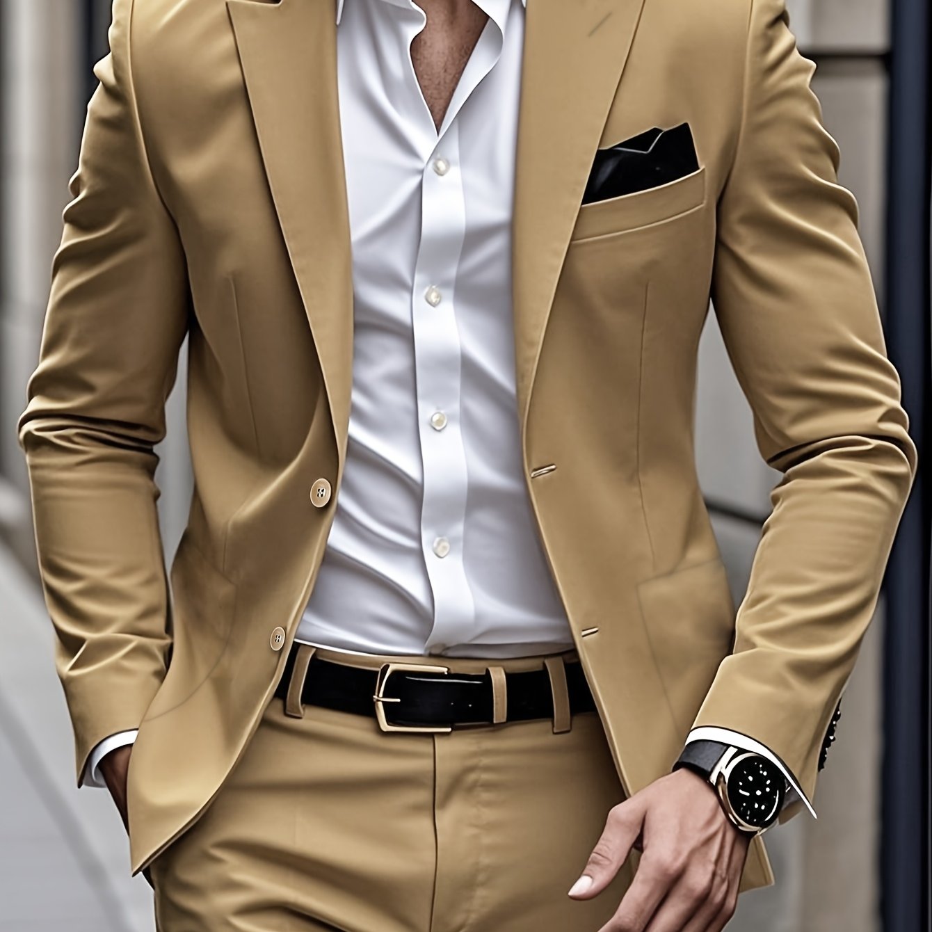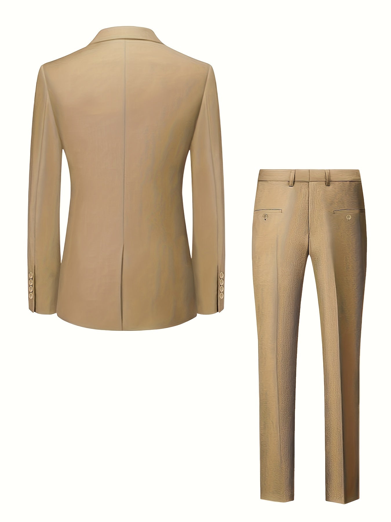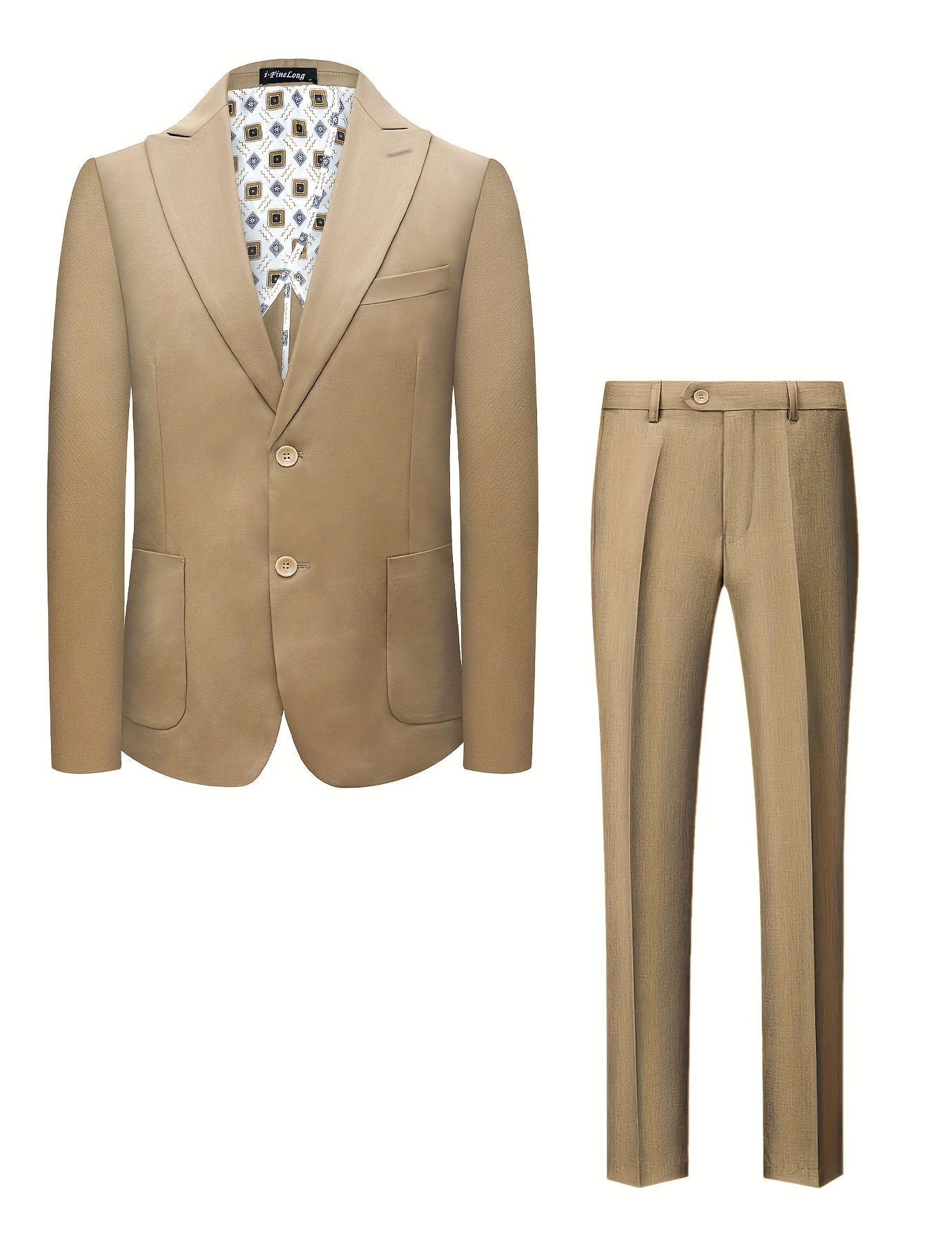 Men's High-Quality Beige Two-Piece Suit Set - All-Season Formal Attire