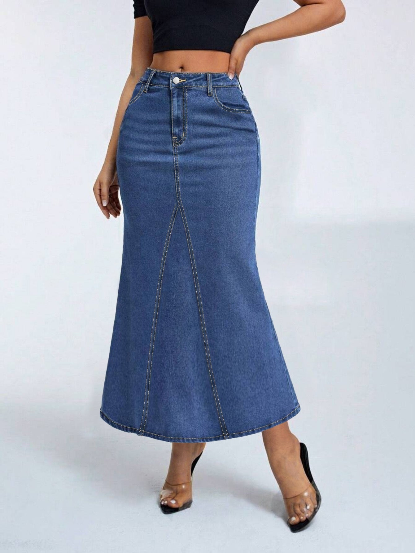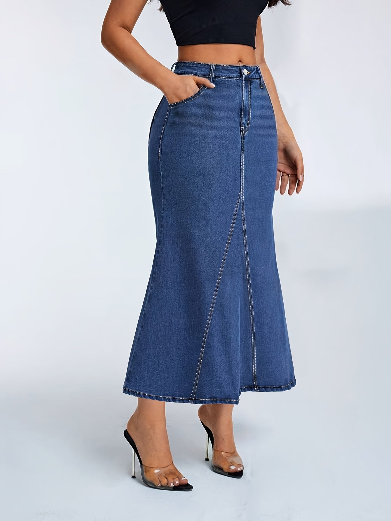 High Elasticity Loose Mermaid Dress - Slim Fit Denim for Spring/Fall