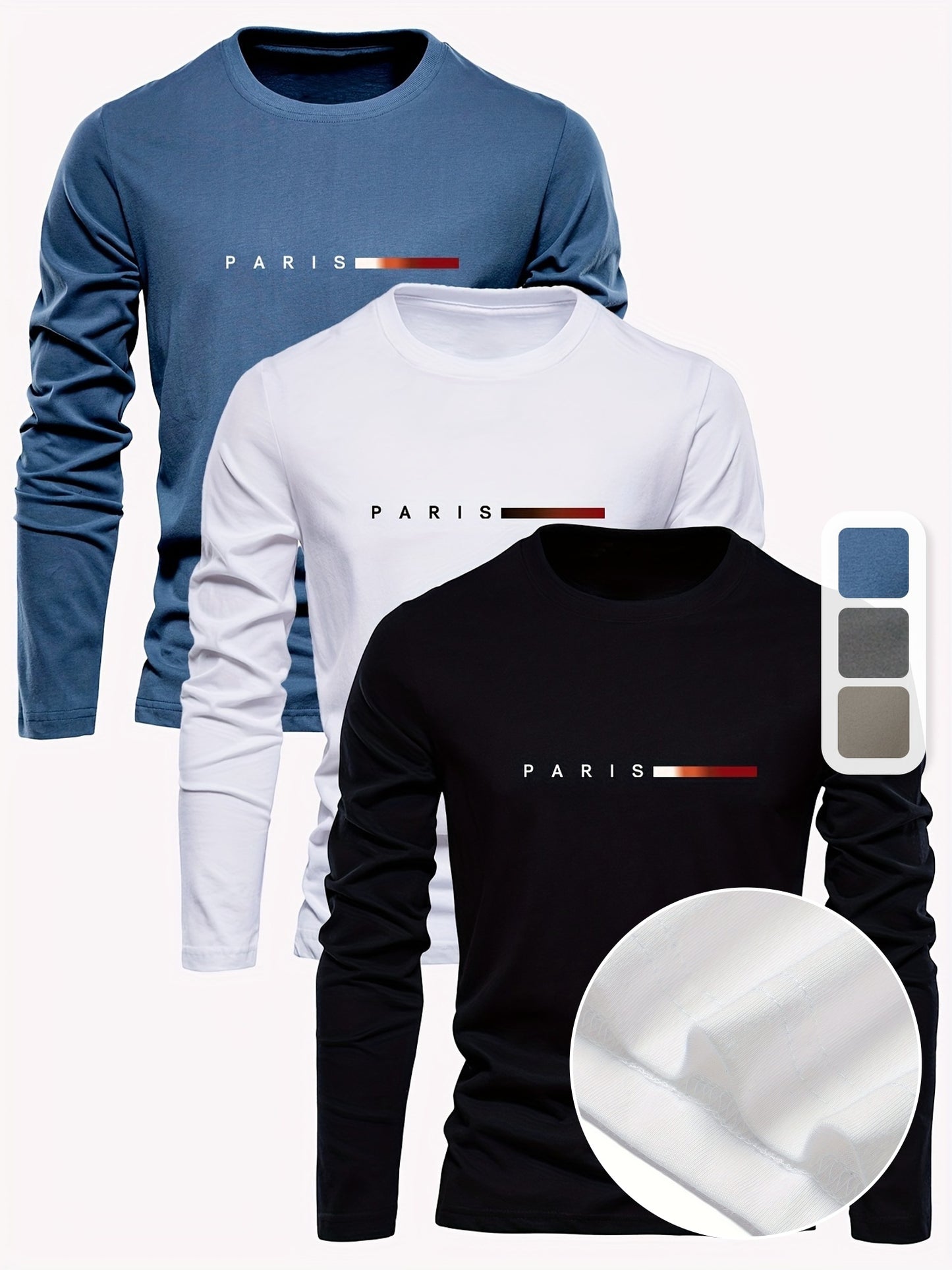 Discover the perfect blend of style and comfort with our 3pcs Men's Long Sleeve T-Shirts. These tops feature a chic alphabet applique design and a regular fit, making them suitable for any casual occasion. Whether you're heading out for a weekend brunch or enjoying a day at home, these t-shirts offer both functionality and fashion. Hand wash as needed to maintain their quality and softness, ensuring you look stylish season after season.