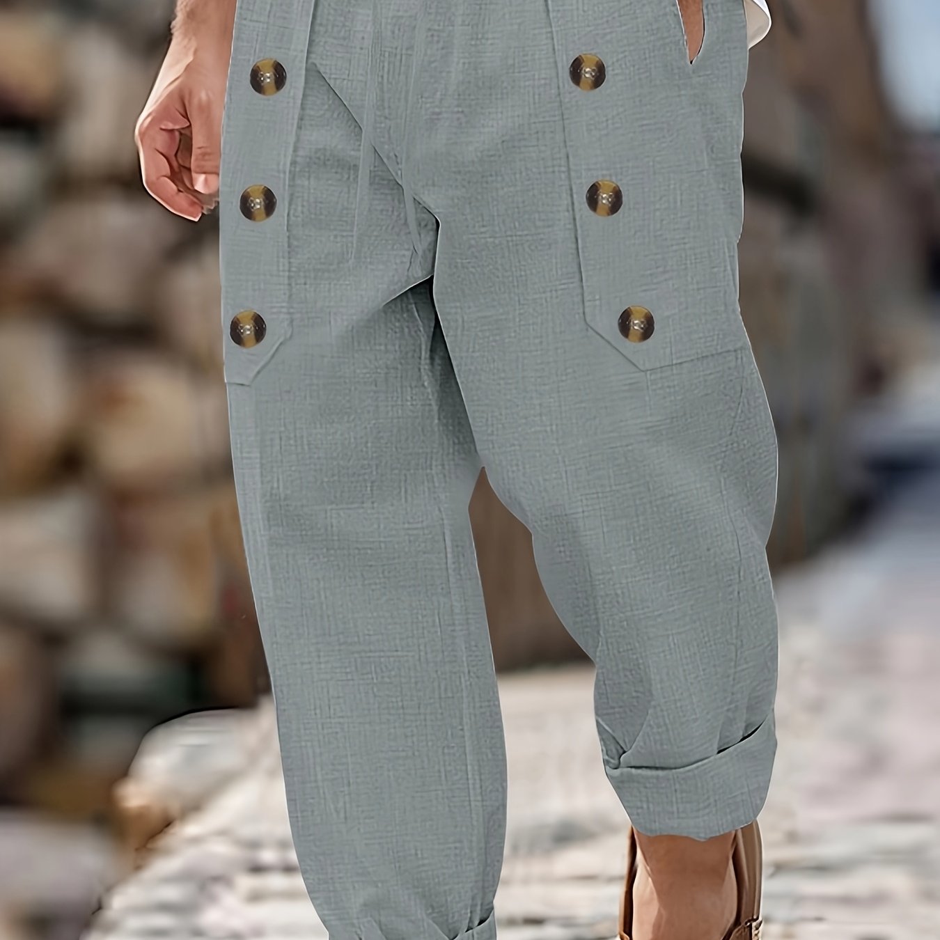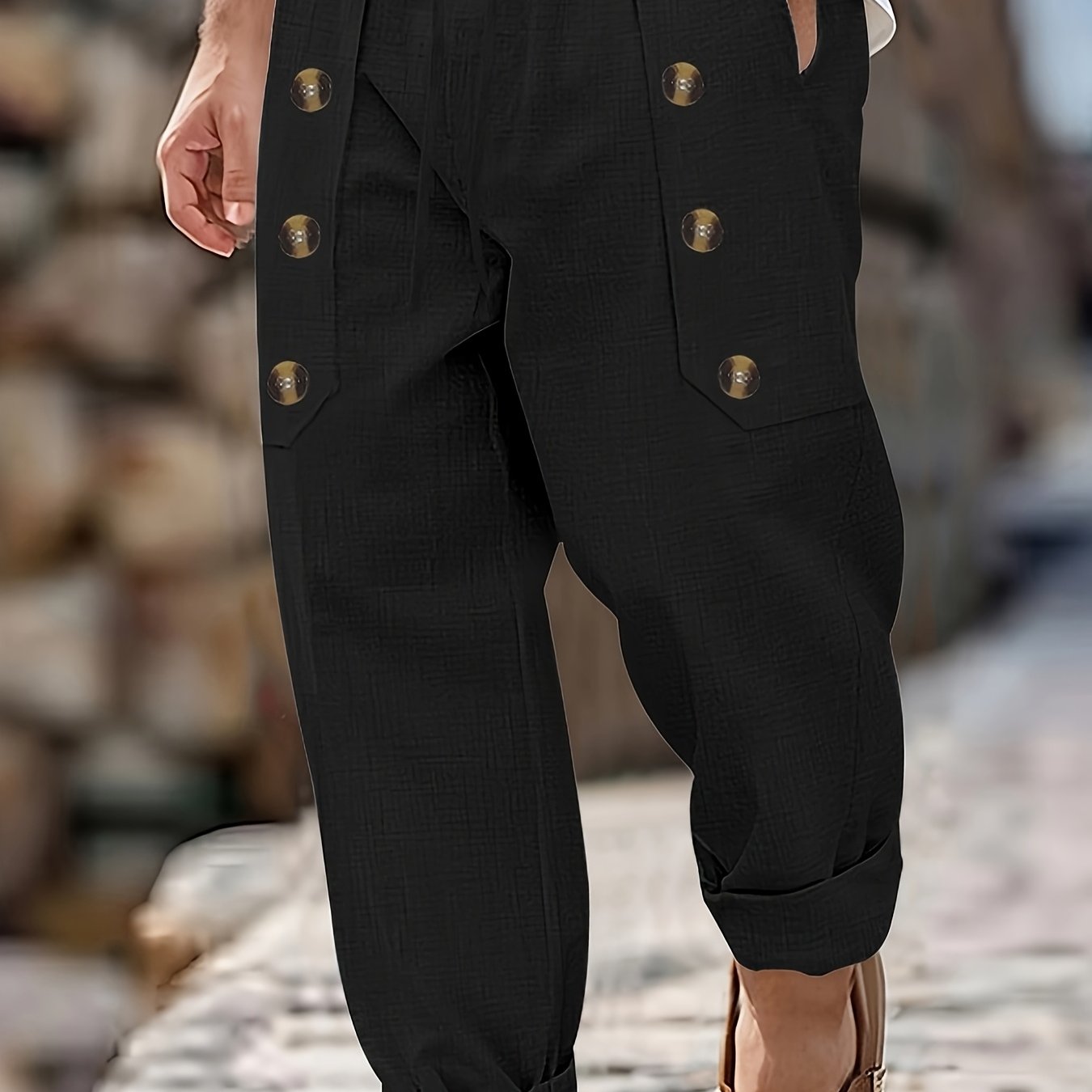 Elevate your casual wardrobe with our Men's Casual Loose-Fit Joggers, crafted from breathable soft fabric that ensures comfort during every activity. Featuring a button and drawstring waist, straight-leg design, and convenient pockets, these joggers are perfect for the gym, vacation, or daily wear.