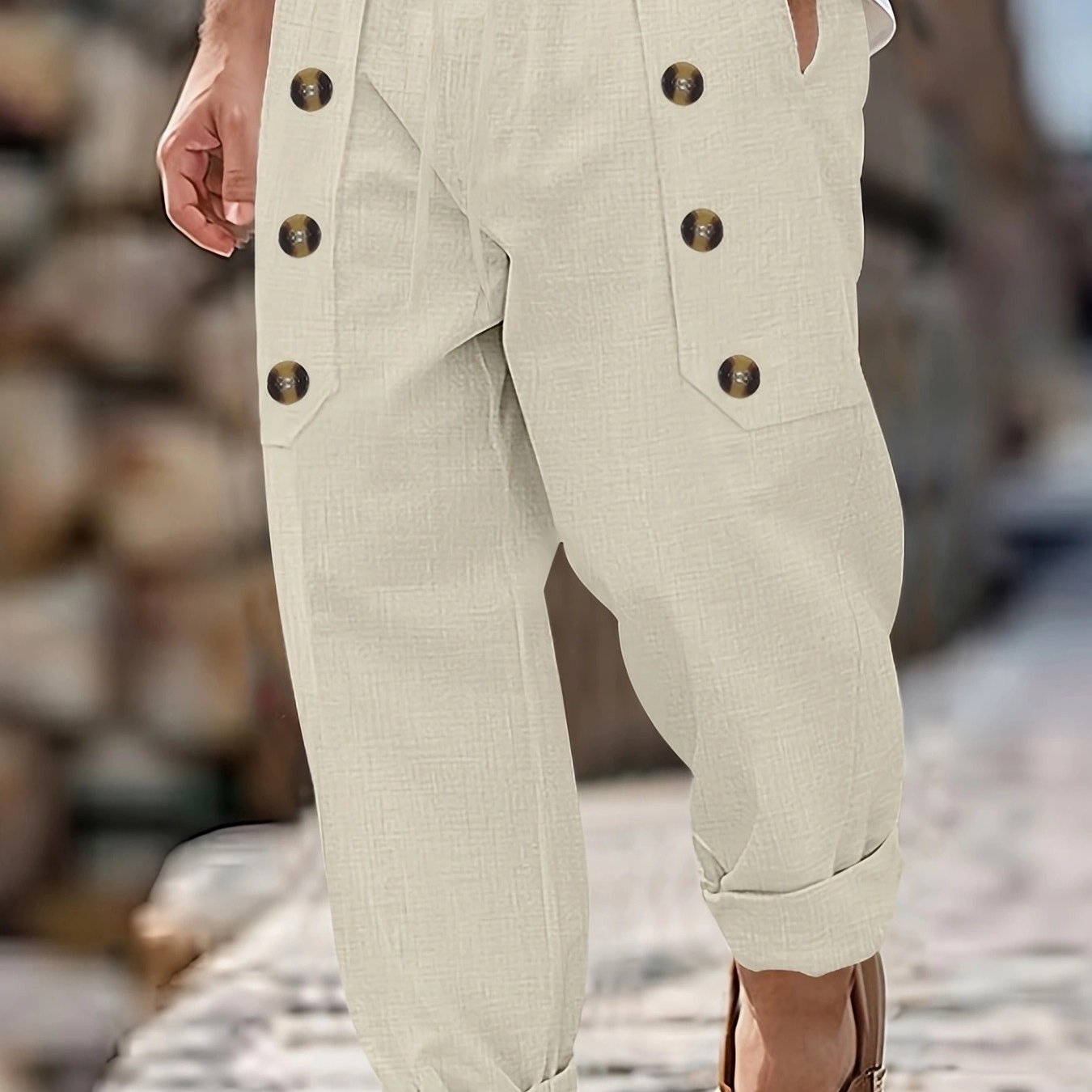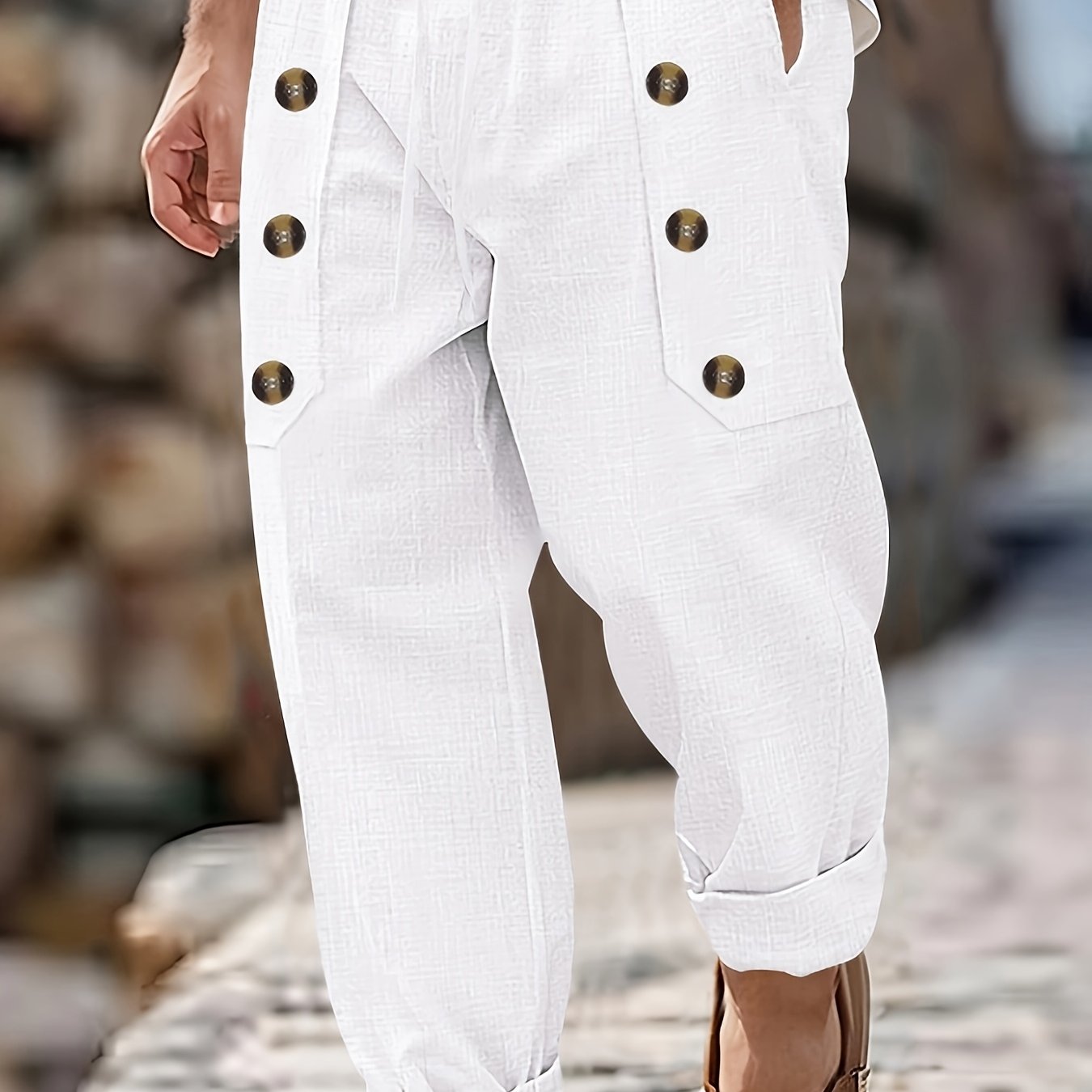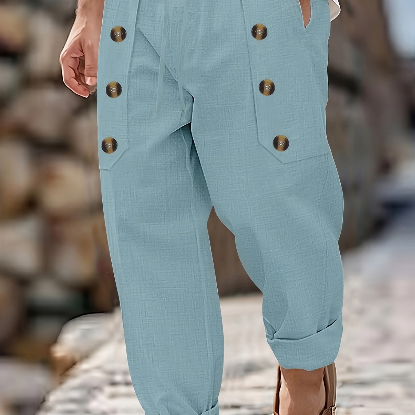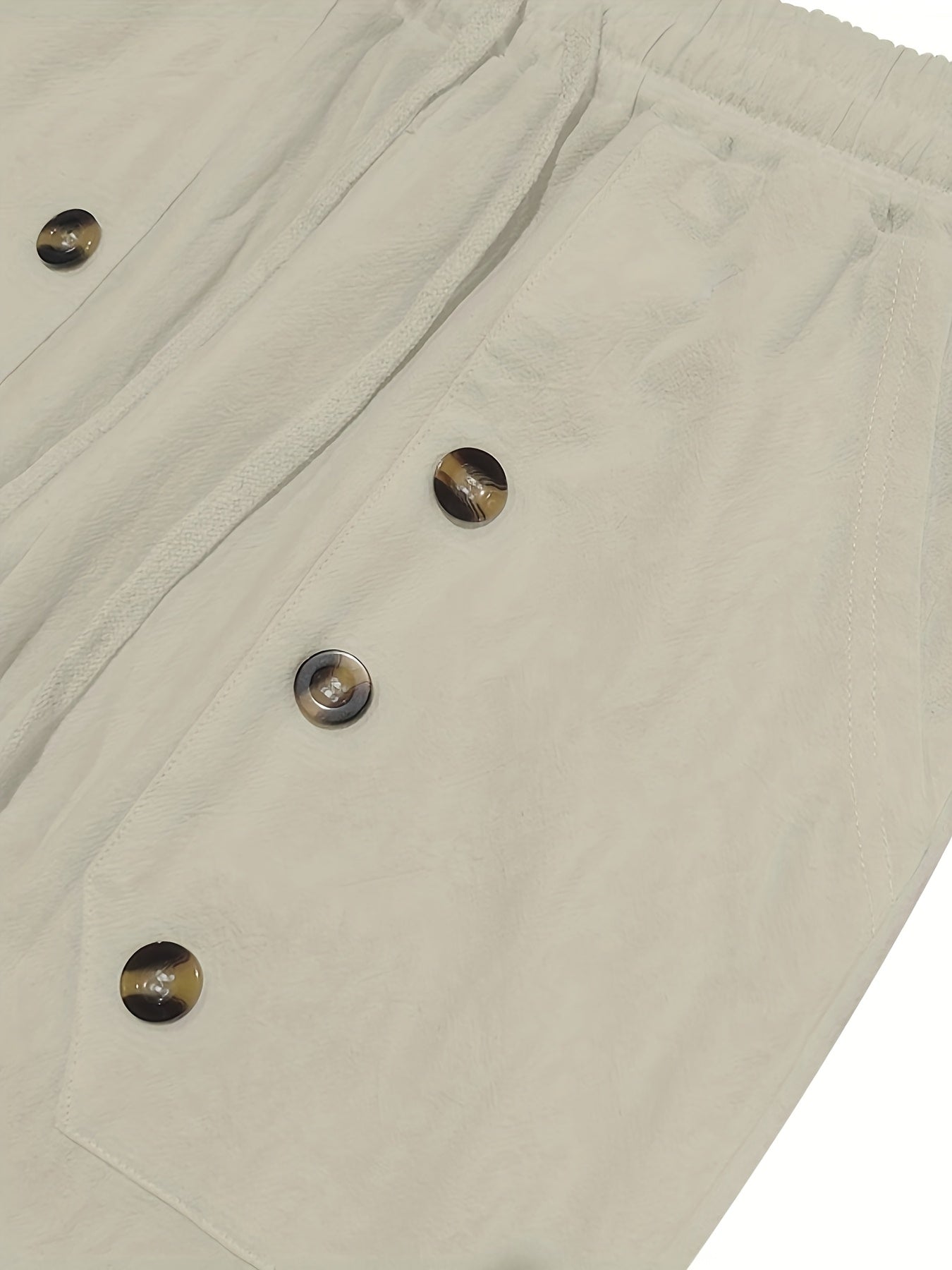 - Adjustable button and drawstring waist for a customized fit