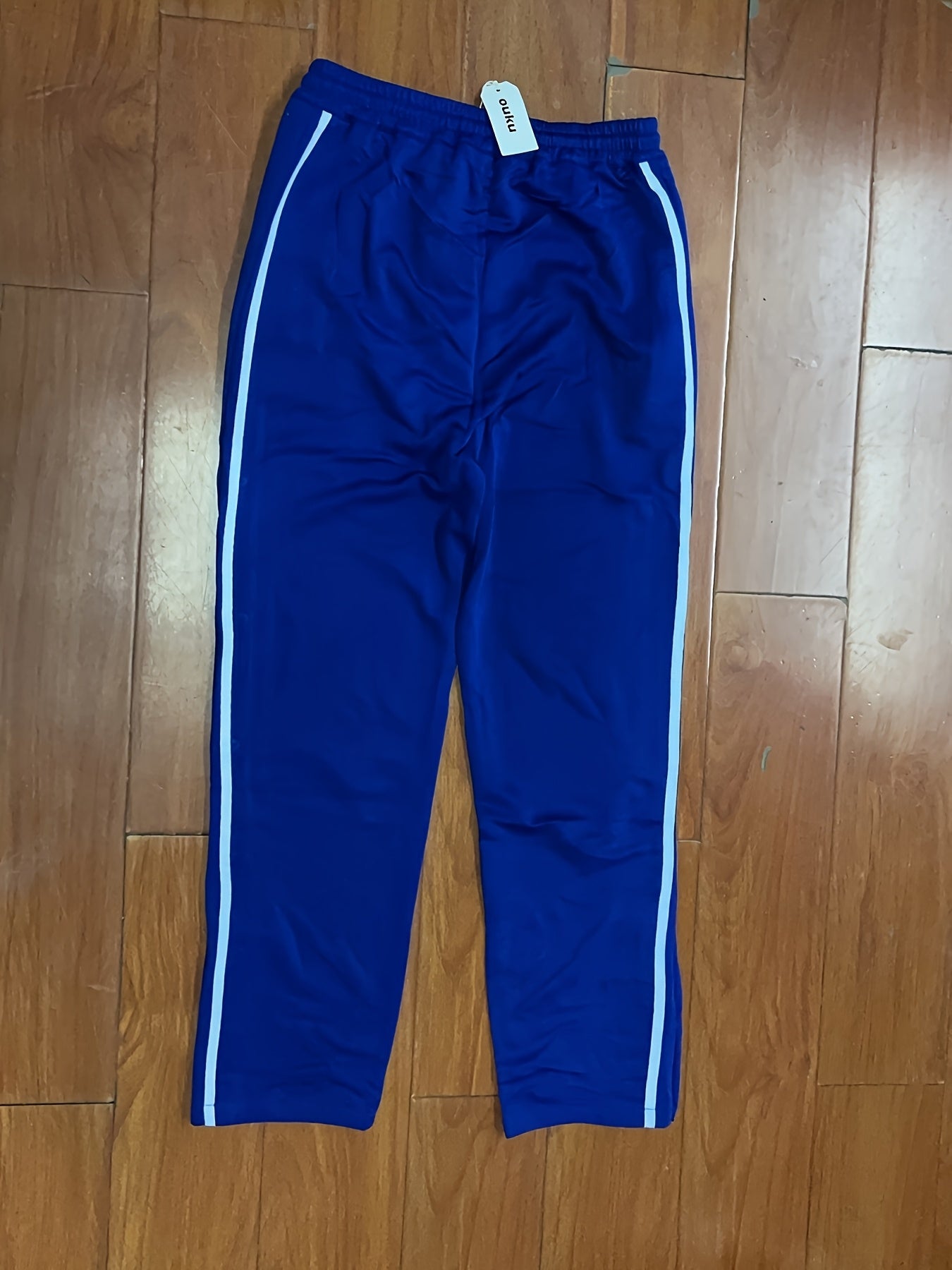 Pantalones deportivos rectos para hombre - Cómodos, con cintura elástica y cordón ajustable, azules.