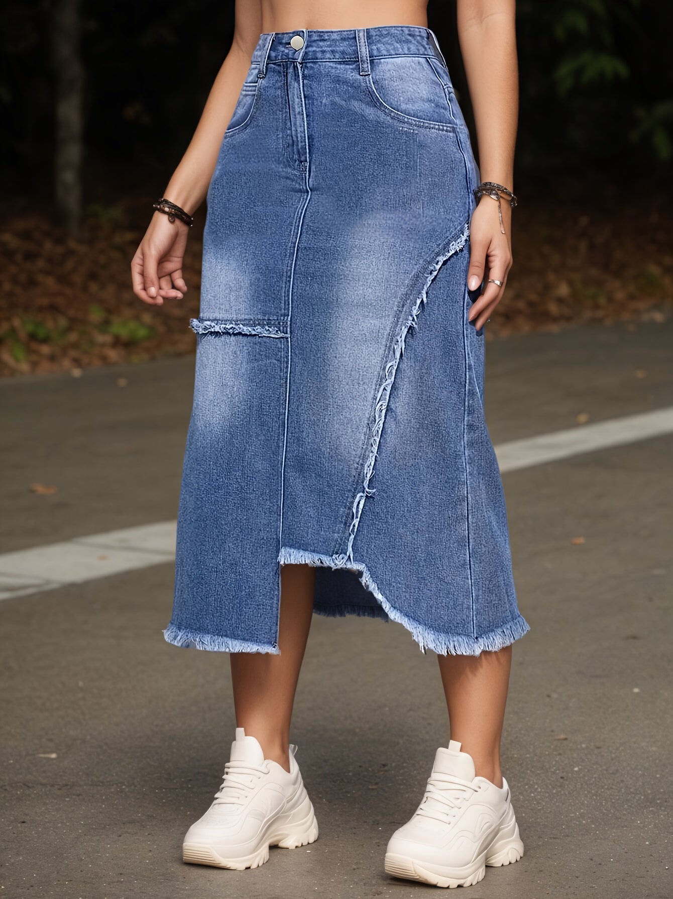 Elevate your wardrobe with our Women's Casual A-Line Midi Skirt, crafted from high-quality stretchy denim for unparalleled comfort and style. With a chic asymmetrical hem and a versatile solid color, this skirt is perfect for any occasion, making it a must-have in your spring, summer, or fall collection.