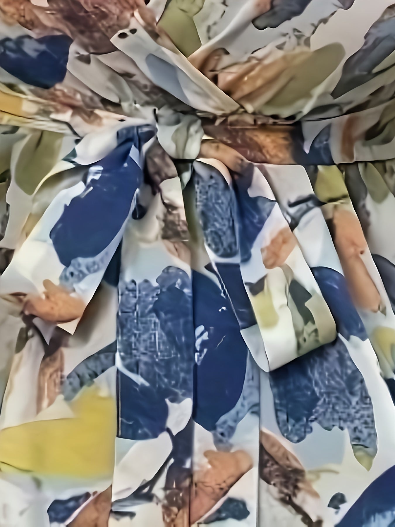 Introducing the Elegant Direction European Raffinéa Plant Print Deep V-Neck Butterfly Sleeve Belted Shirt, a chic and trendy addition to your spring and summer wardrobe. Made from high-quality 100% polyester, this shirt features a stunning plant print and a flattering deep V-neck design for a stylish look.