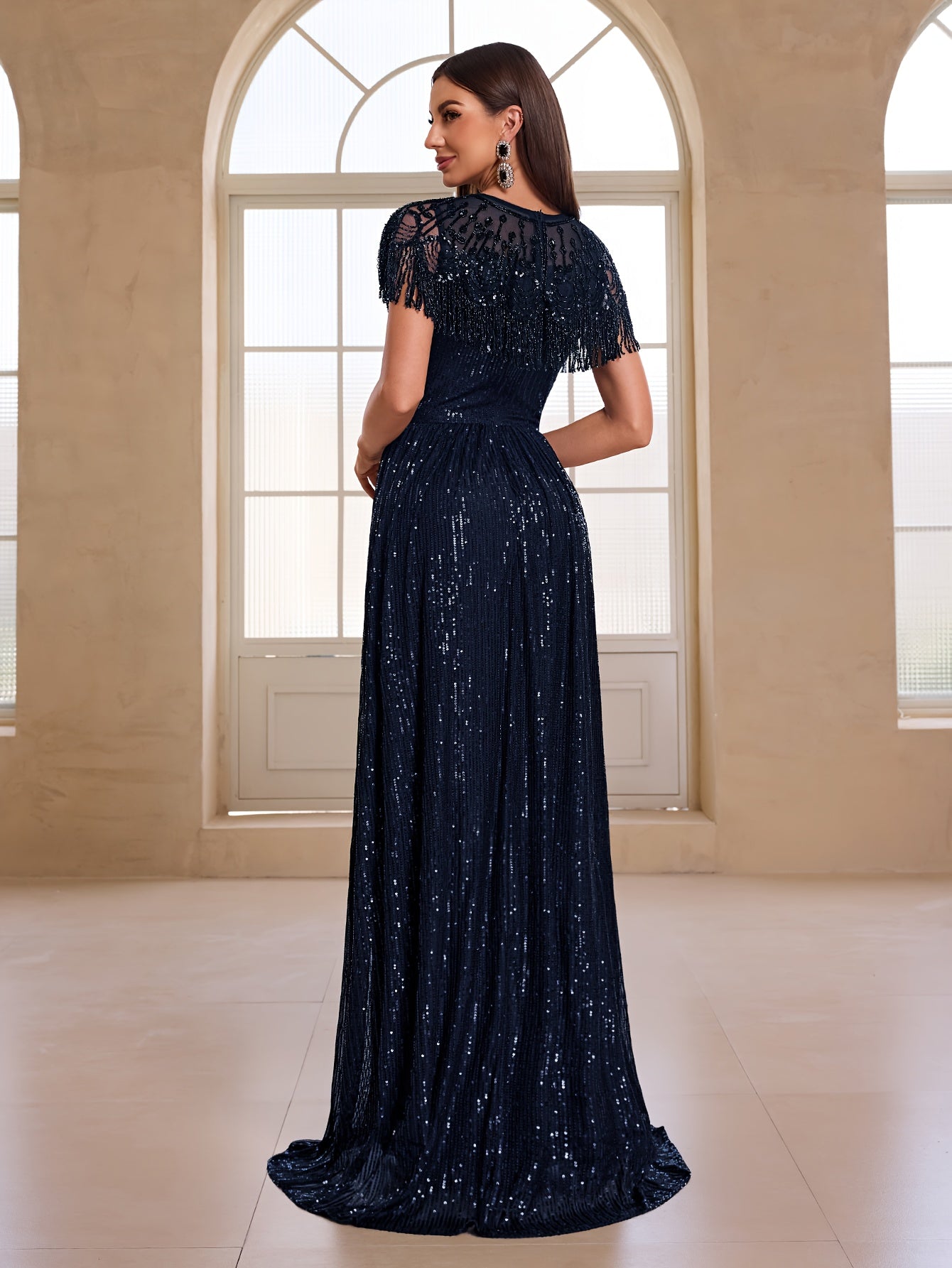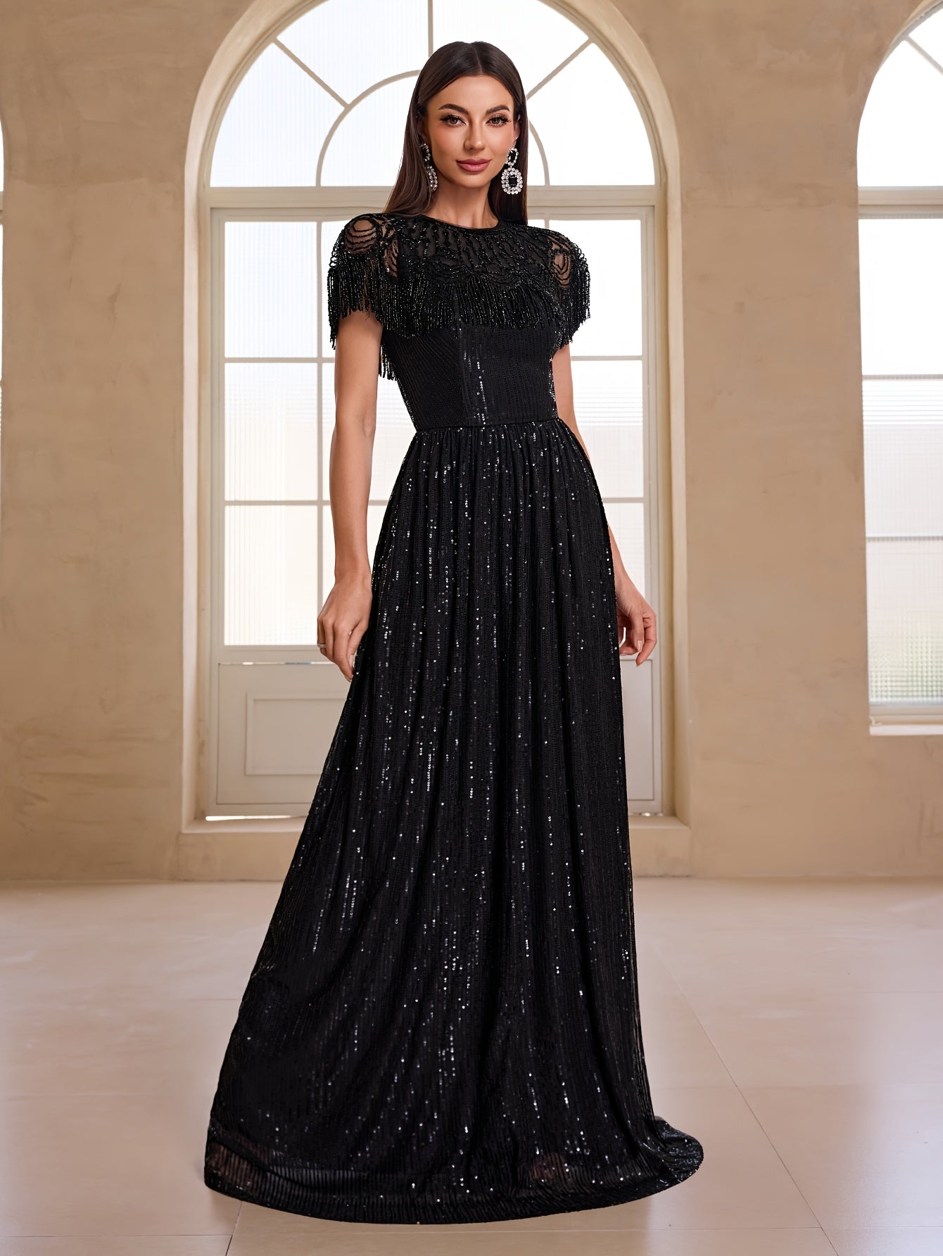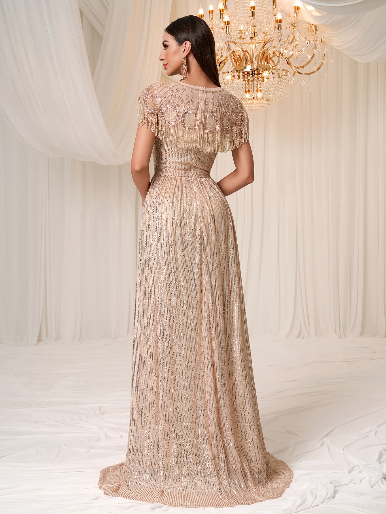 Introducing the Elegant Luxury Evening Gown with Shawl, a stunning party dress designed to make you stand out. Crafted from 95% polyester and featuring exquisite sequins, this gown is the epitome of elegance and sophistication for any special occasion.