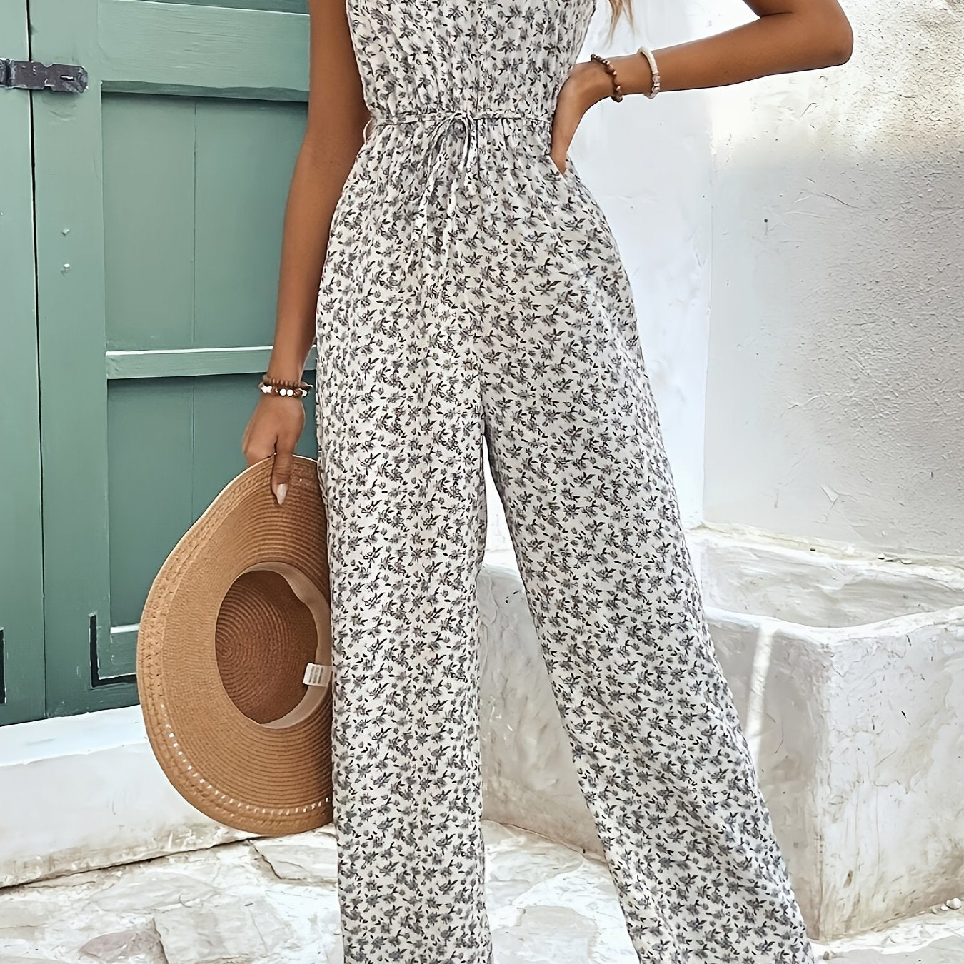 Women's Floral Print Wide-Leg Jumpsuit - Summer Vacation Essential