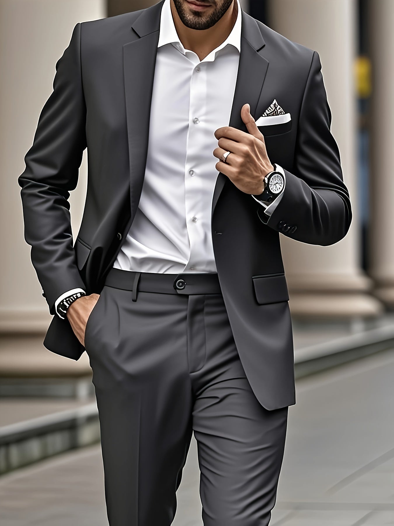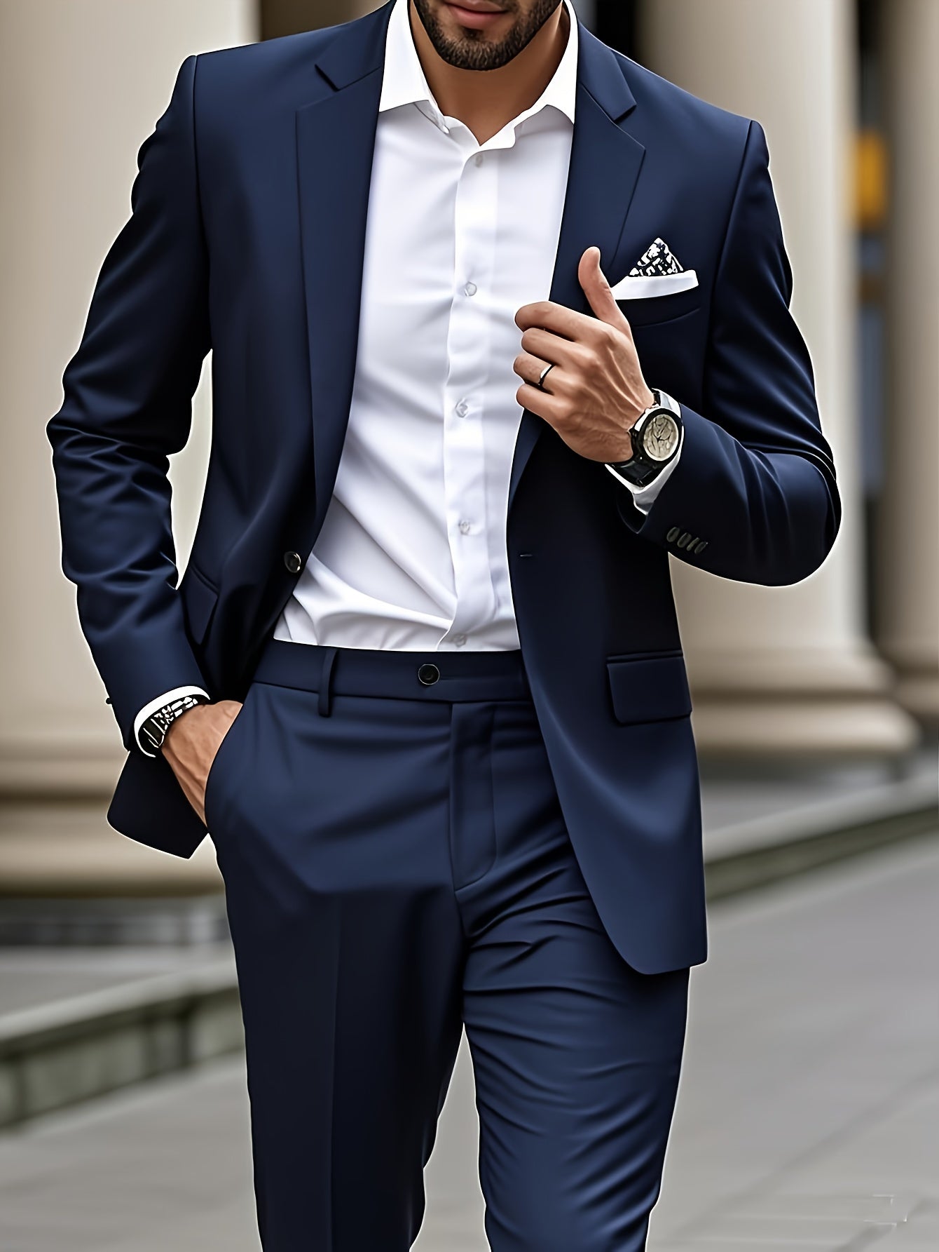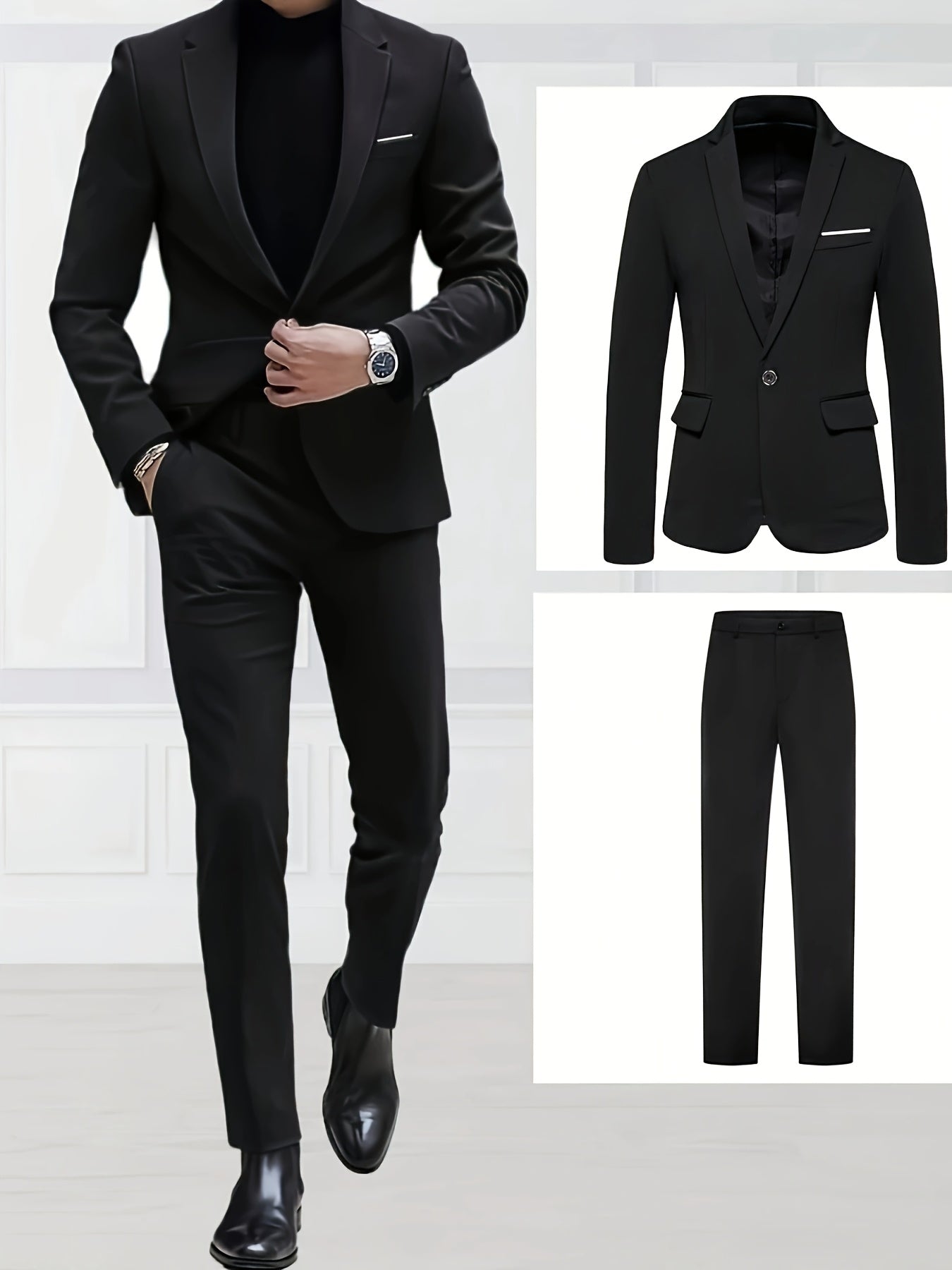 Make a statement at your next event with this modern Men's Suit Set. Its solid color and elegant design make it perfect for weddings and formal gatherings, ensuring you stand out with sophistication. The suit's versatility also makes it ideal for business meetings and other special occasions, allowing you to transition effortlessly from work to leisure.