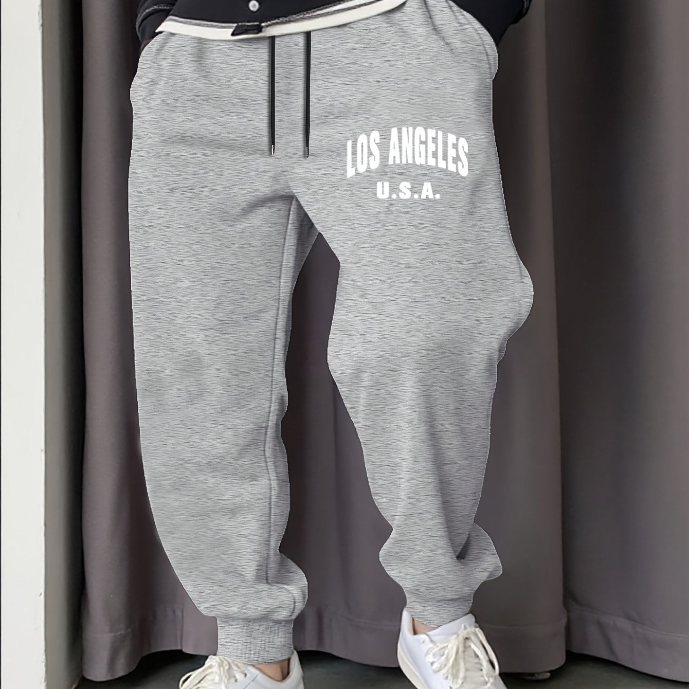Pantalones deportivos grises con diseño gráfico para hombre - Cómoda mezcla de poliéster para otoño