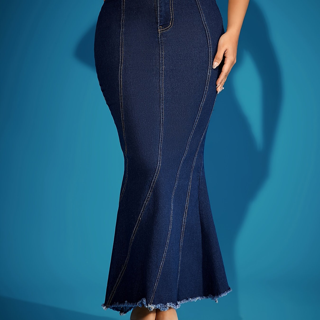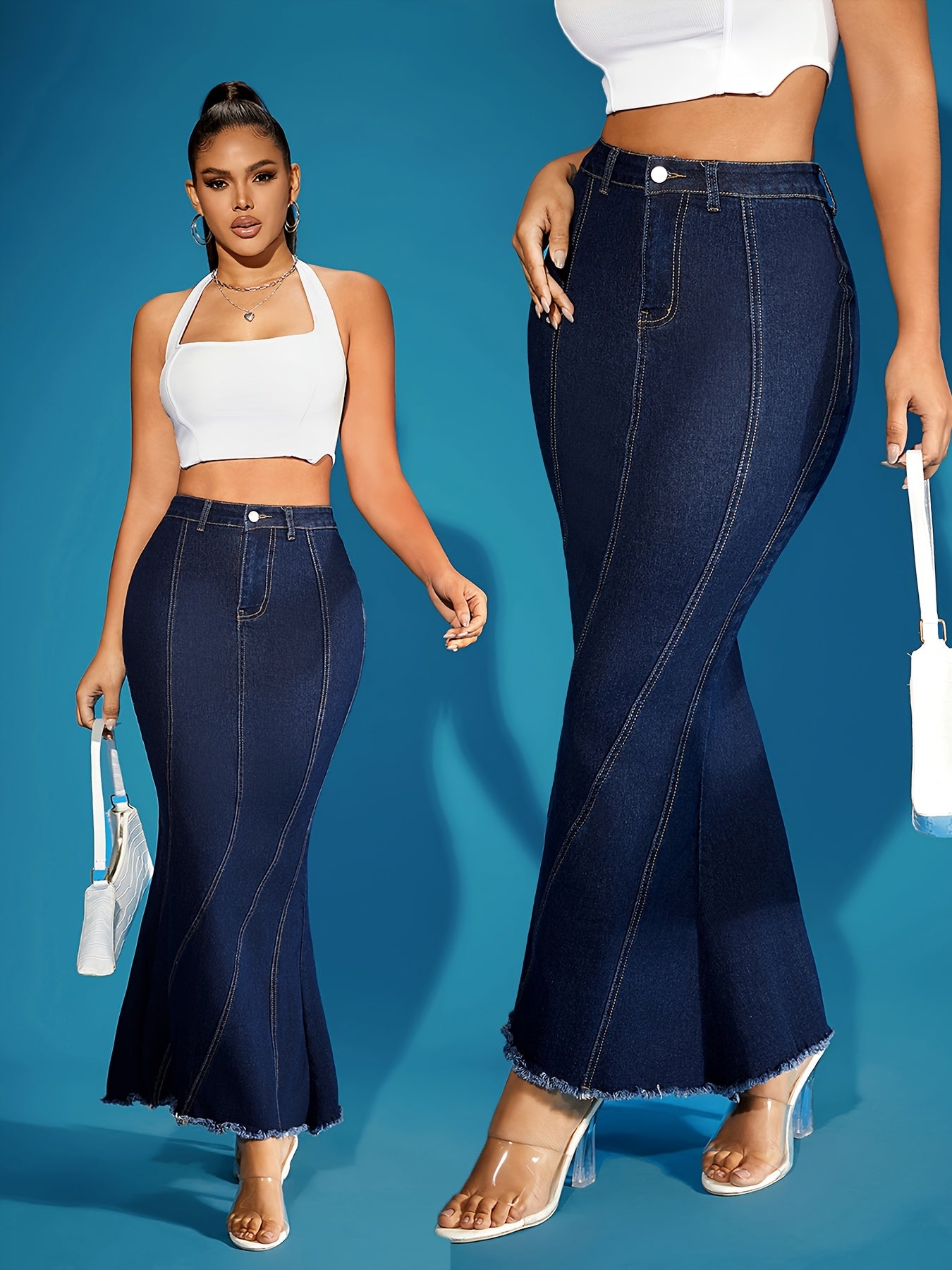 Introducing the High-Waisted Blue Maxi Denim Skirt in a stylish Split Back Fishtail Style. This versatile skirt combines comfort and elegance, making it the perfect addition to your spring, summer, and fall wardrobe. Crafted from 65% cotton with a slight stretch, this denim piece ensures a flattering fit while maintaining a chic silhouette.