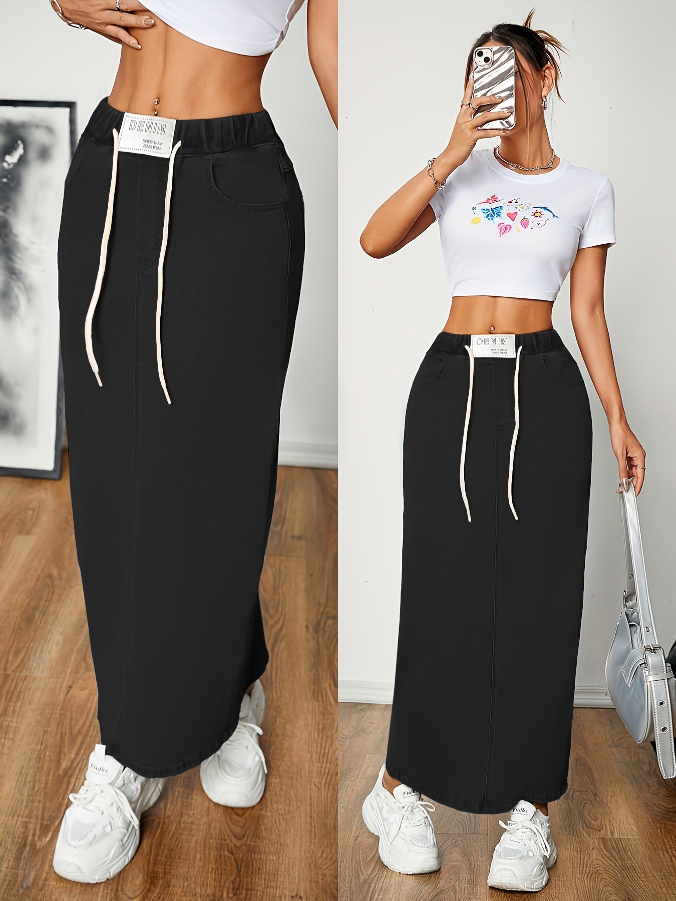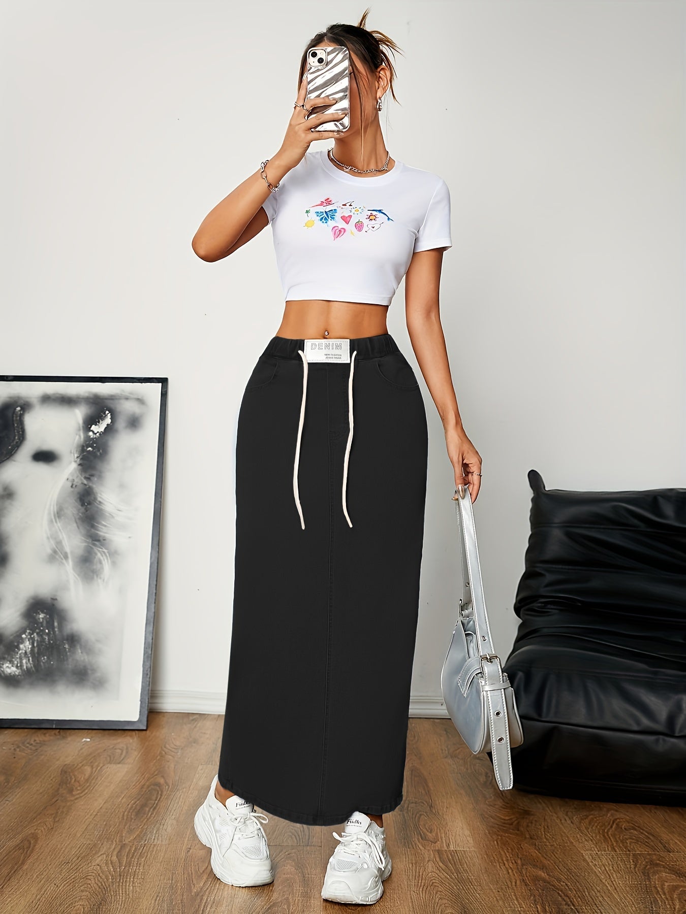 Women's Casual Stretch Skirt - Comfortable Drawstring Waistband