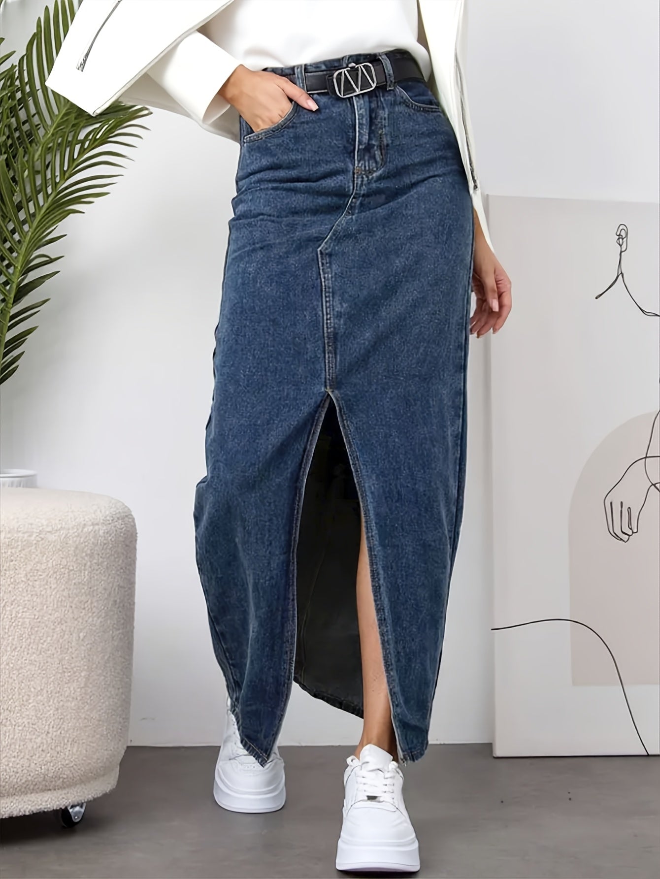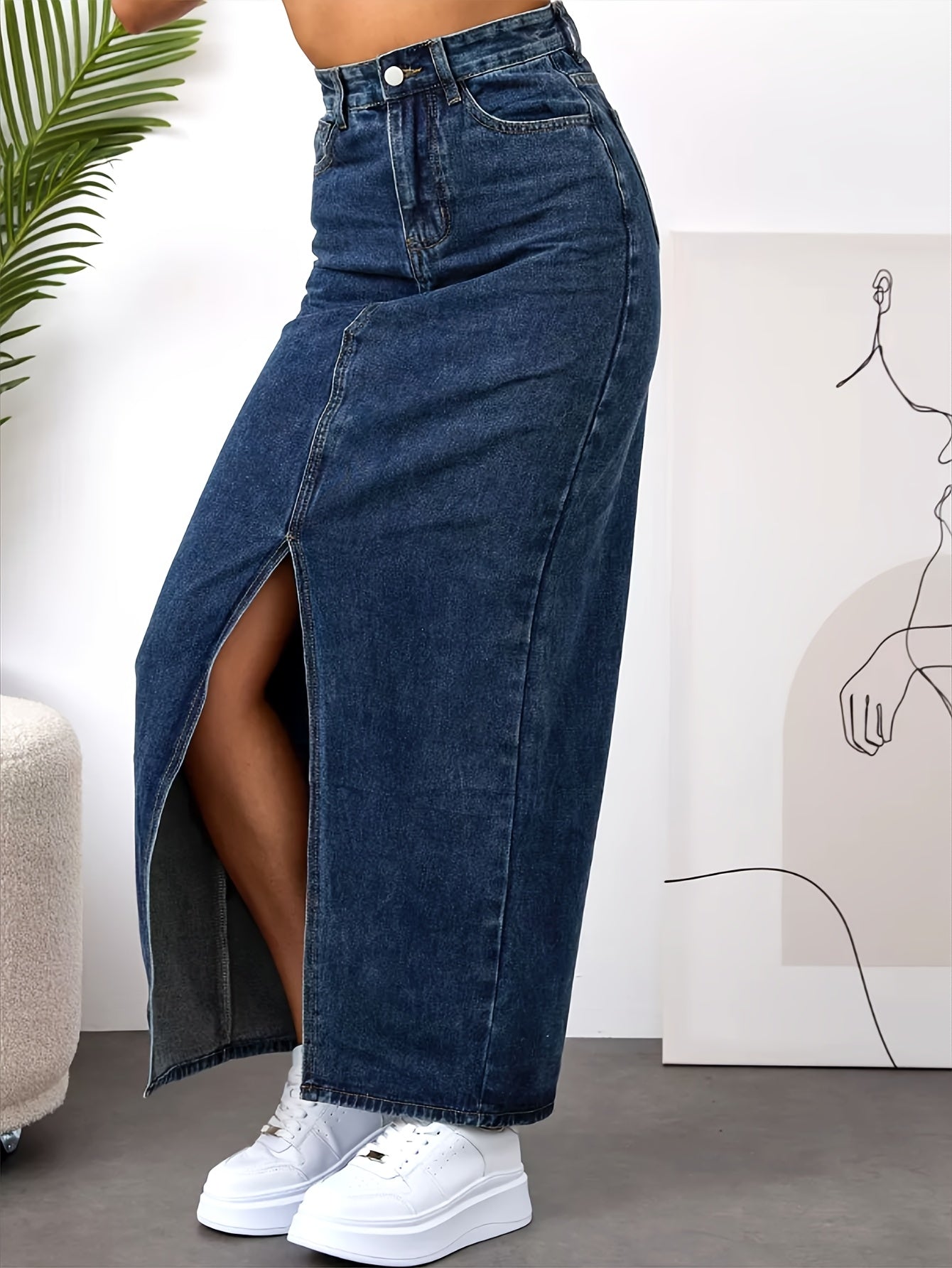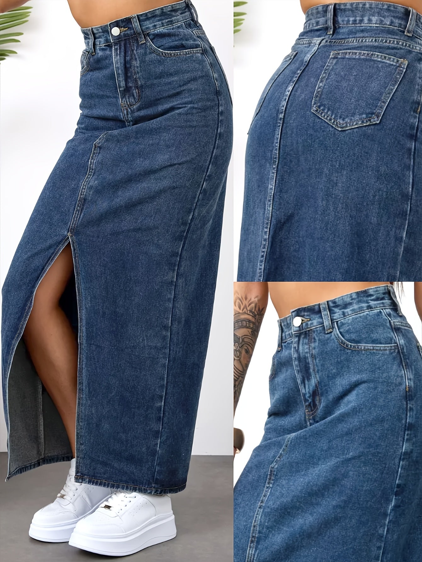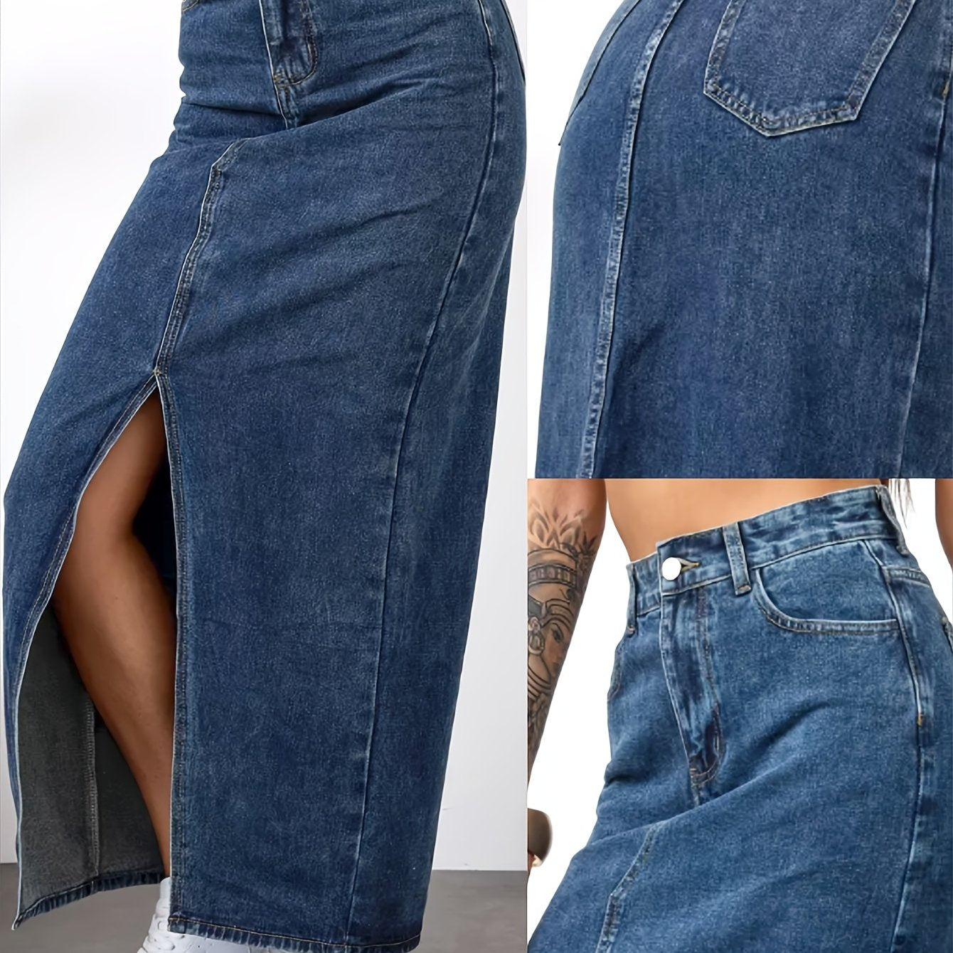 Elevate your wardrobe with our Women's Vintage Mid-Length Skirt, featuring a chic side slit design. This elegant piece is perfect for any occasion in the spring, summer, or fall, made from a comfortable non-stretch denim blend for a flattering silhouette.