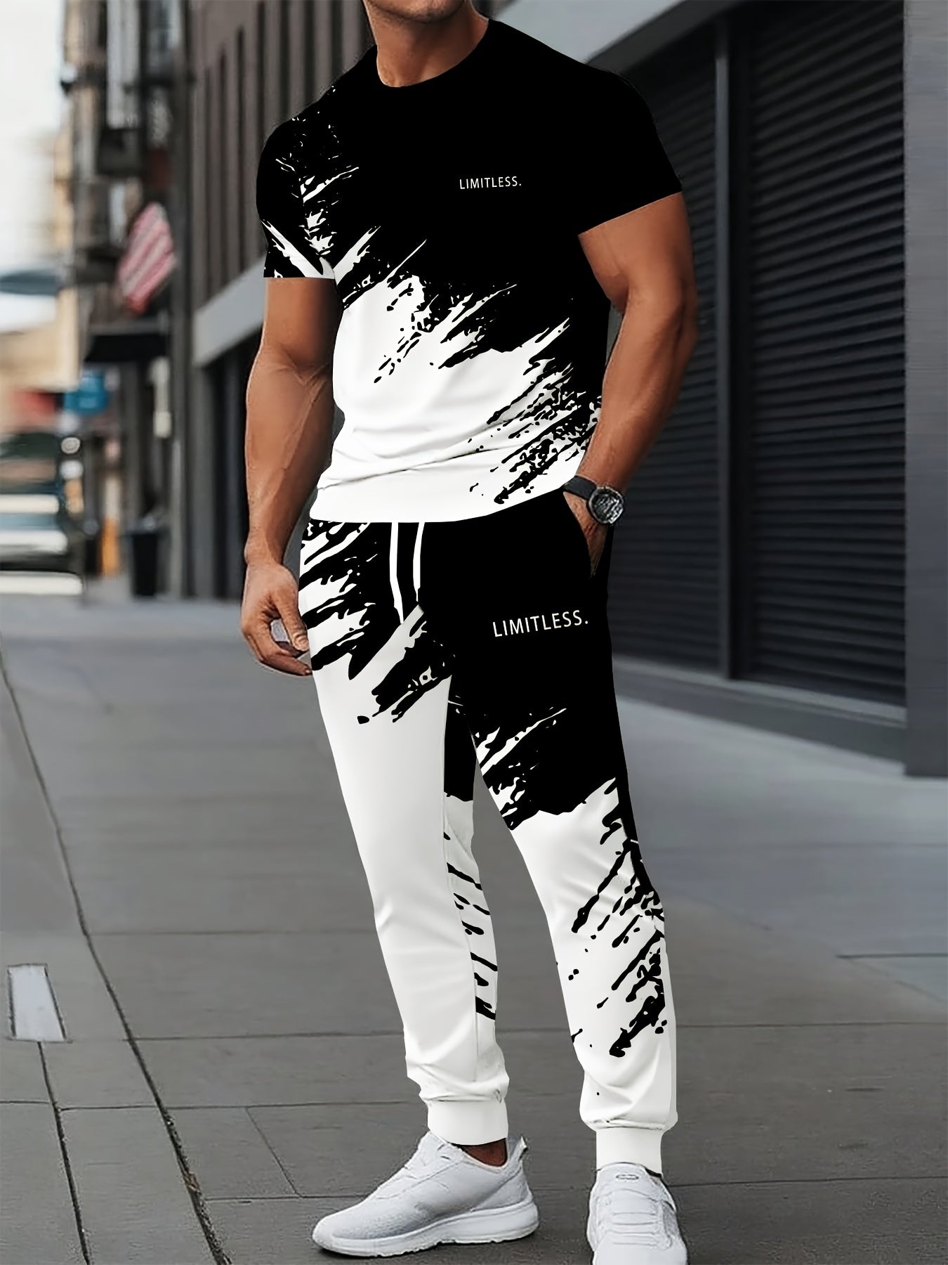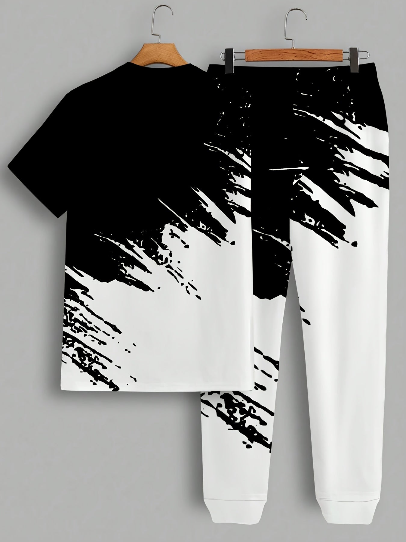 Men's 3D Printed T-Shirt & Drawstring Trousers Set - Casual Style