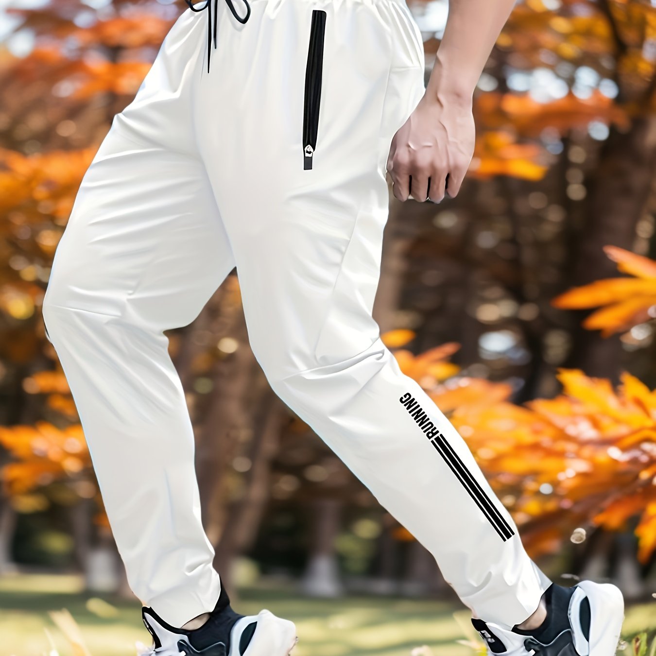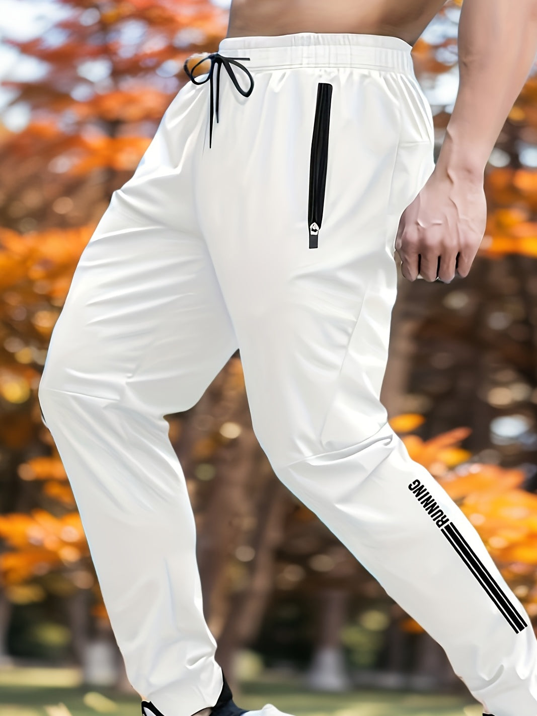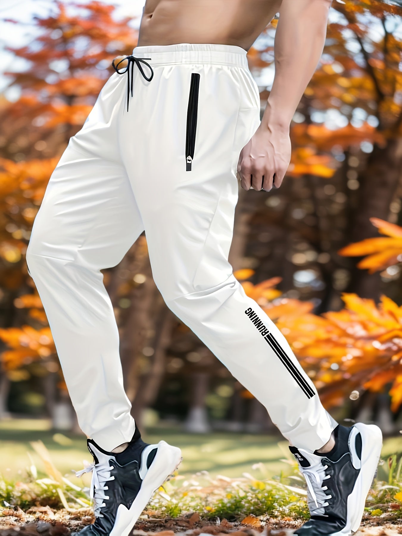 Men's Sporty Joggers - 3D Letter Print, Elastic Waist, Tapered Fit