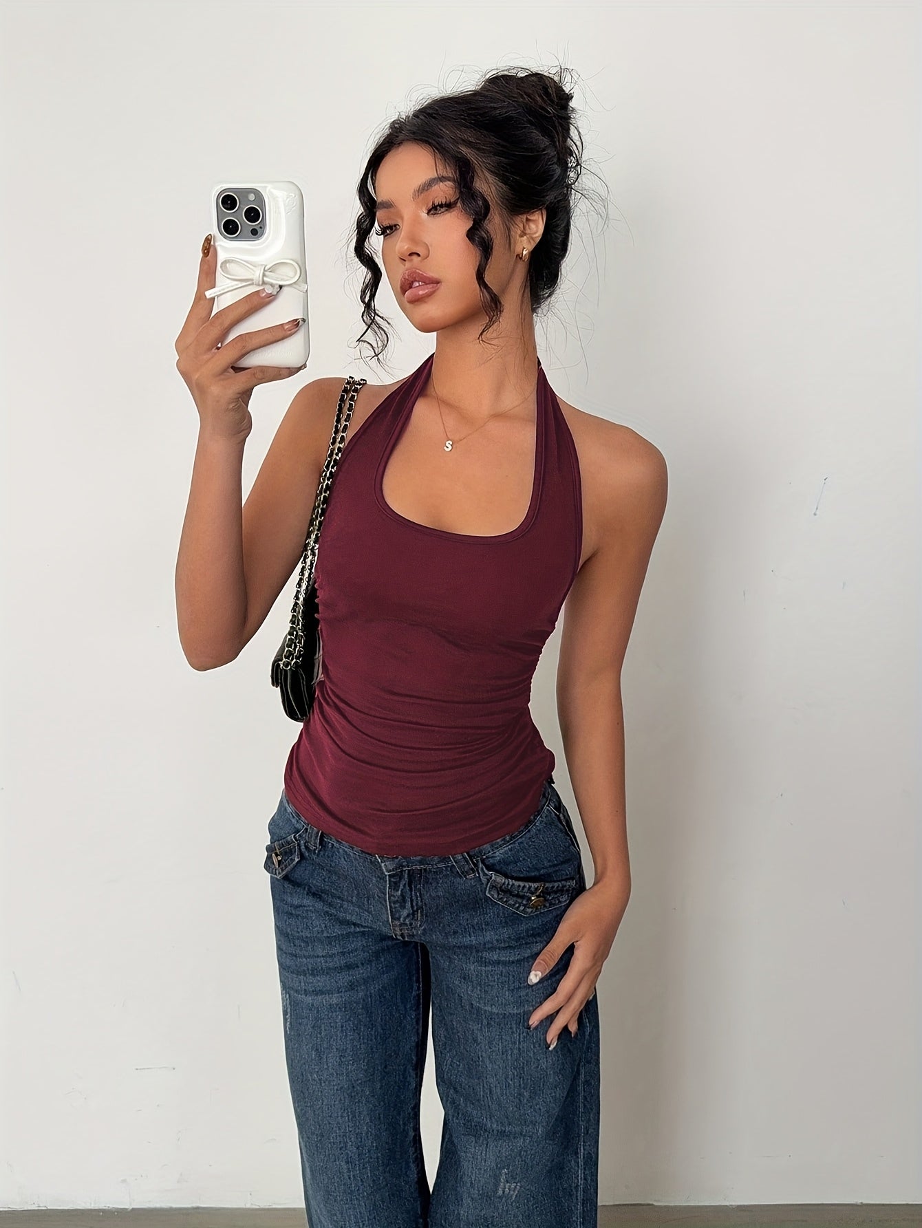 Women's Elegant Halter Neck Tank Top - Backless Slim Fit Design