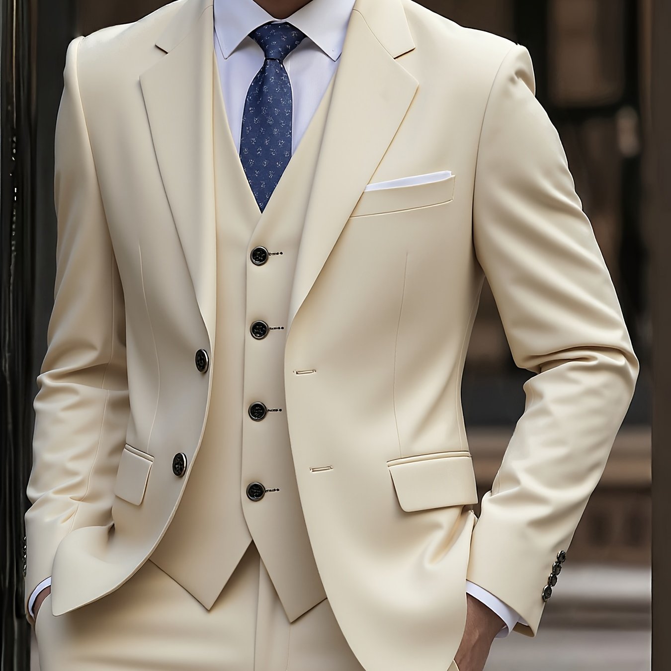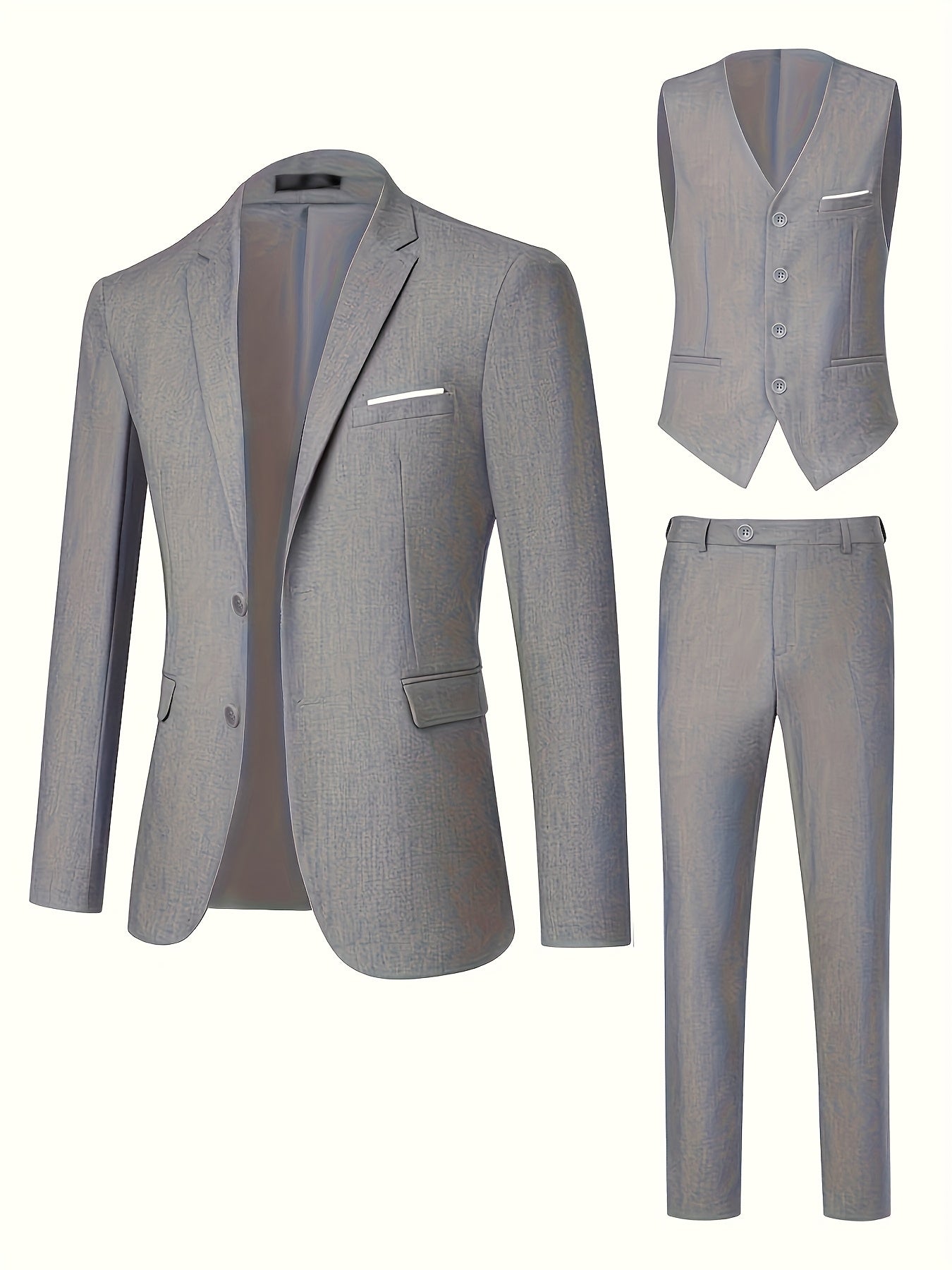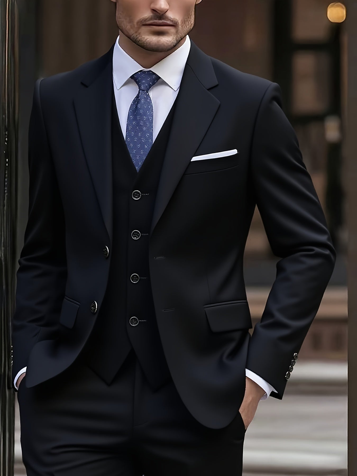 Men's Premium Three-Piece Suit Set - Classic Solid Color Attire