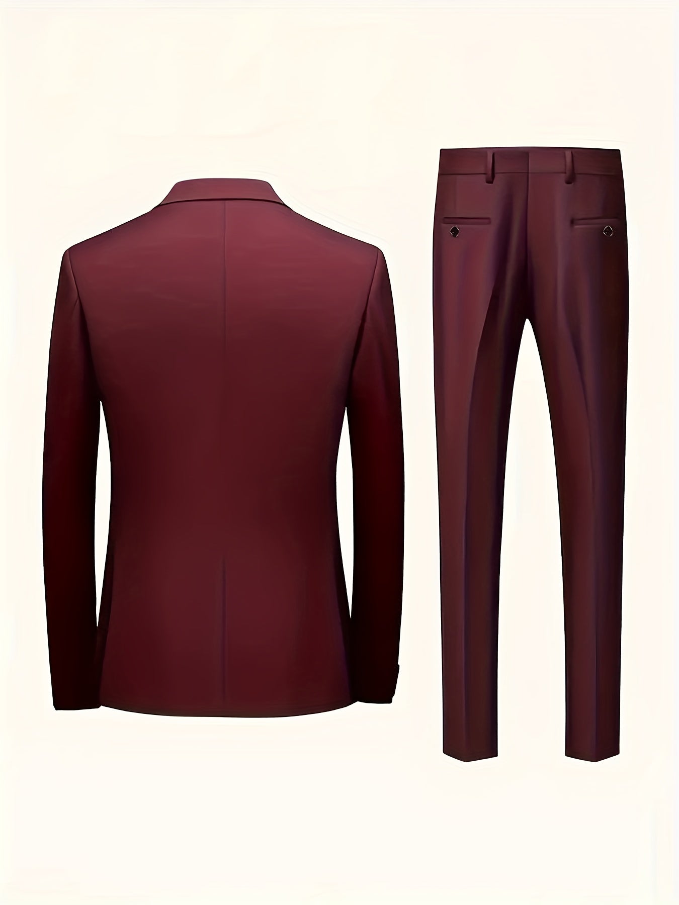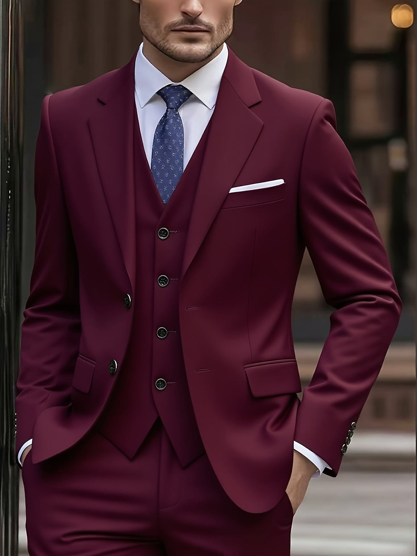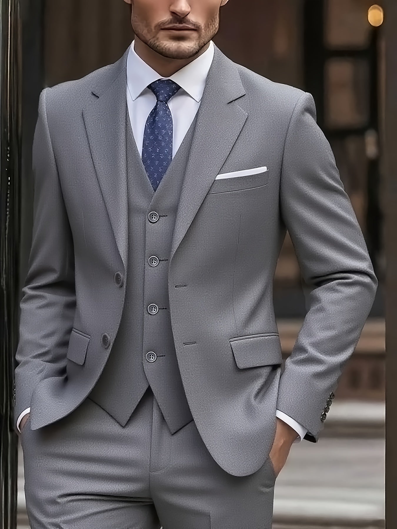 Men's Premium Three-Piece Suit Set - Classic Solid Color Attire