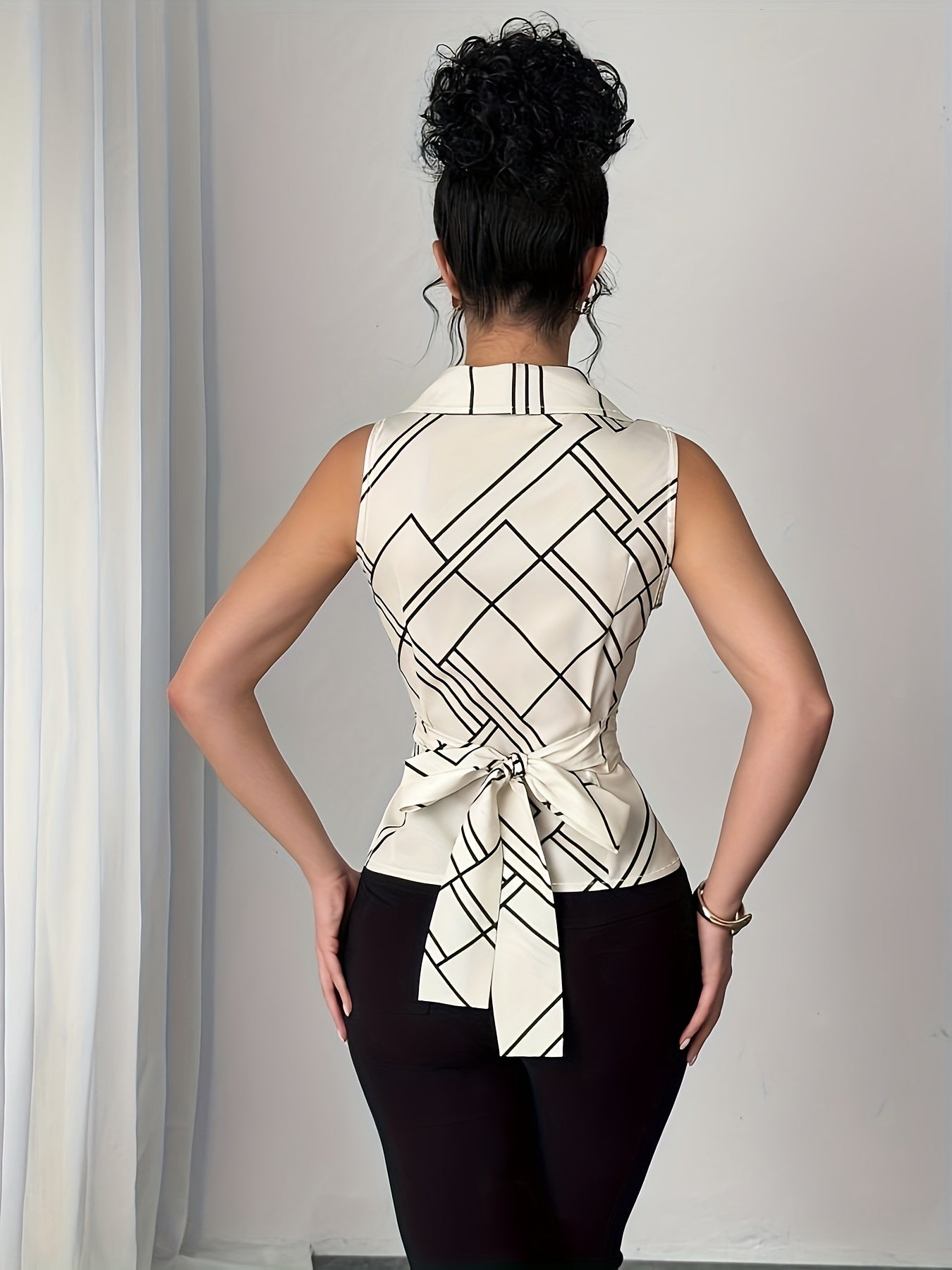 Introducing our Stylish Geometric Pattern Sleeveless Crop Top, the perfect addition to your spring and summer wardrobe. Made from 100% polyester, this top features an elegant geometric design that can elevate any outfit while ensuring comfort and breathability.