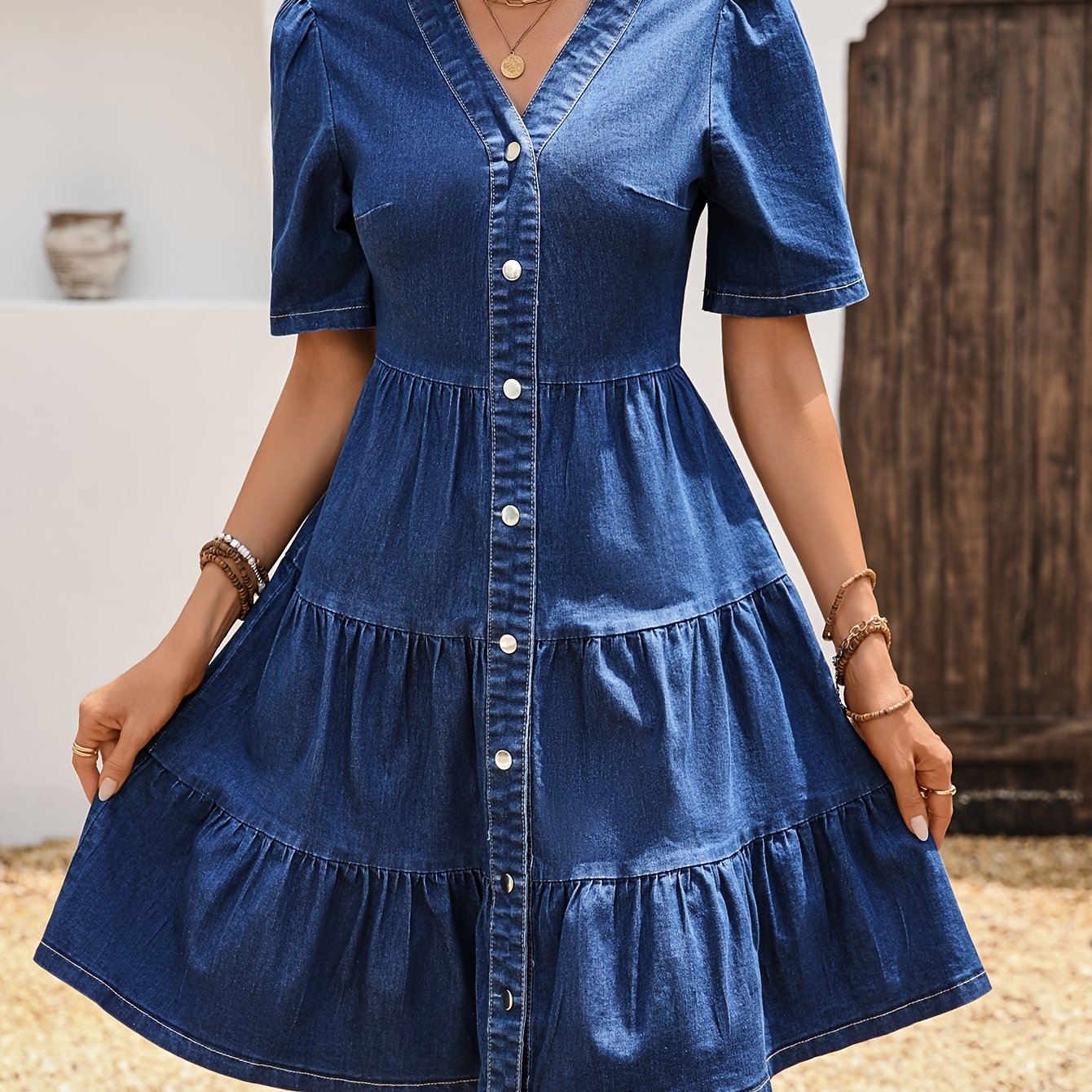 Morin Women's Elegant Denim-like Dress - Flared, Button Front Style