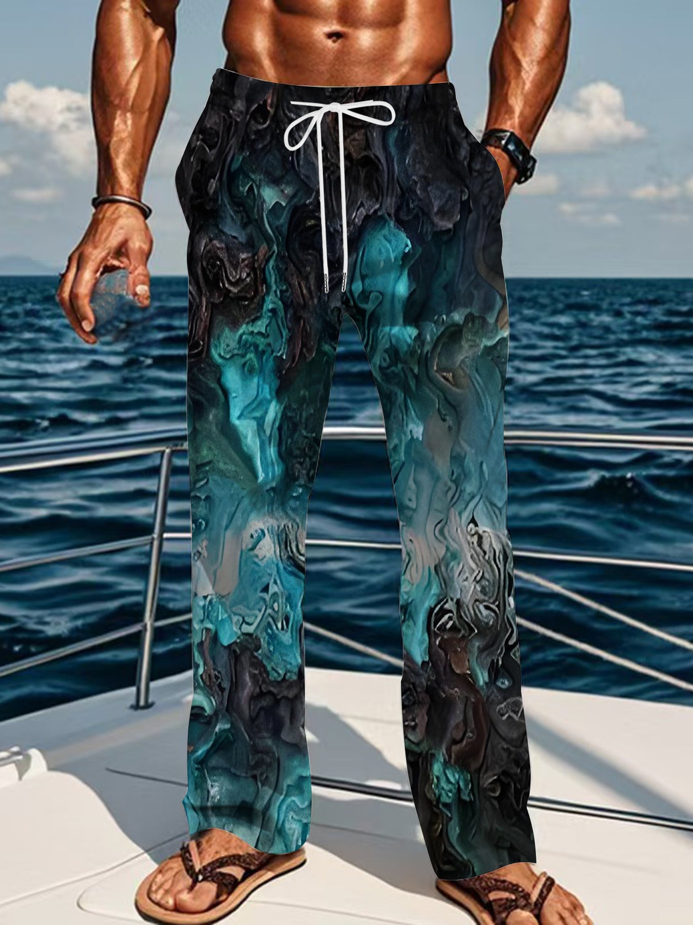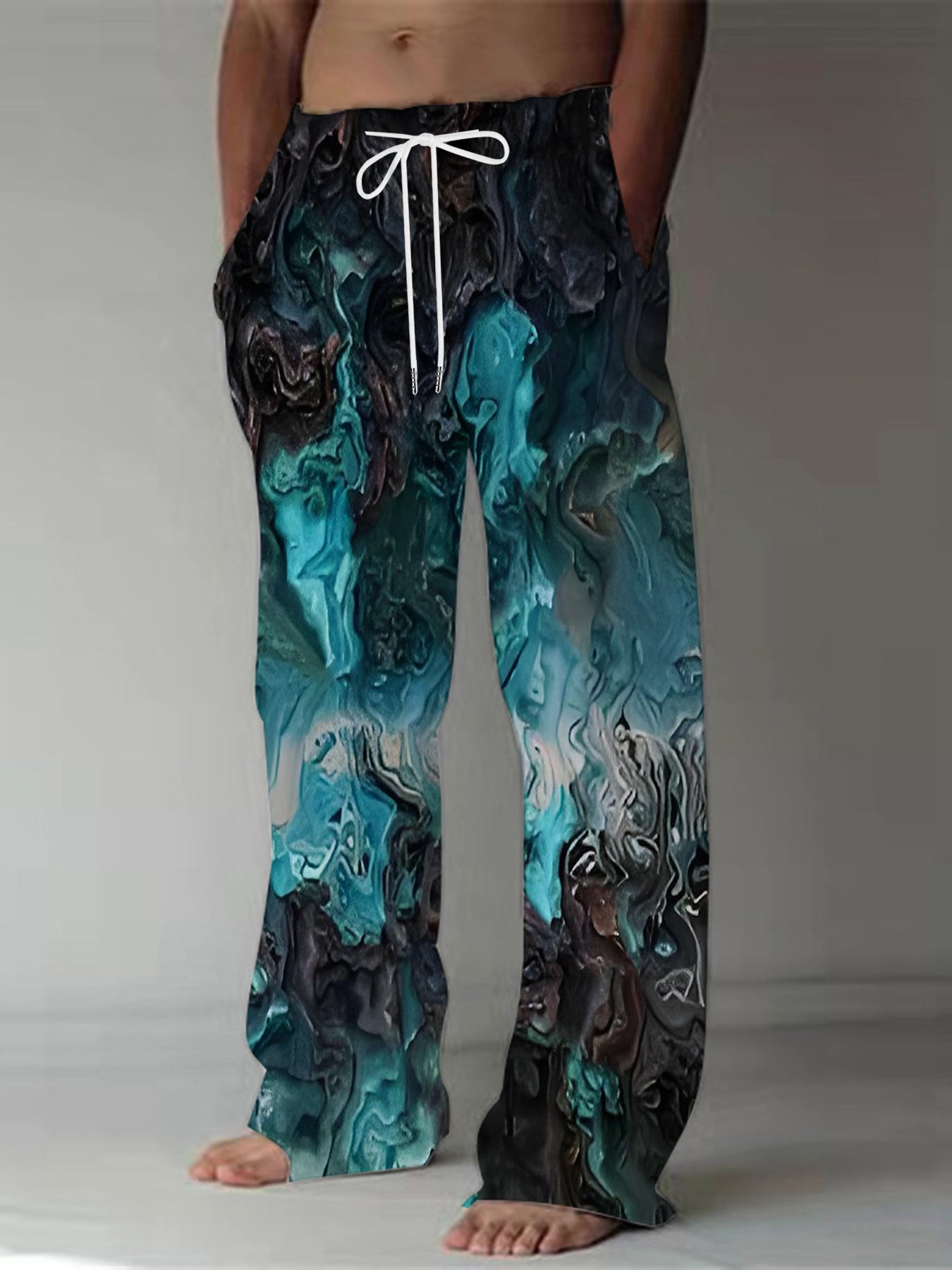 Men's Casual Loose-Fit Straight Pants - Abstract Digital Print Style
