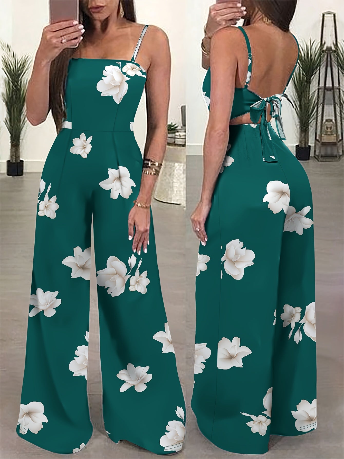 Elegant Floral Print Jumpsuit - Sleeveless Wide-Leg Romper for Summer