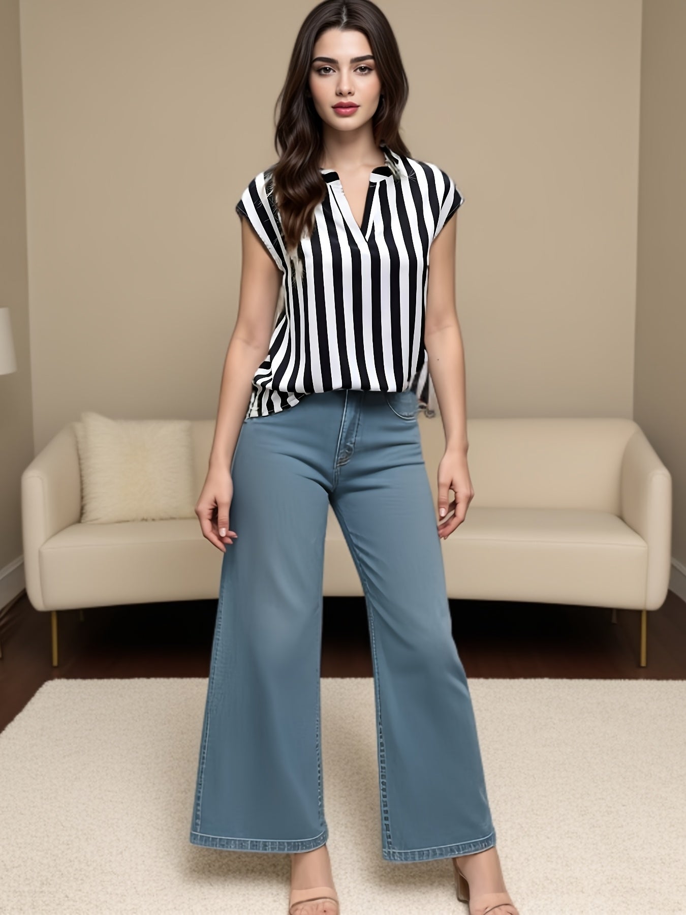 Elevate your summer look with the Striped Notch Neck Batwing Sleeve Shirt. Its unique V-neck collar and effortless style make it versatile enough for both casual outings and more polished events. Pair it with shorts or jeans and embrace the season's vibe with confidence. Get ready to receive compliments!