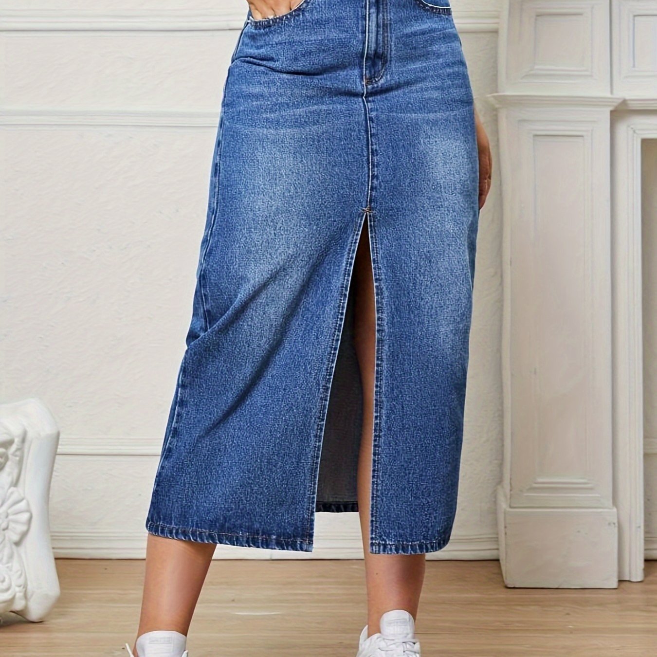 Vintage High-Waist Denim Skirt for Women - Long With Front Slit
