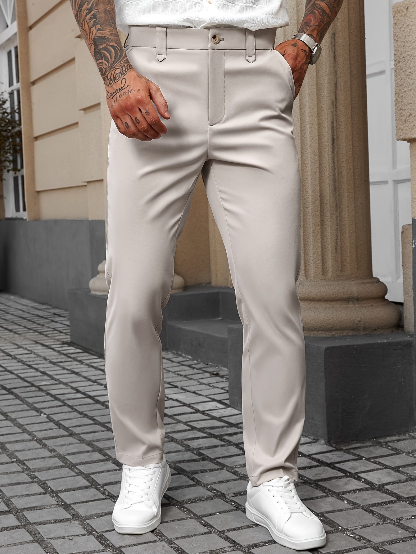 Discover the perfect combination of comfort and elegance with our Men's Light Beige Casual Dress Pants. These versatile pants are easy to match with any top, making them a must-have addition to your wardrobe. Whether you're heading to the office or a weekend outing, these dress pants offer a polished look without sacrificing comfort. Experience the ideal blend of style and practicality with every wear.