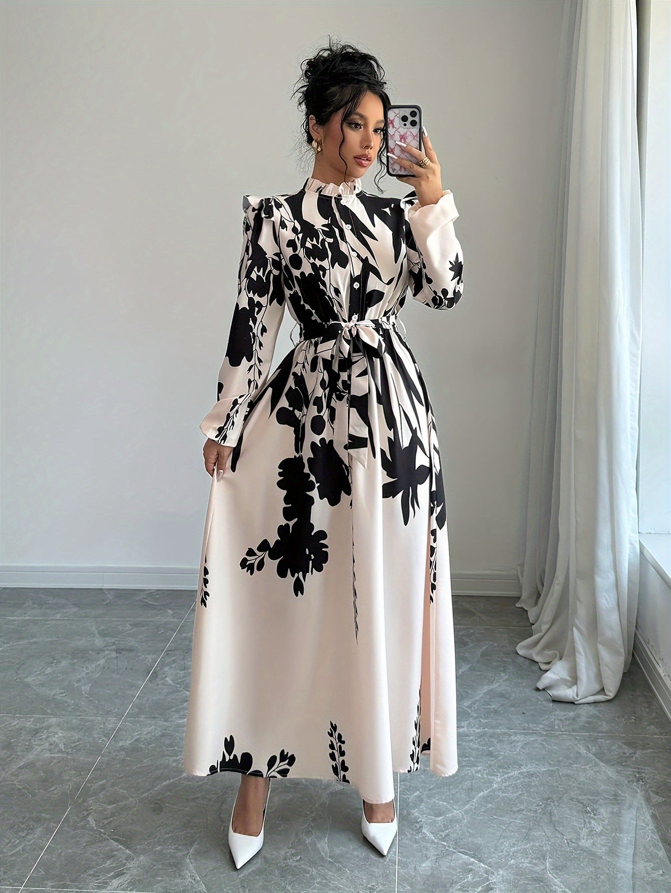Step out in confidence this fall and winter with our Women's Floral Print A-Line Dress, the epitome of chic elegance. Whether you're attending a formal gathering or enjoying a cozy evening out, this dress ensures you'll be the center of attention with its exquisite design and comfortable fit. Add this stunning piece to your wardrobe and embrace the beauty of seasonal style.