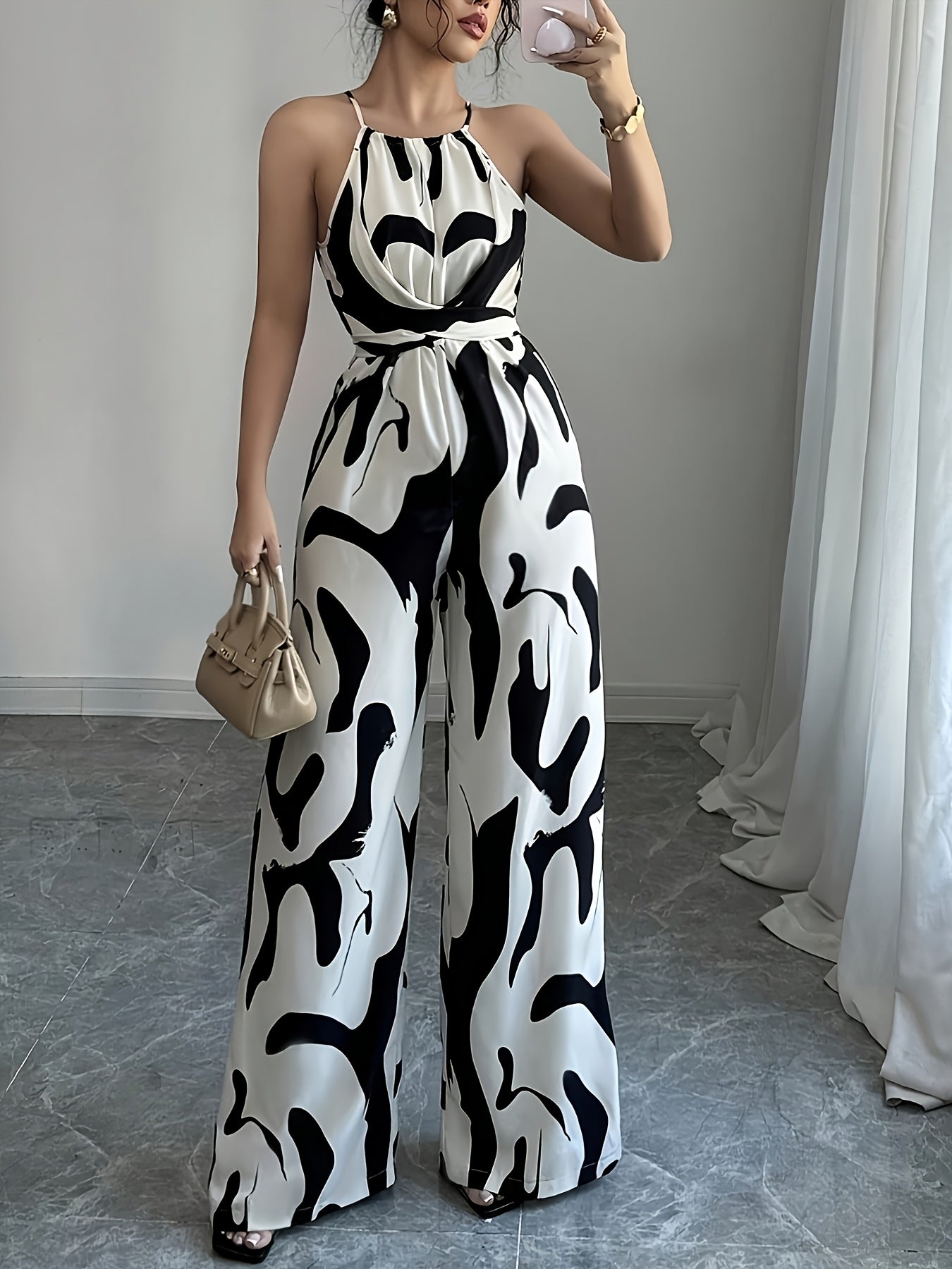 Elevate your fashion game with this Women's Elegant Halter Neck Jumpsuit, perfect for those who want to stand out while feeling comfortable. Whether you're heading out for a brunch or a night out, this jumpsuit combines elegance with practicality and will surely be a go-to piece in your closet.