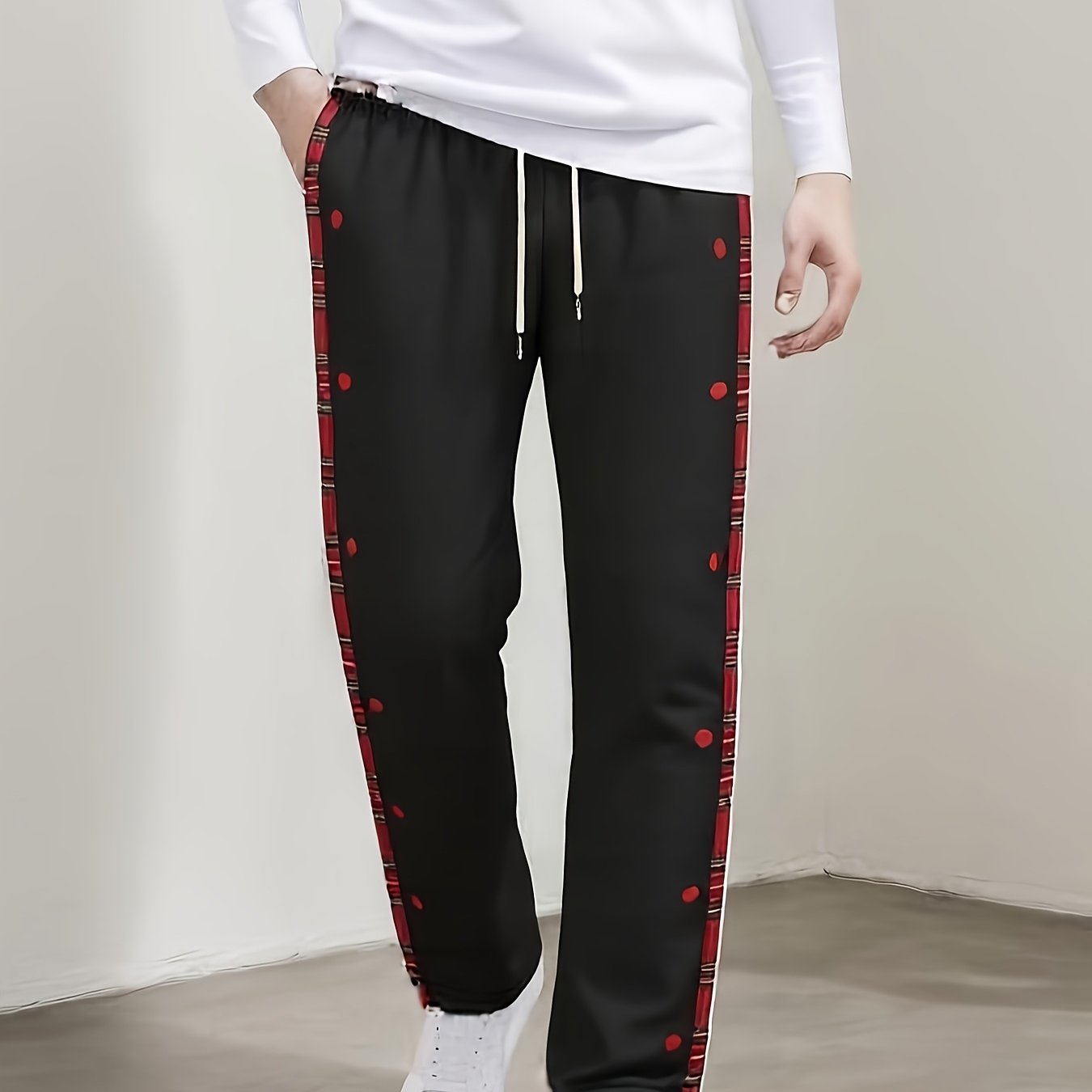 Elevate your casual wardrobe with these Men's Retro-Inspired Casual Joggers, featuring a festive plaid side stripe that combines comfort and style. Made from 100% polyester, these joggers are designed for a regular fit and slight stretch, ensuring maximum ease for every occasion.