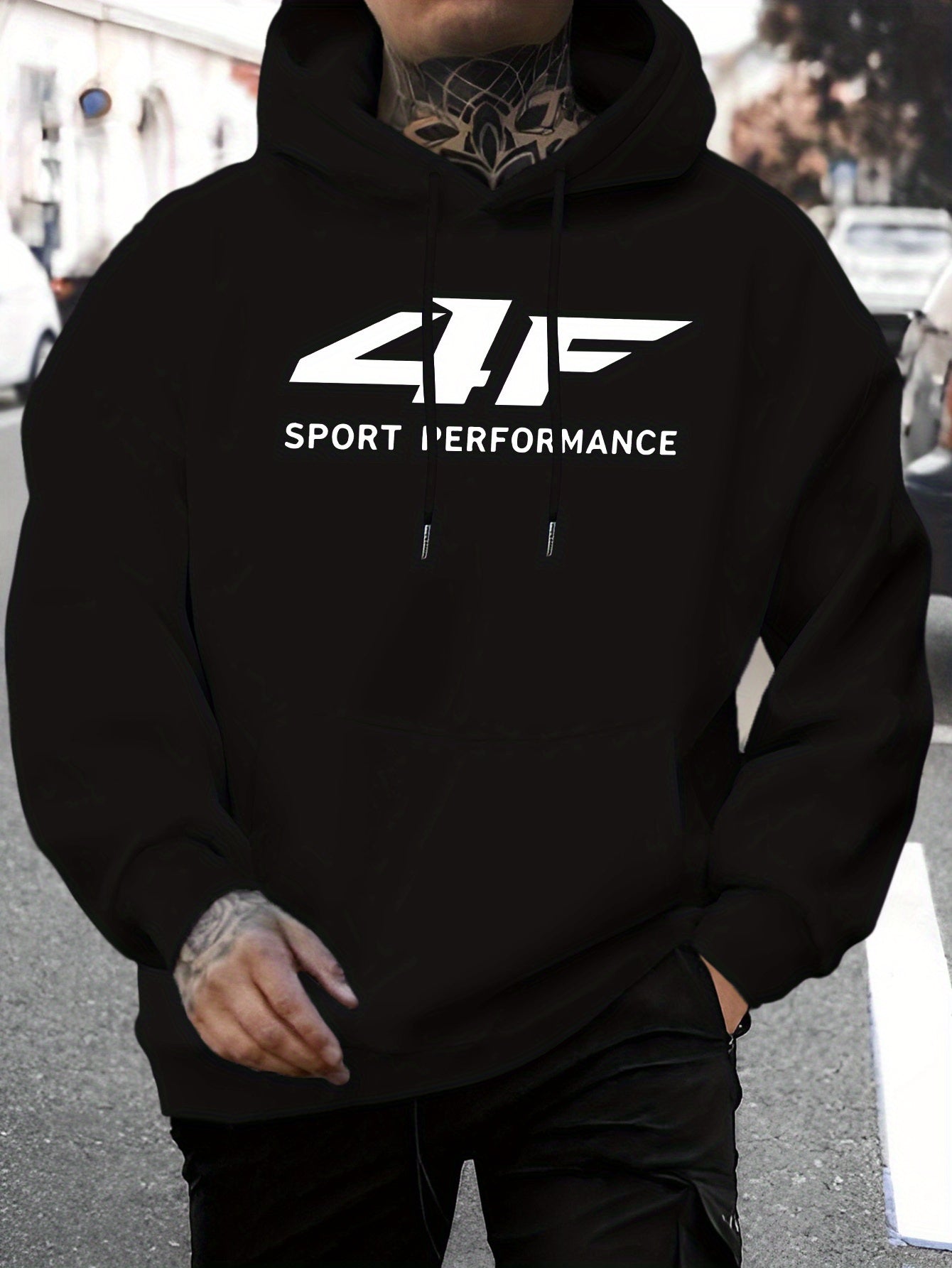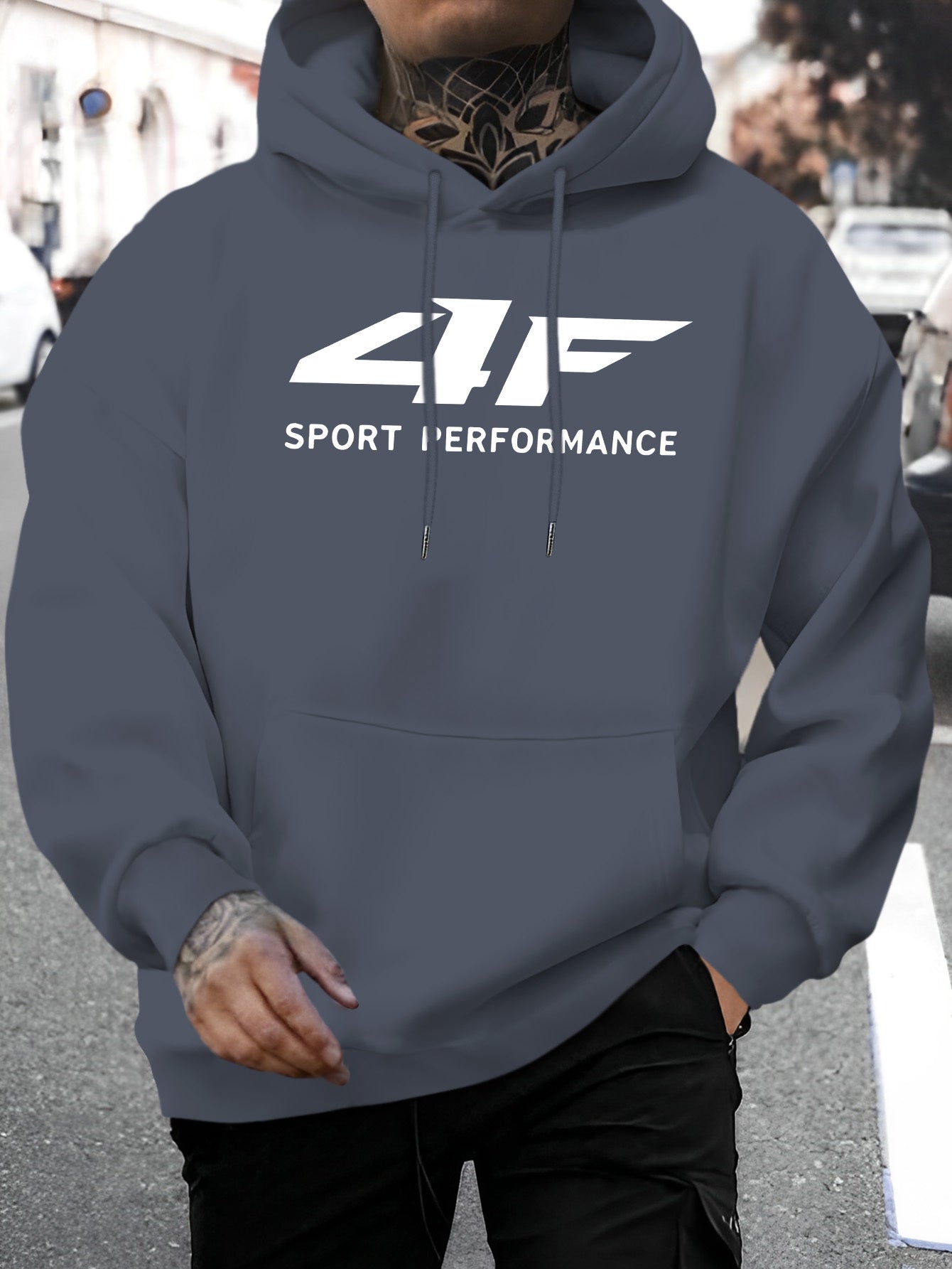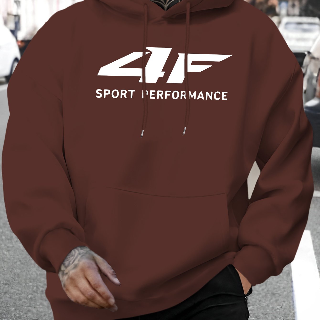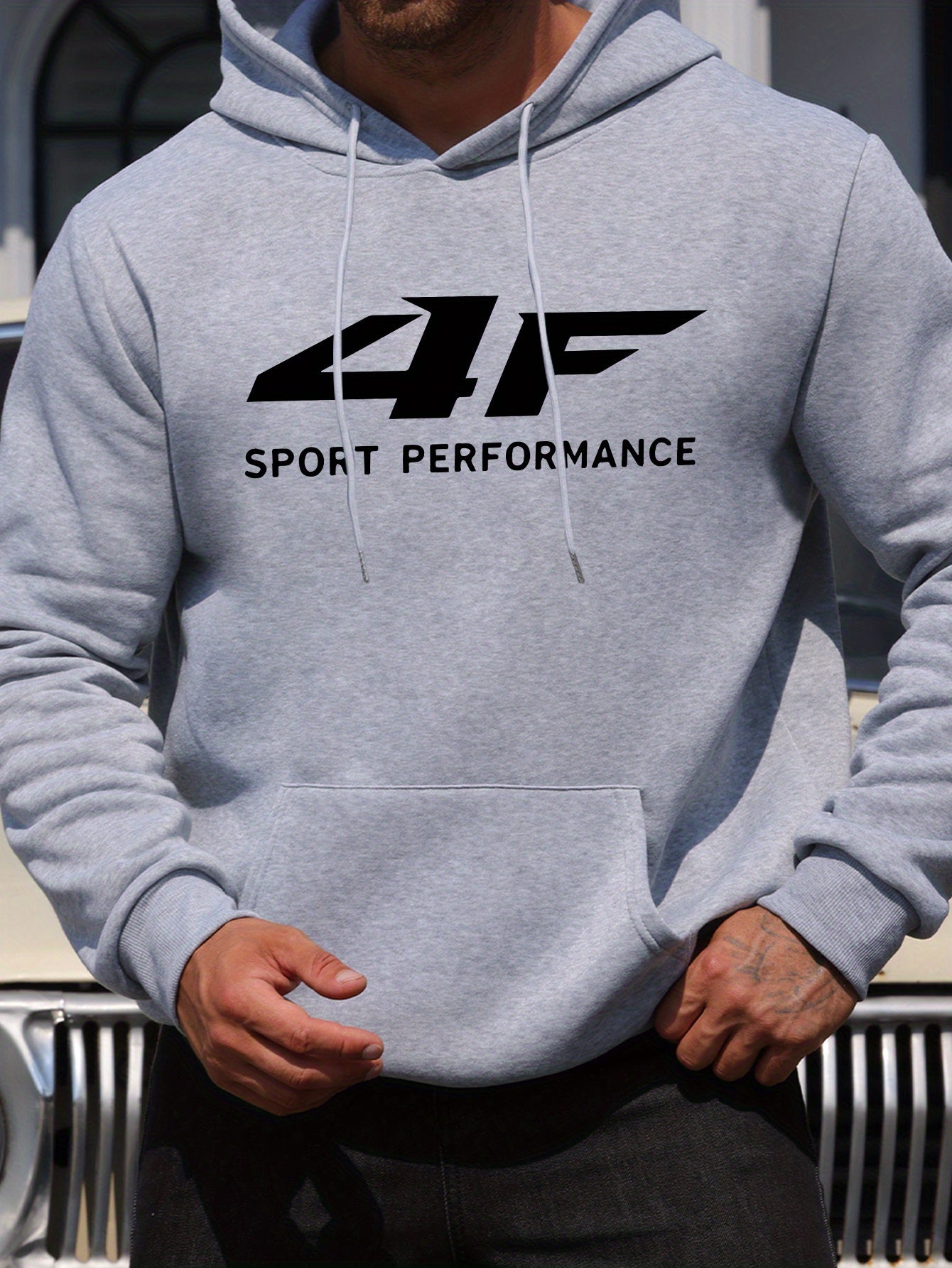 Men'S 4F Print Casual Hoodie - Sporty Long Sleeve Pullover with Drawstring, Comfortable & Versatile for Fall/Winter, Polyester Blend, Regular Fit, Sweater Hoodie
