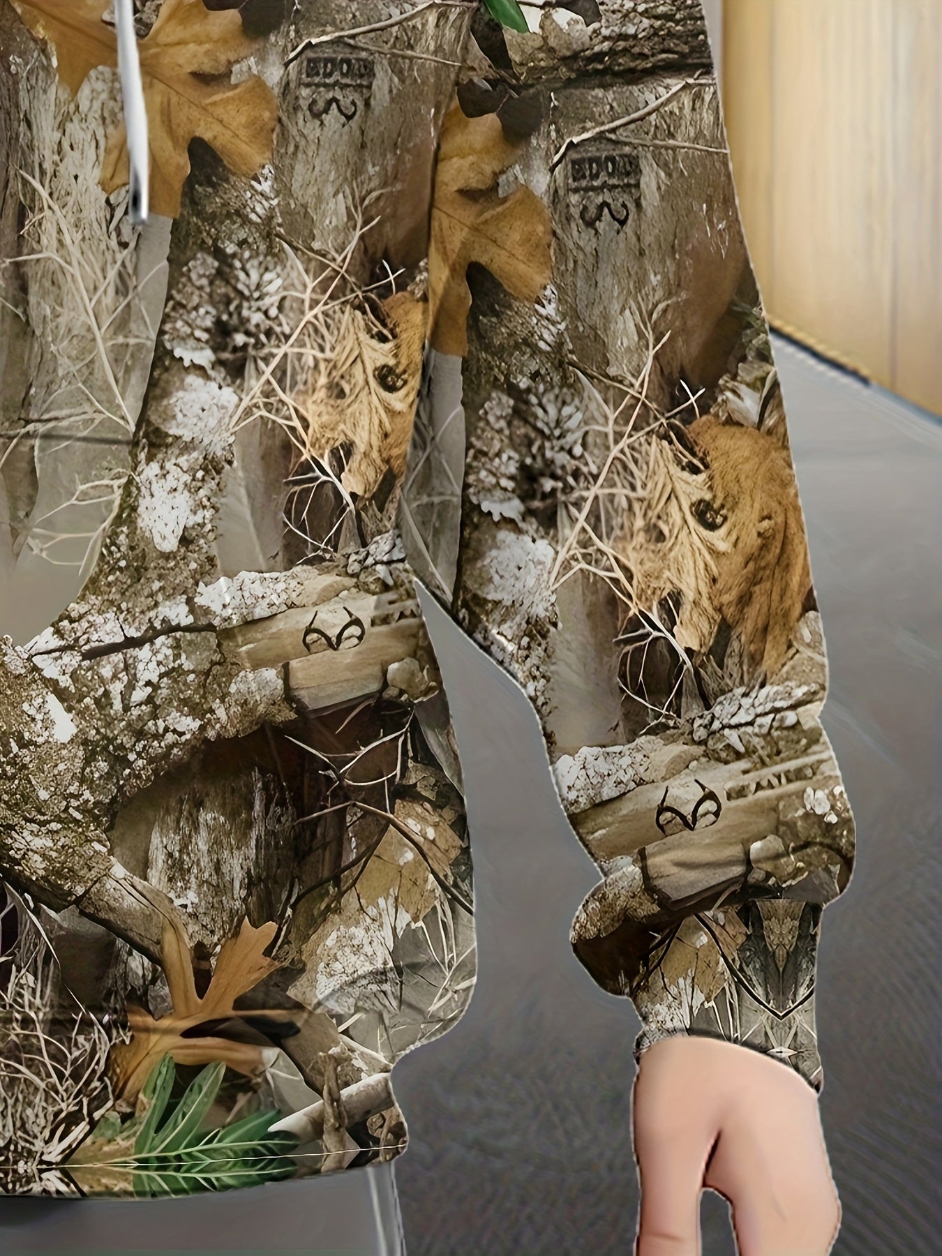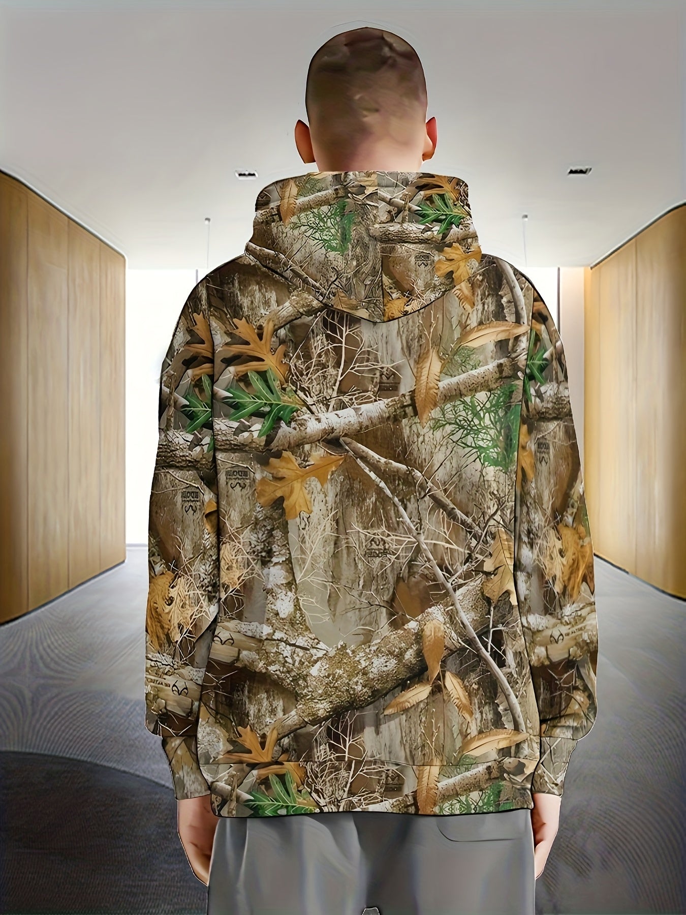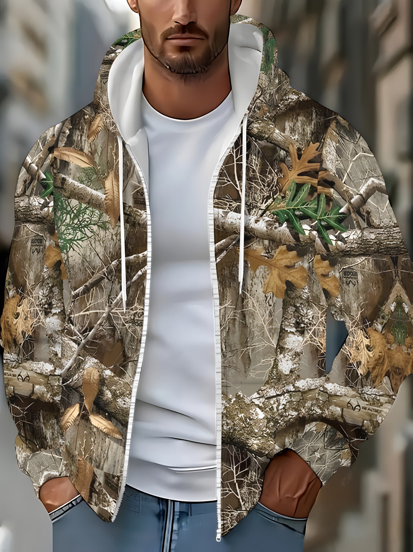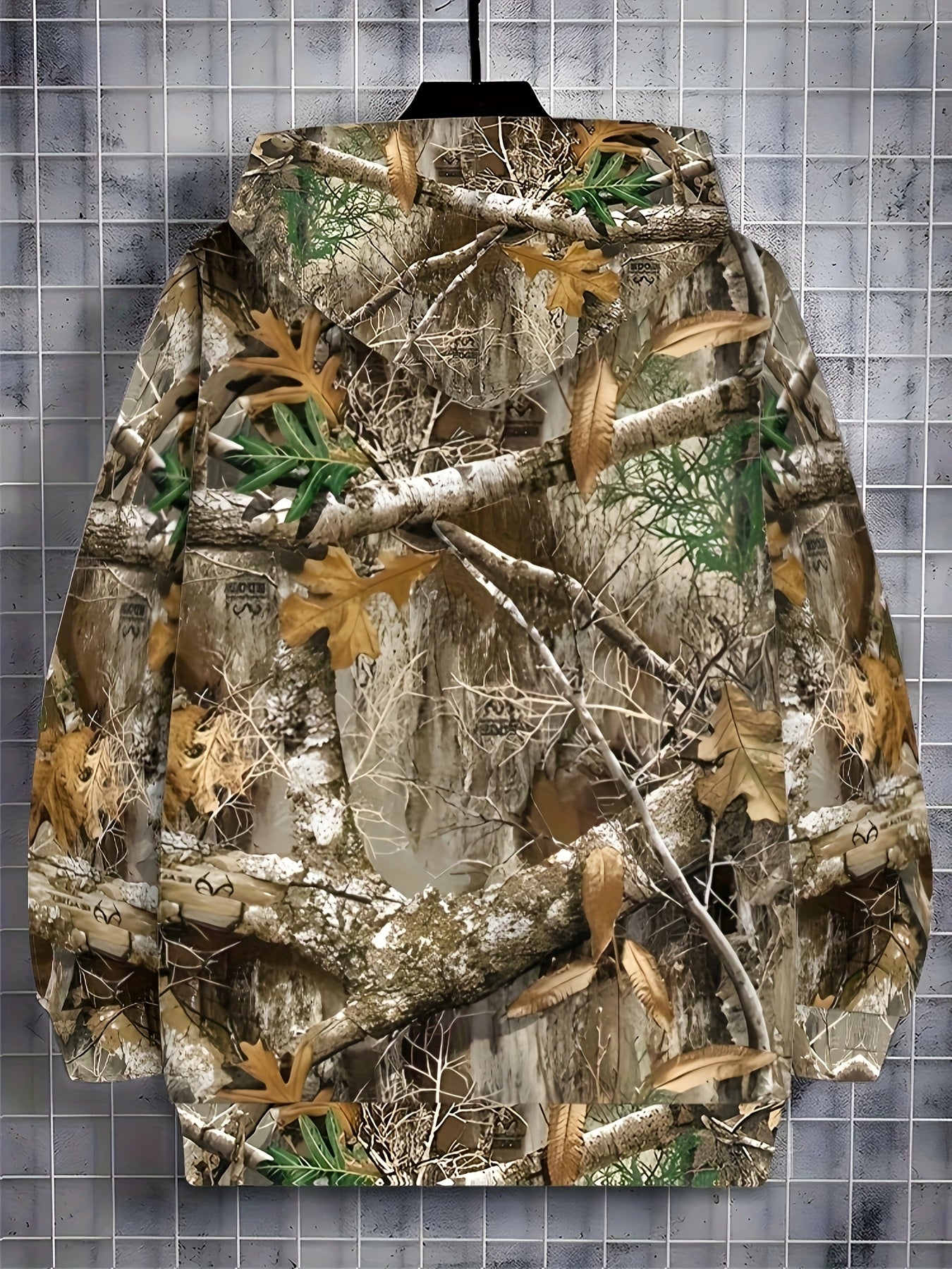 Men's Full-Zip Camouflage Tree Print Hooded Sweatshirt Jacket - Adjustable Drawstring Hood, Front Pockets, Machine Washable Spring/Fall Casual Outdoor Coat, Outdoor Casual Wear | Tree Print Design | Durable Fabric Jacket, Camouflage Hoodie
