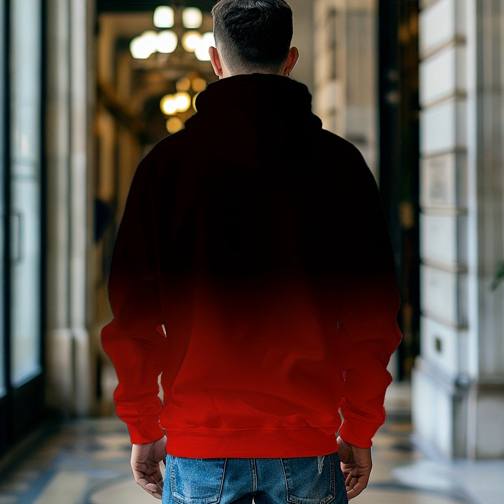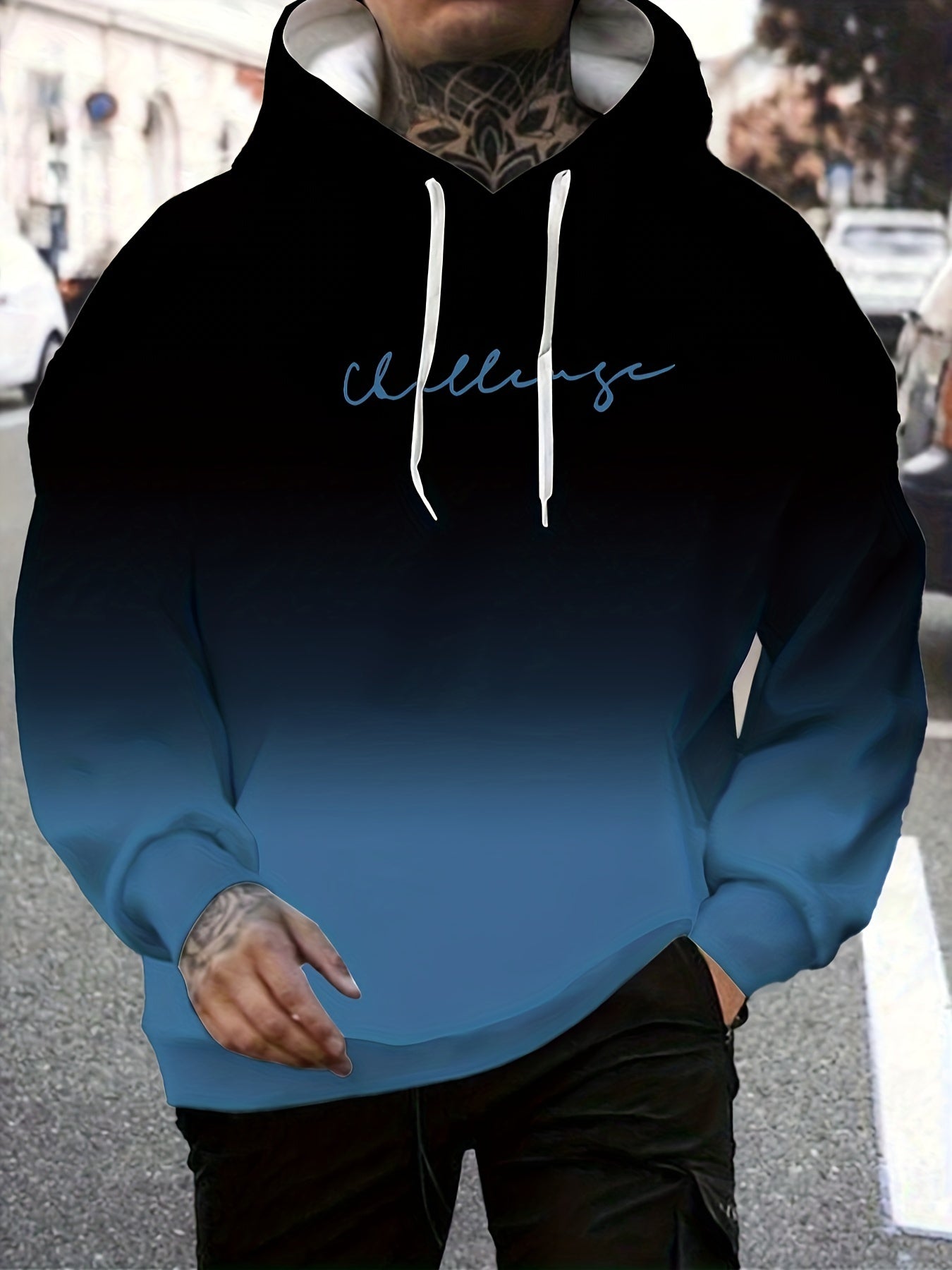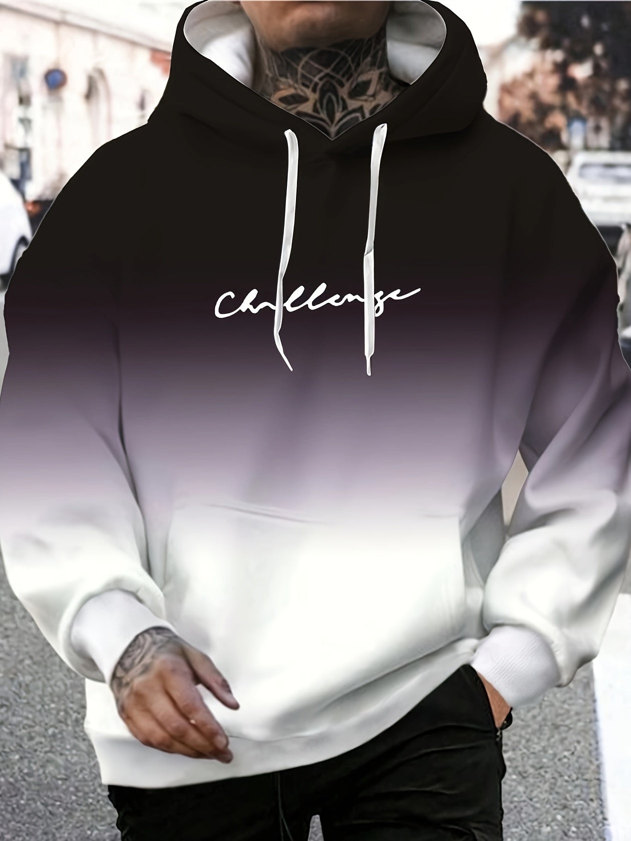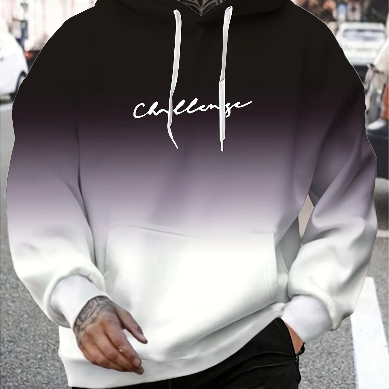 Men's Gradient Color Challenge Graphic Print Hoodie With Kangaroo Pocket, Casual Long Sleeve Hooded Sweatshirt For Outdoor
