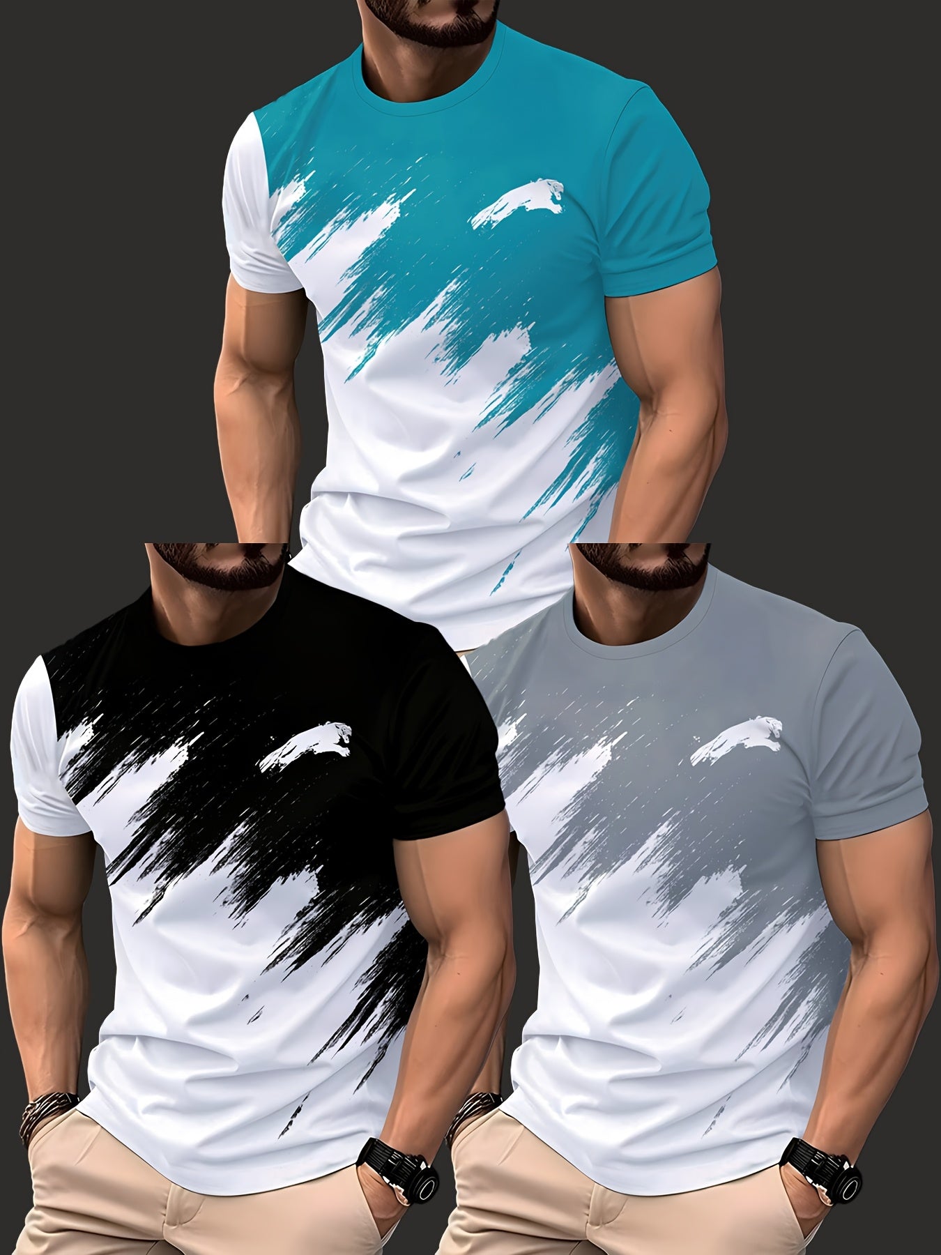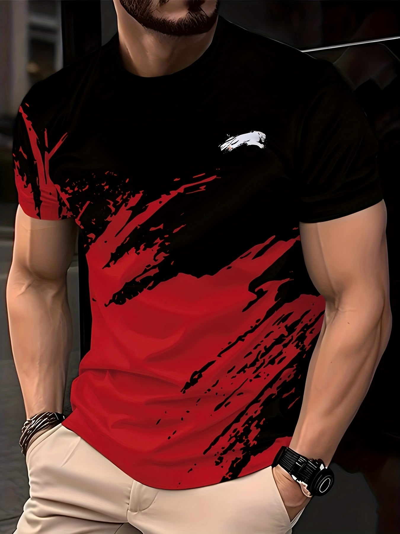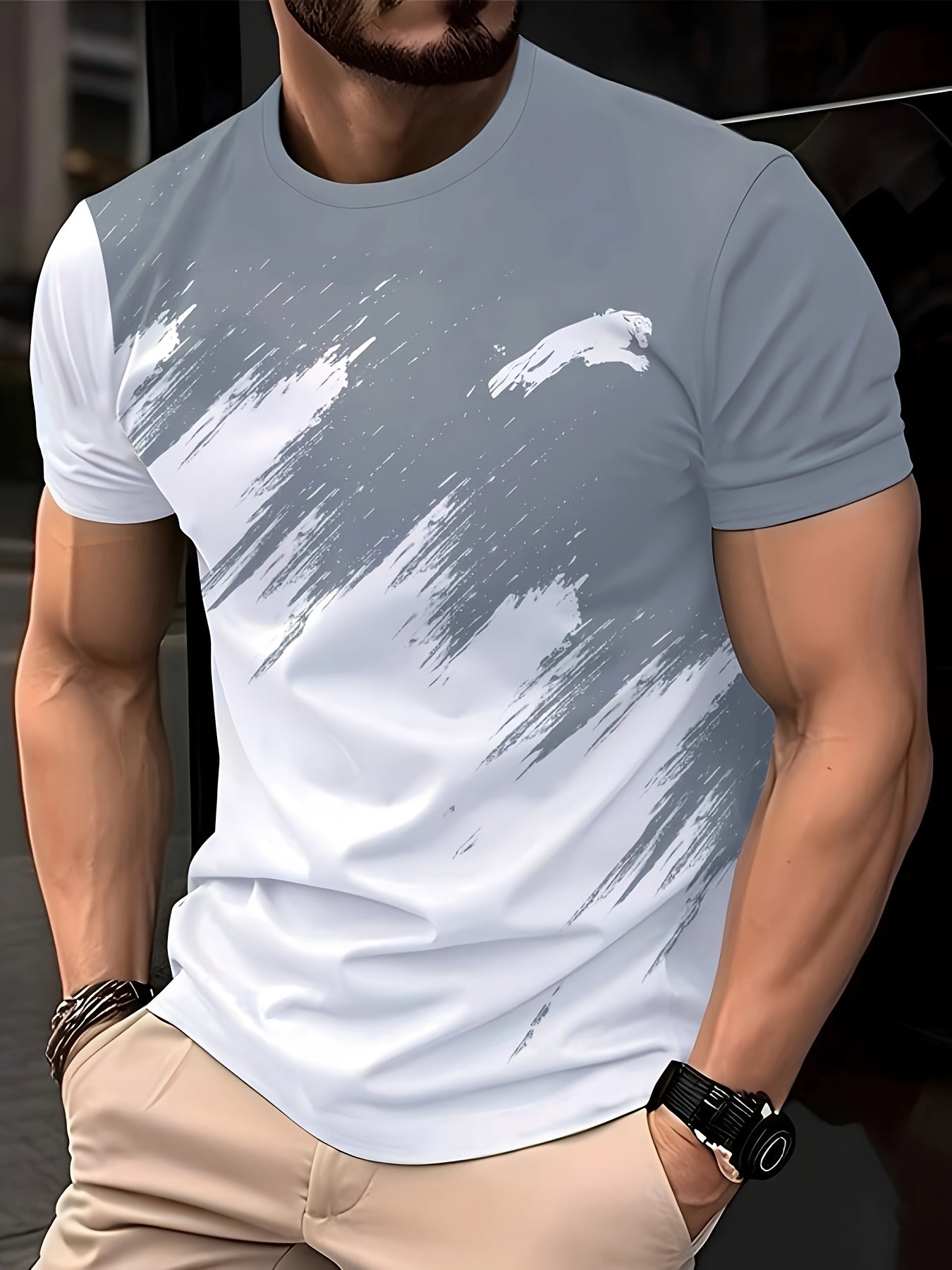 Men's Casual Crew Neck T-Shirts - Geometric Pattern, Lightweight Fit