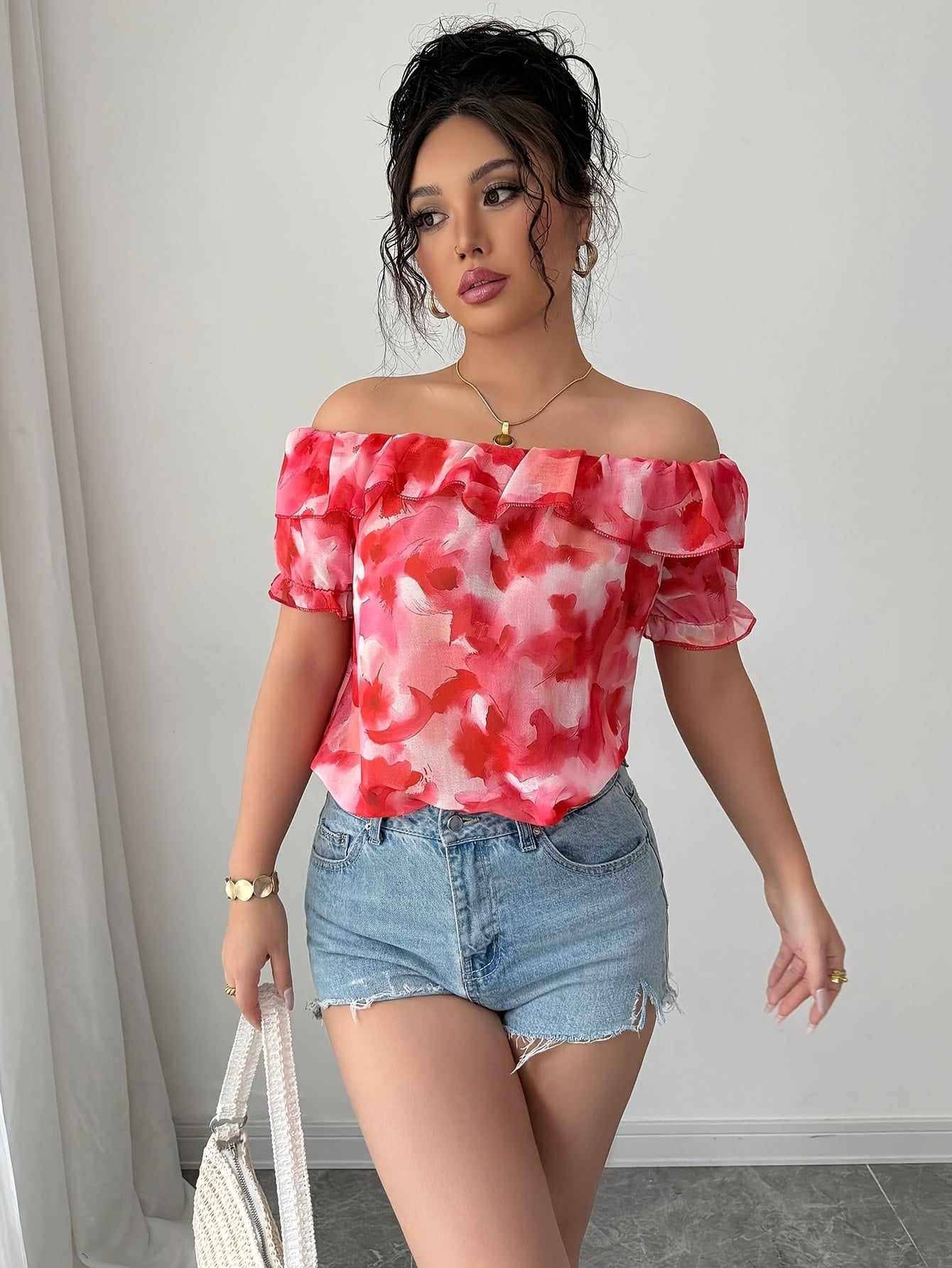 Women's Floral Off-Shoulder Blouse - Lightweight Ruffled Hem Top