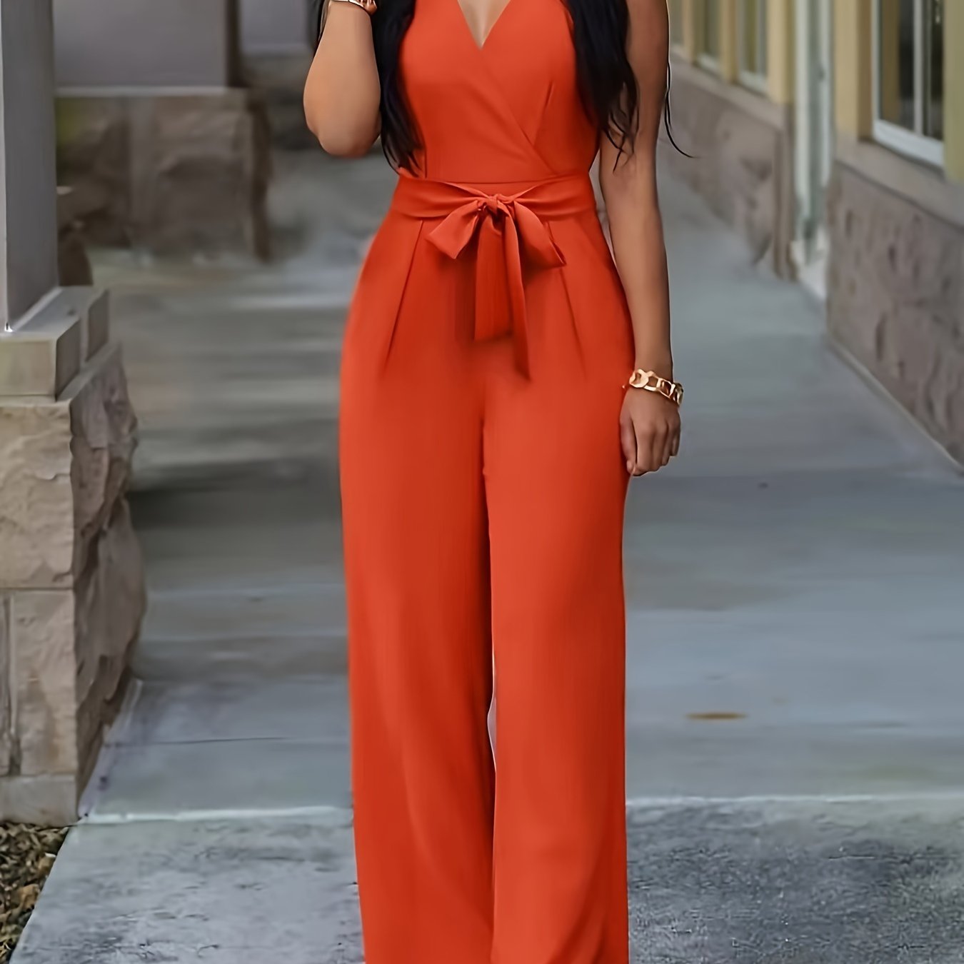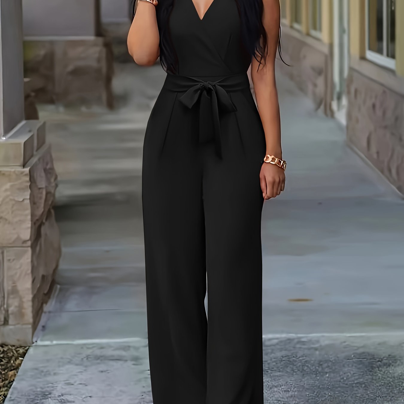 First-Class Wide-Leg Jumpsuit with Belt - Casual Vacation Style