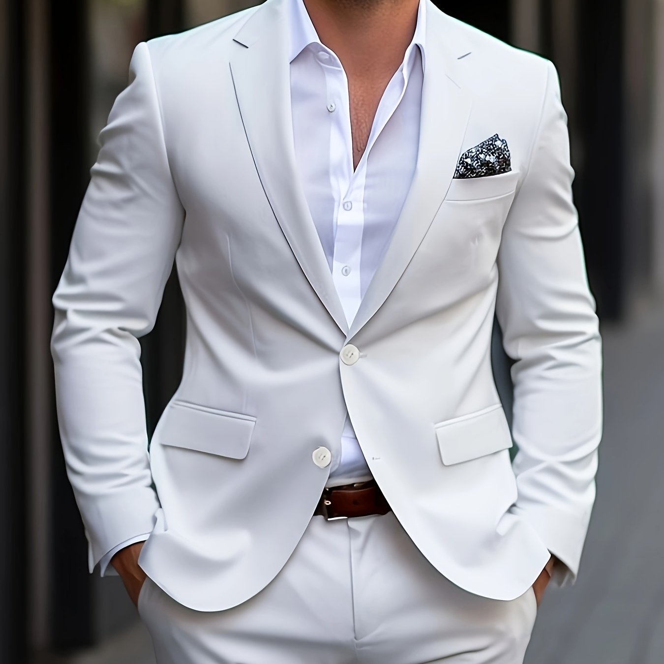 Elegant Men's Solid Color Suit Set - Lightweight Wedding Attire
