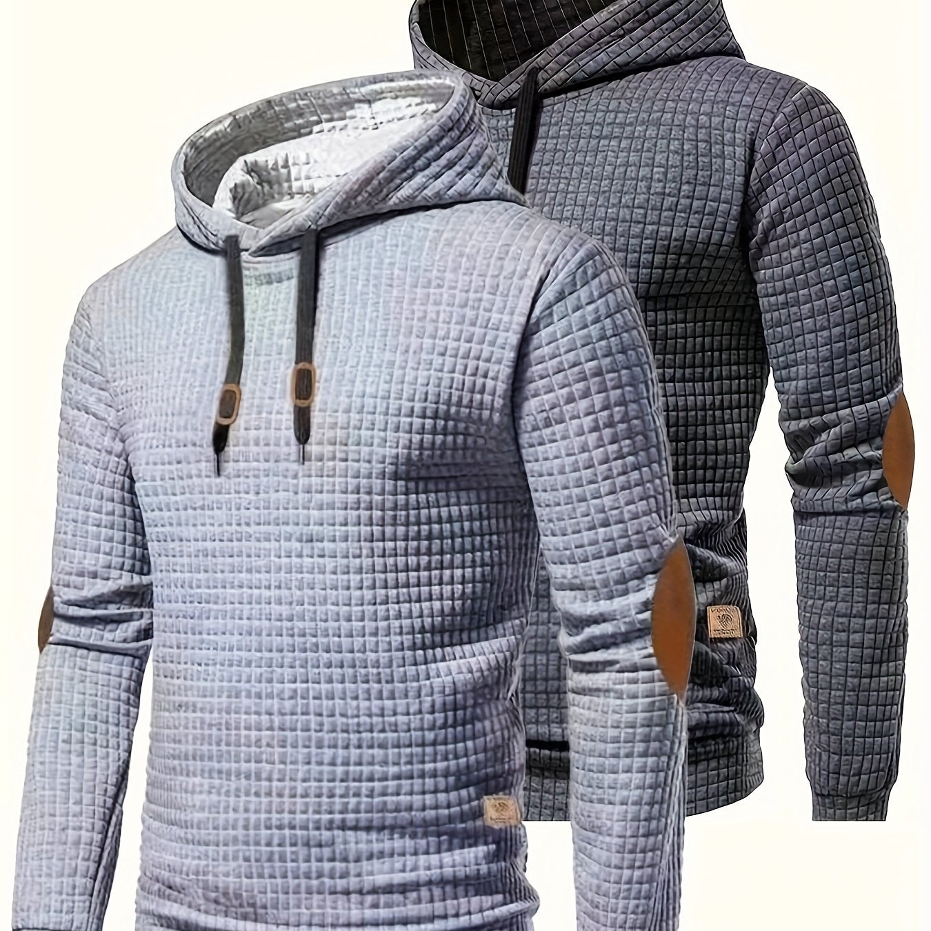 2pcs Men'S Plaid Hooded Sweatshirts - Cozy Fall Pullover with Kangaroo Pocket, Casual Long Sleeve Hoodies in White & Dark Gray, Soft Polyester Blend for Casual Attire, Sweater Hoodie