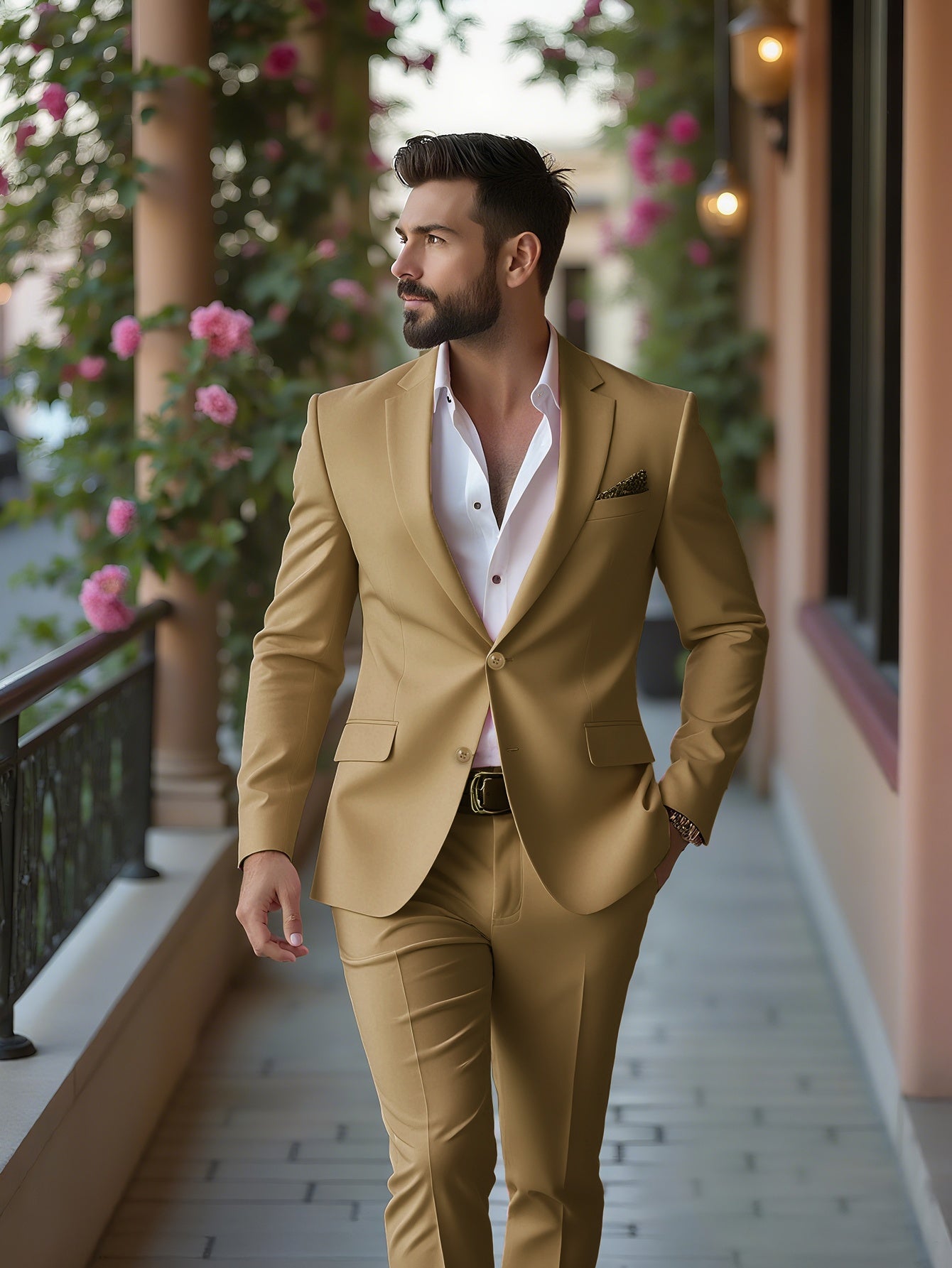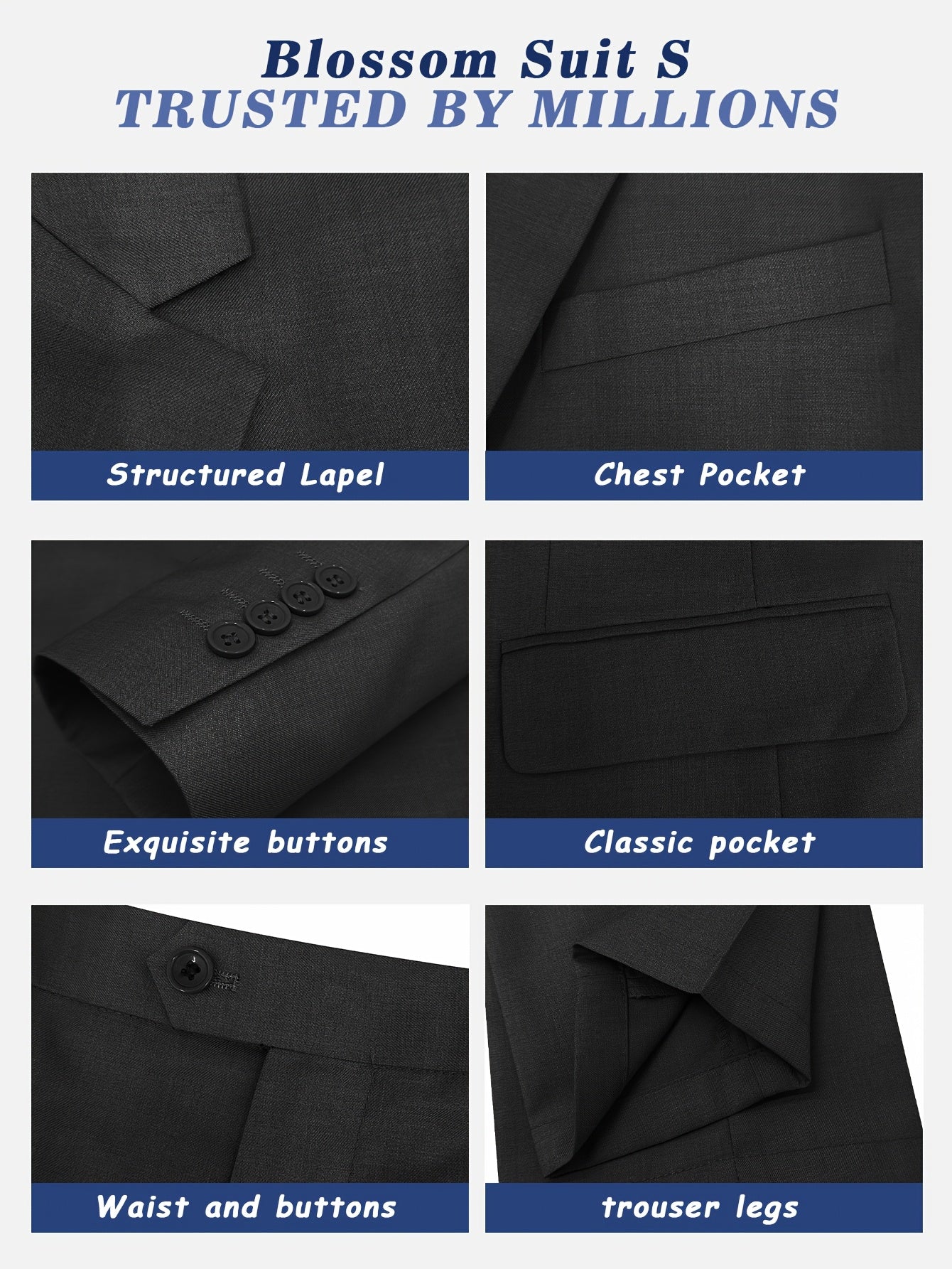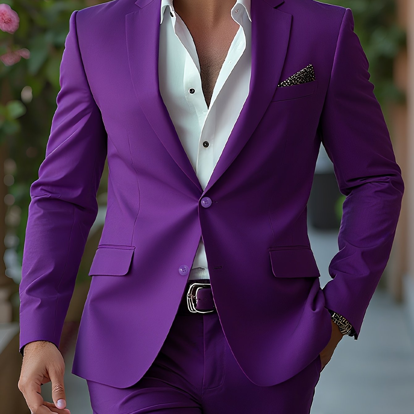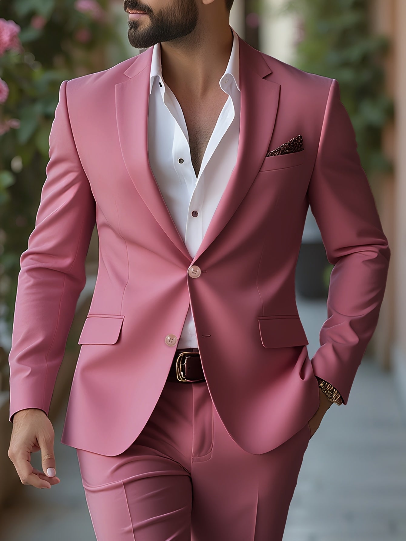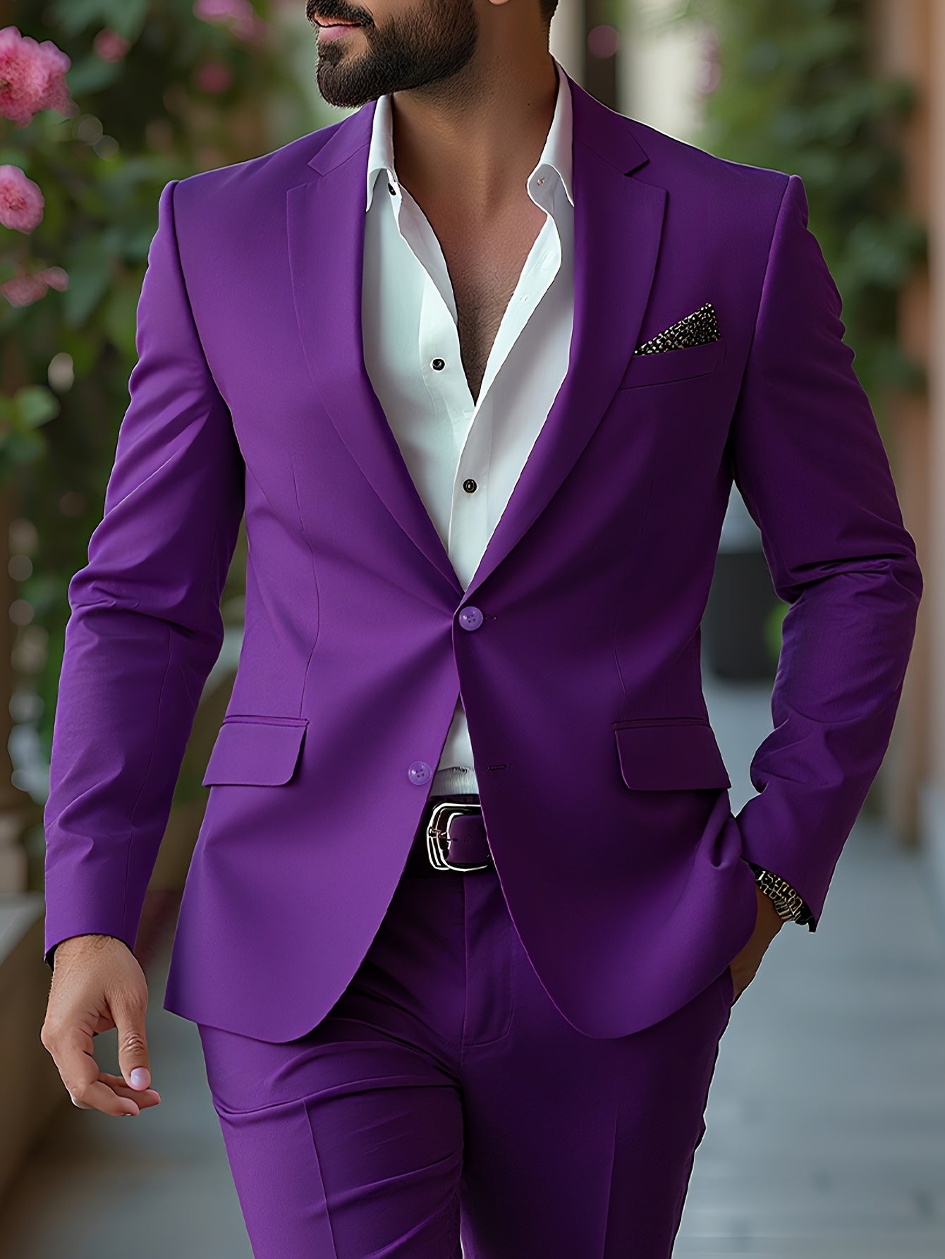 Men's Solid Color Business Suit Jacket - Regular Fit & Notch Lapel