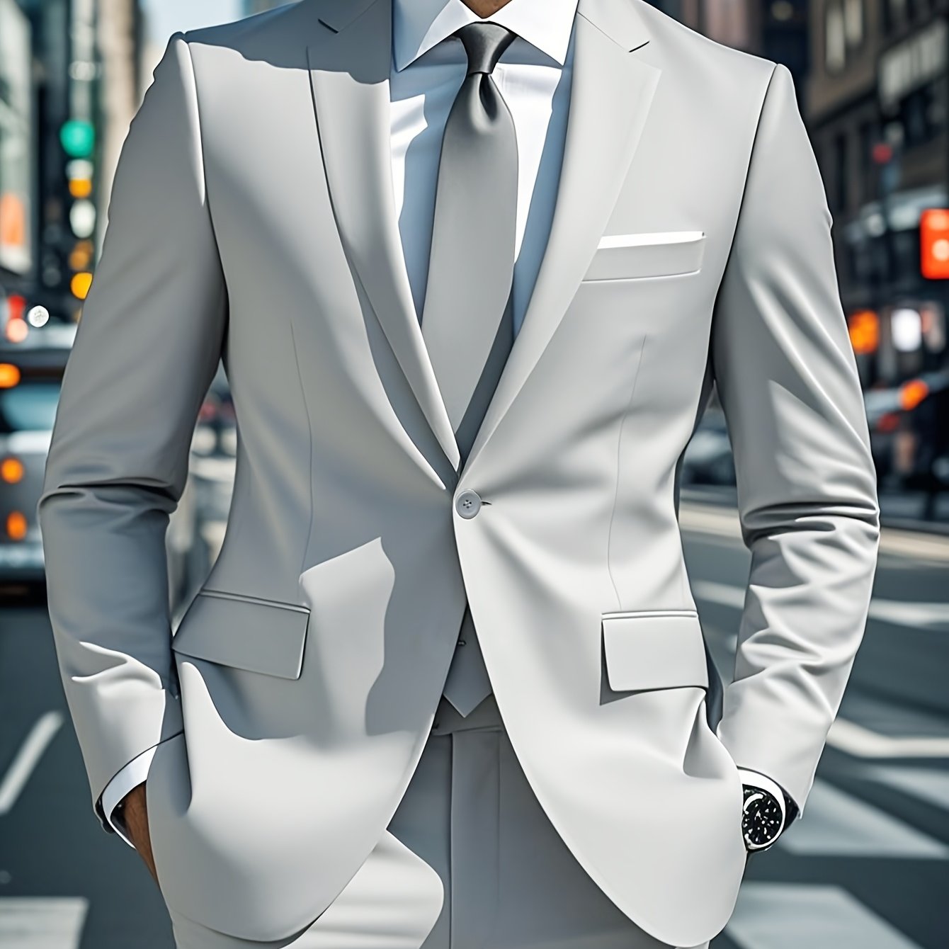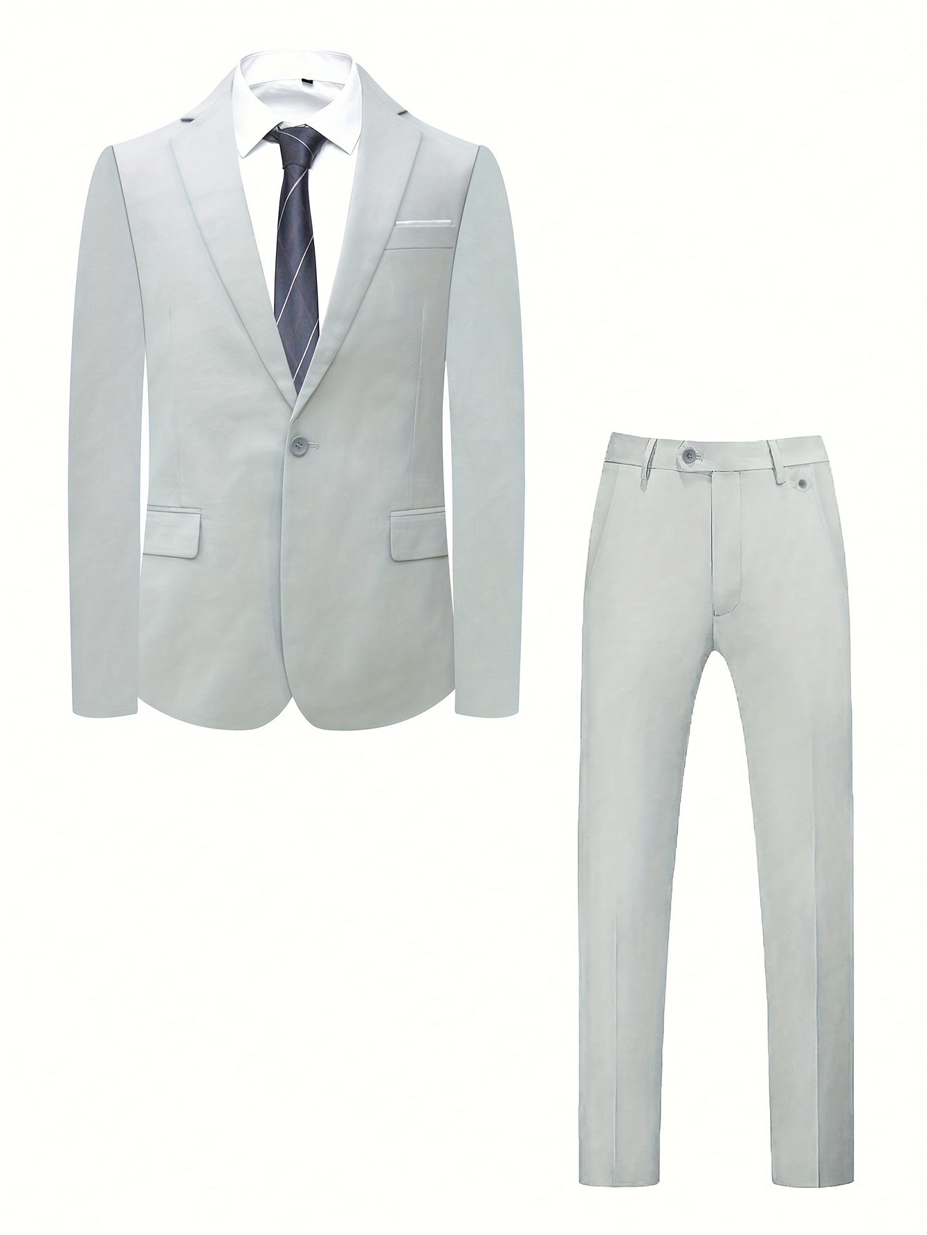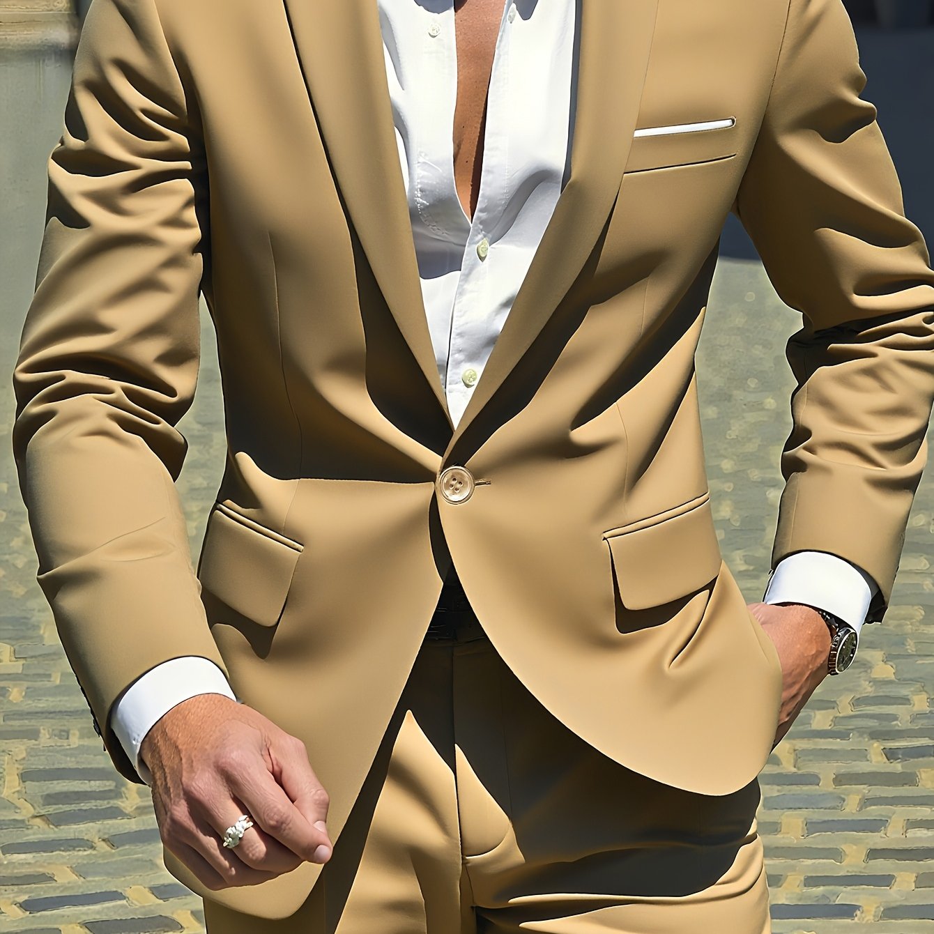 Men’s Beige Business Suit Set - Blazer & Dress Pants, Casual Style