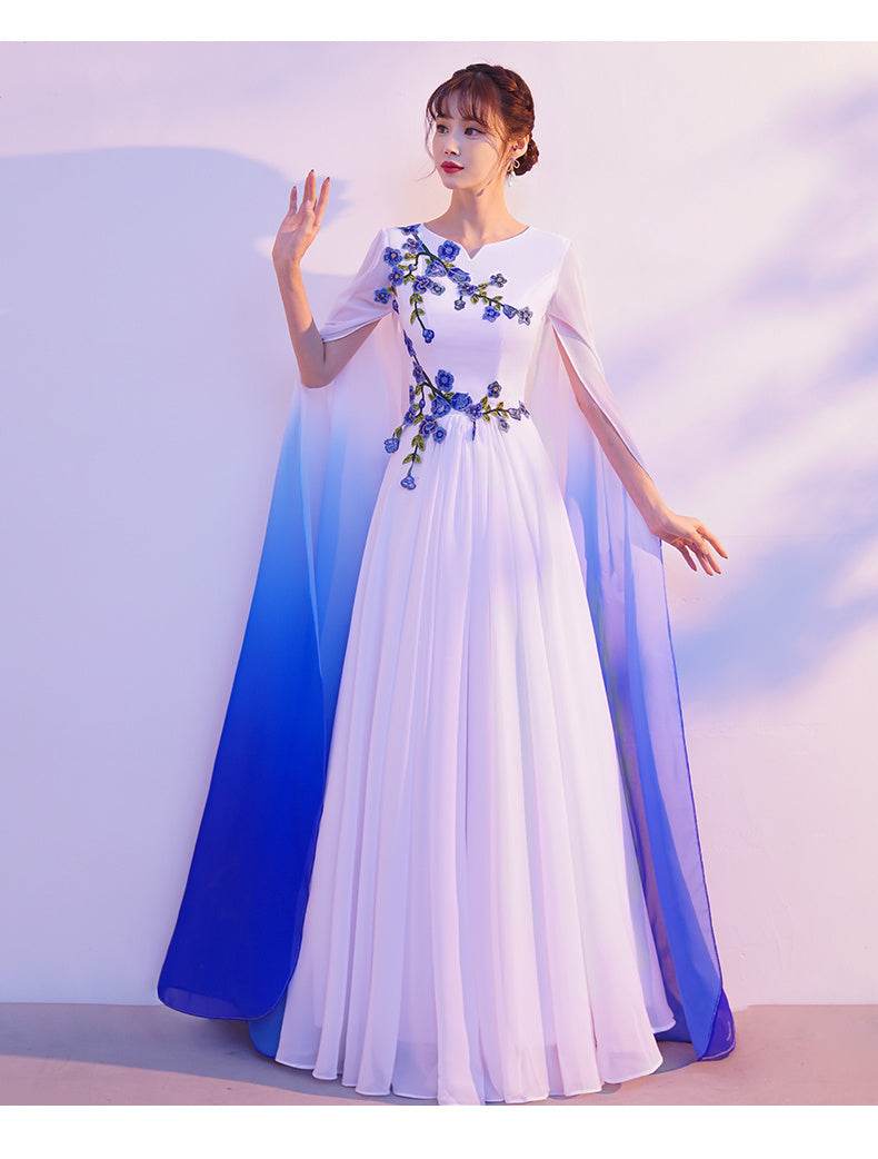 Introducing the Buycenter Red Choral Dress, designed for song competitions and special occasions. With its elegant U-neck style and stunning white and blue gradient, this evening dress combines beauty and sophistication to make you stand out. Available in various sizes, it ensures a perfect fit for everyone.