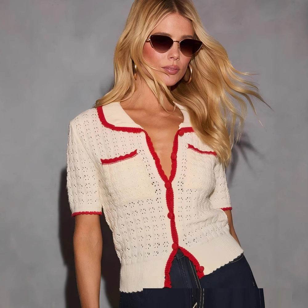 Buycenter Women's Contrast Color Pocket Sweater - Slim Fit Cardigan