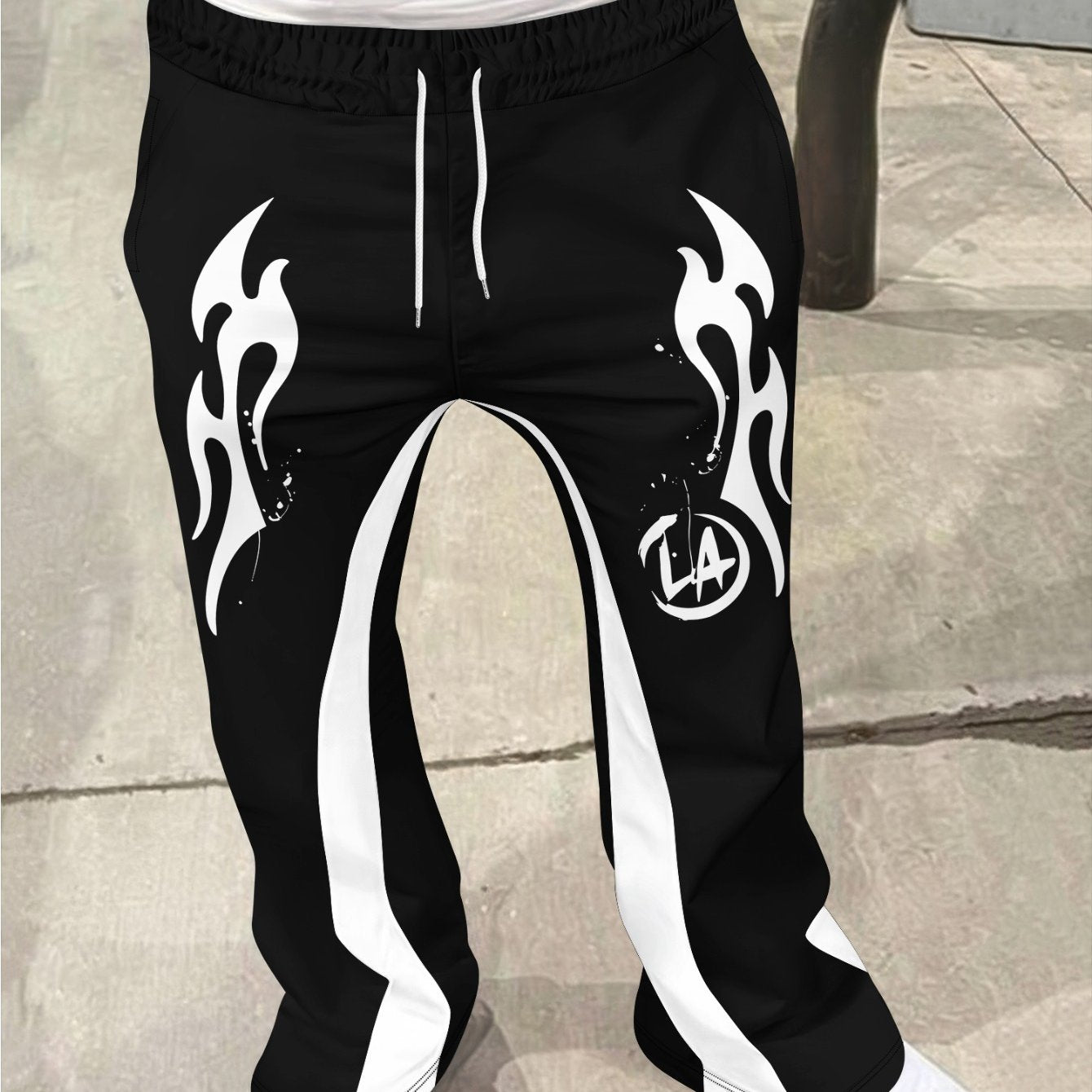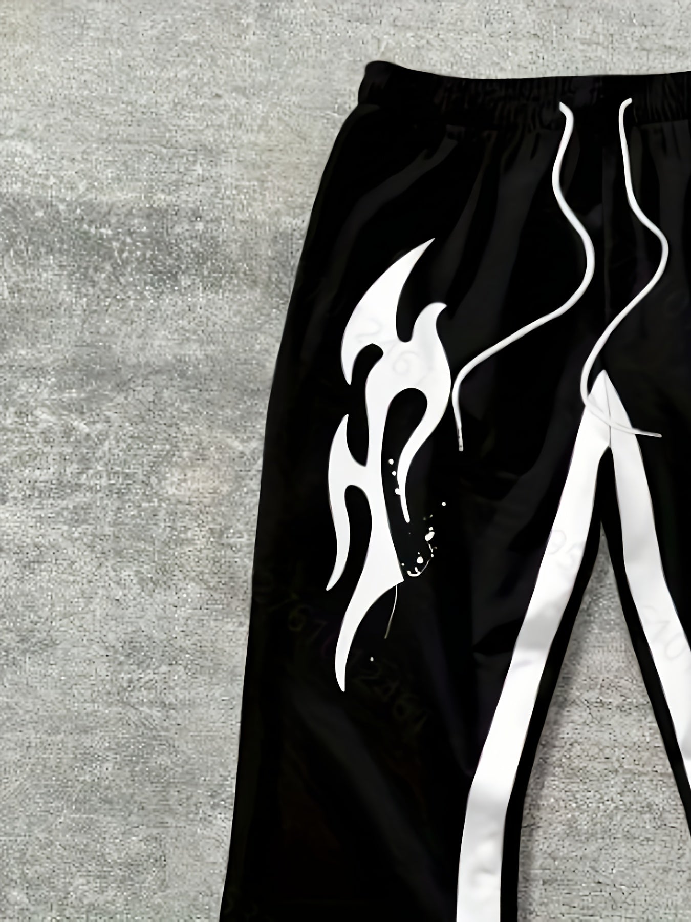 Men’s 3D Print Flared Joggers - Black & White Casual Athletic Pants