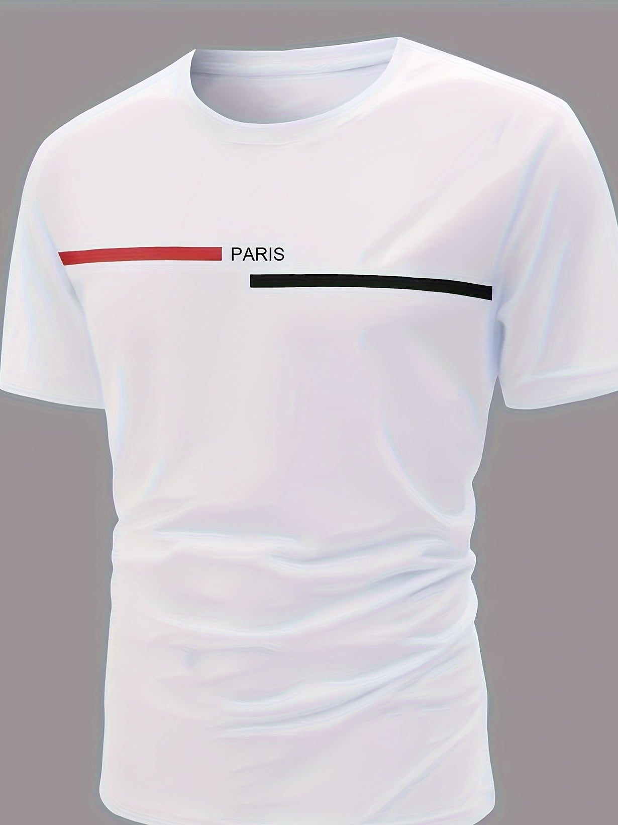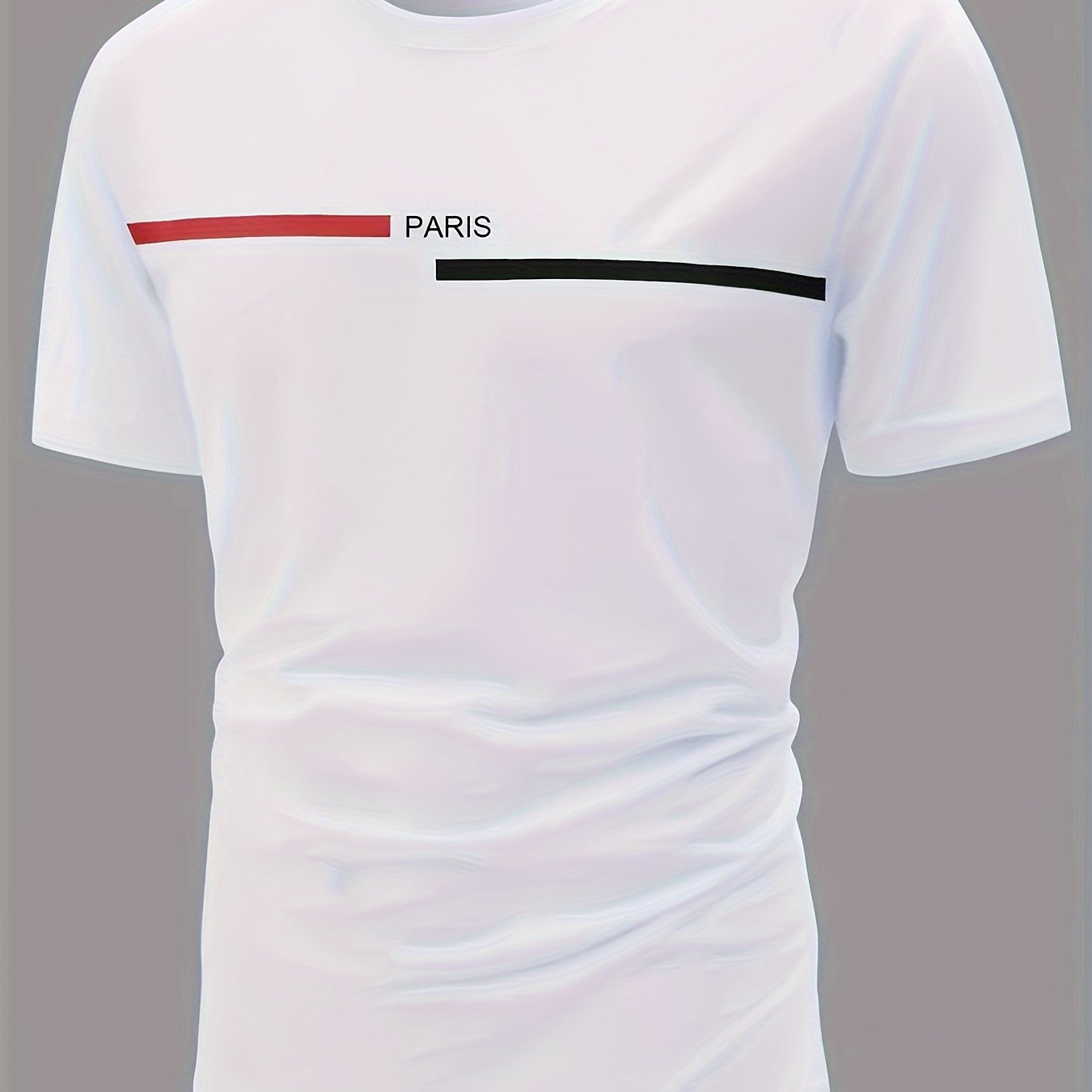 Men's Casual Short-Sleeve T-Shirt - Unique Paris Print, Breathable Polyester