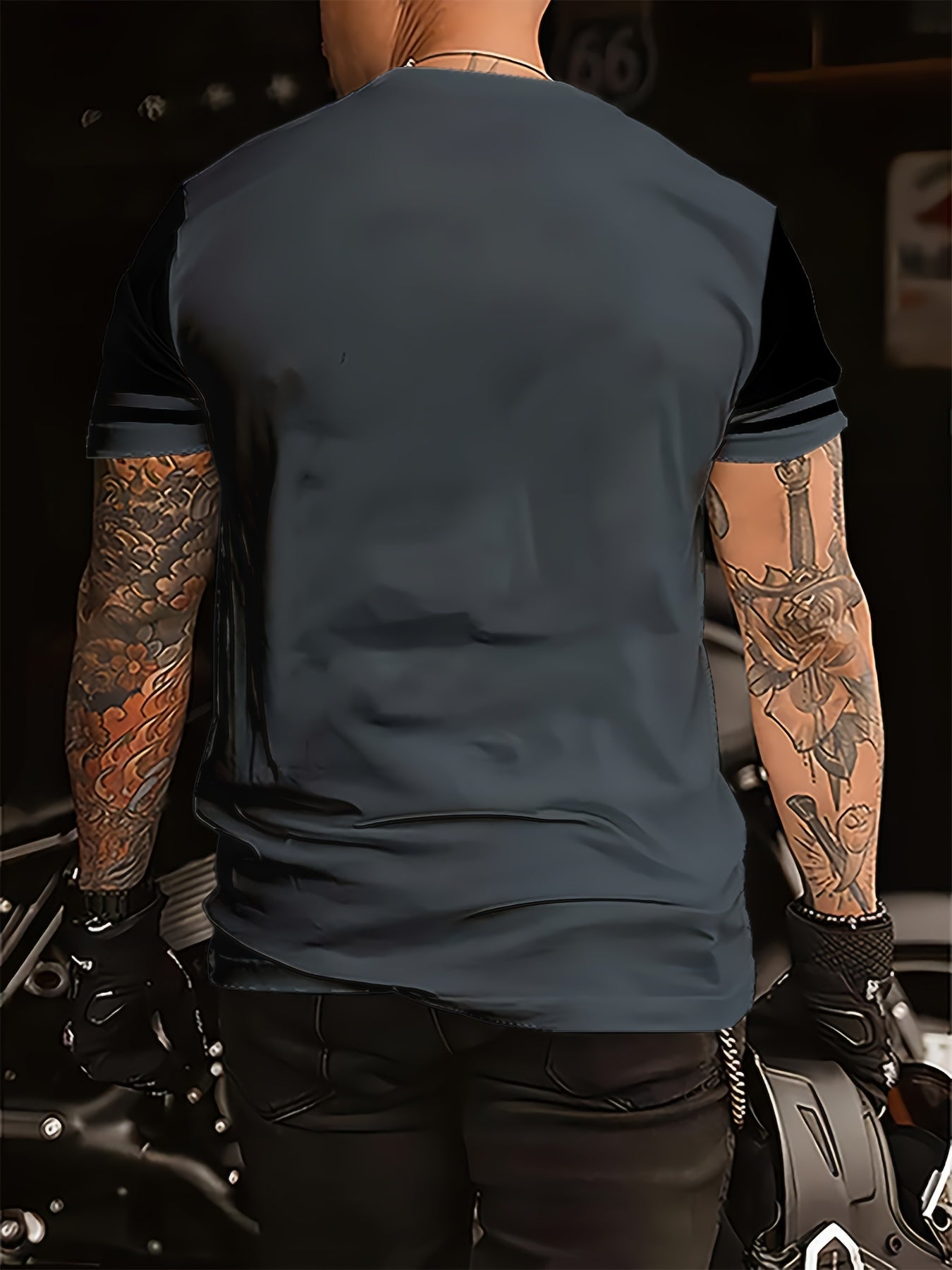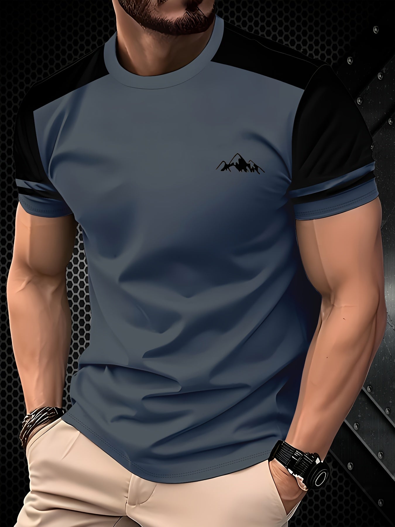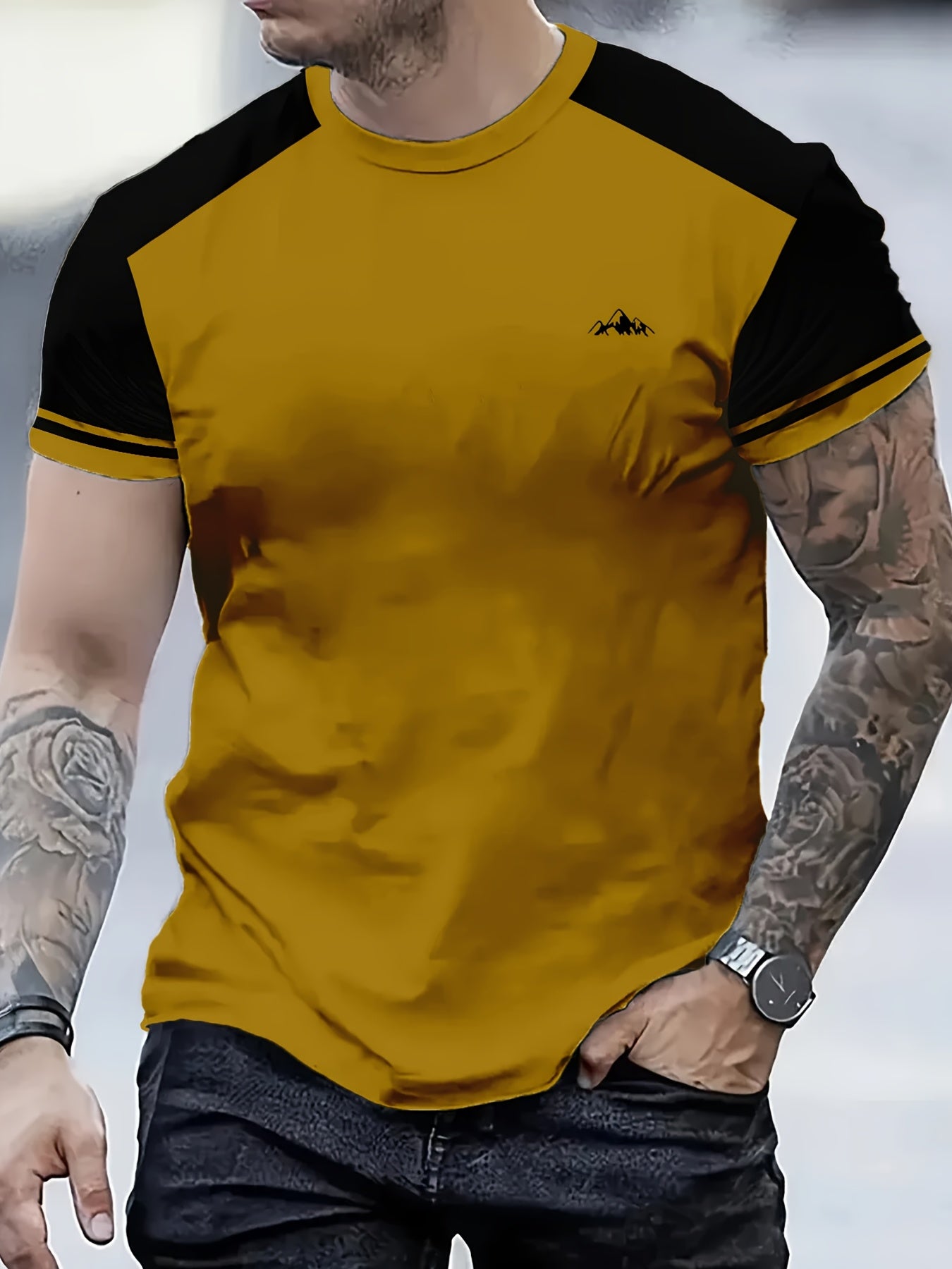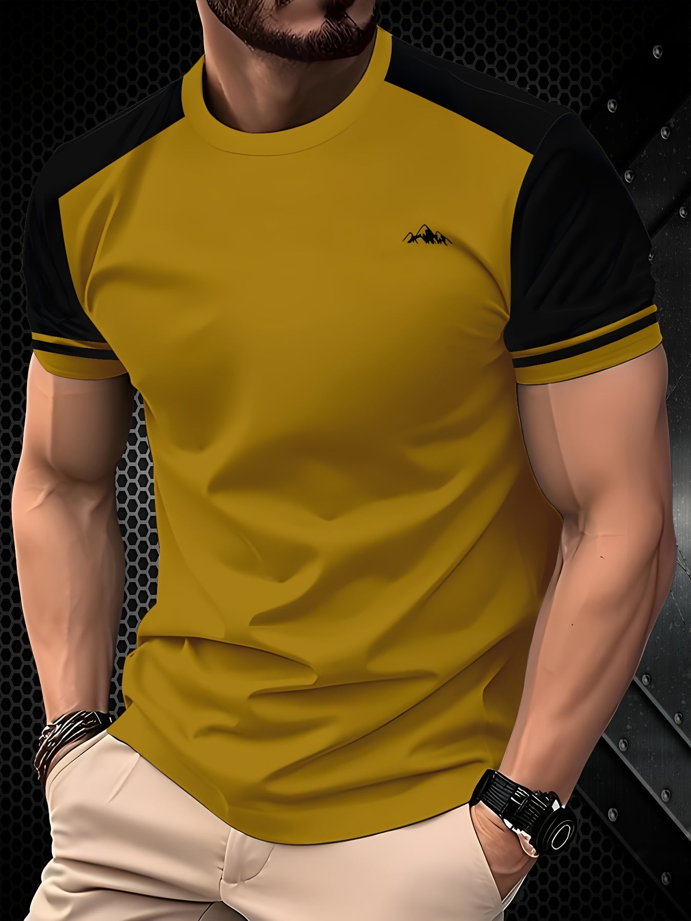 Men's Mustard & Black Color Block T-Shirt - 3D Printed, Breathable Fabric