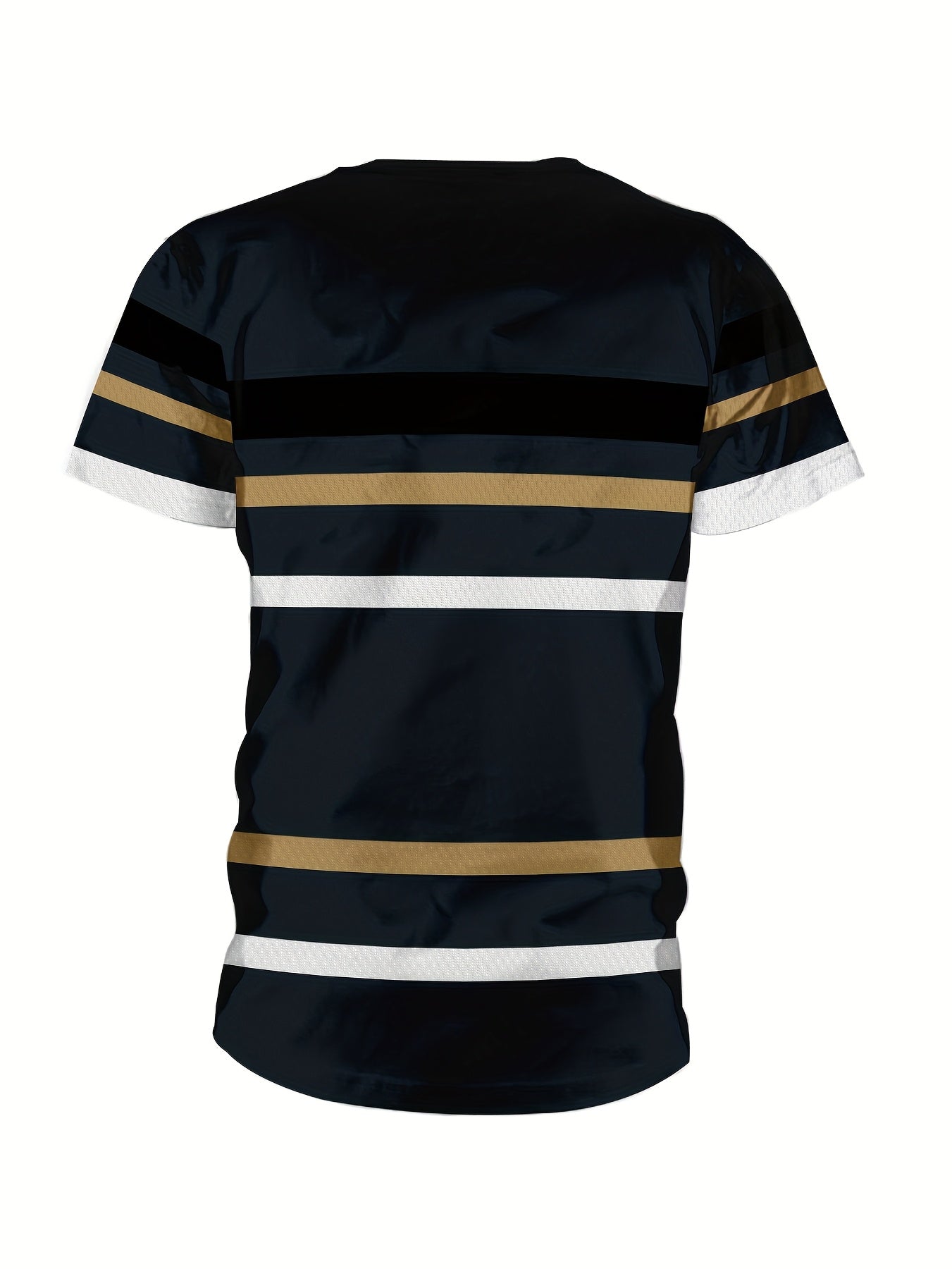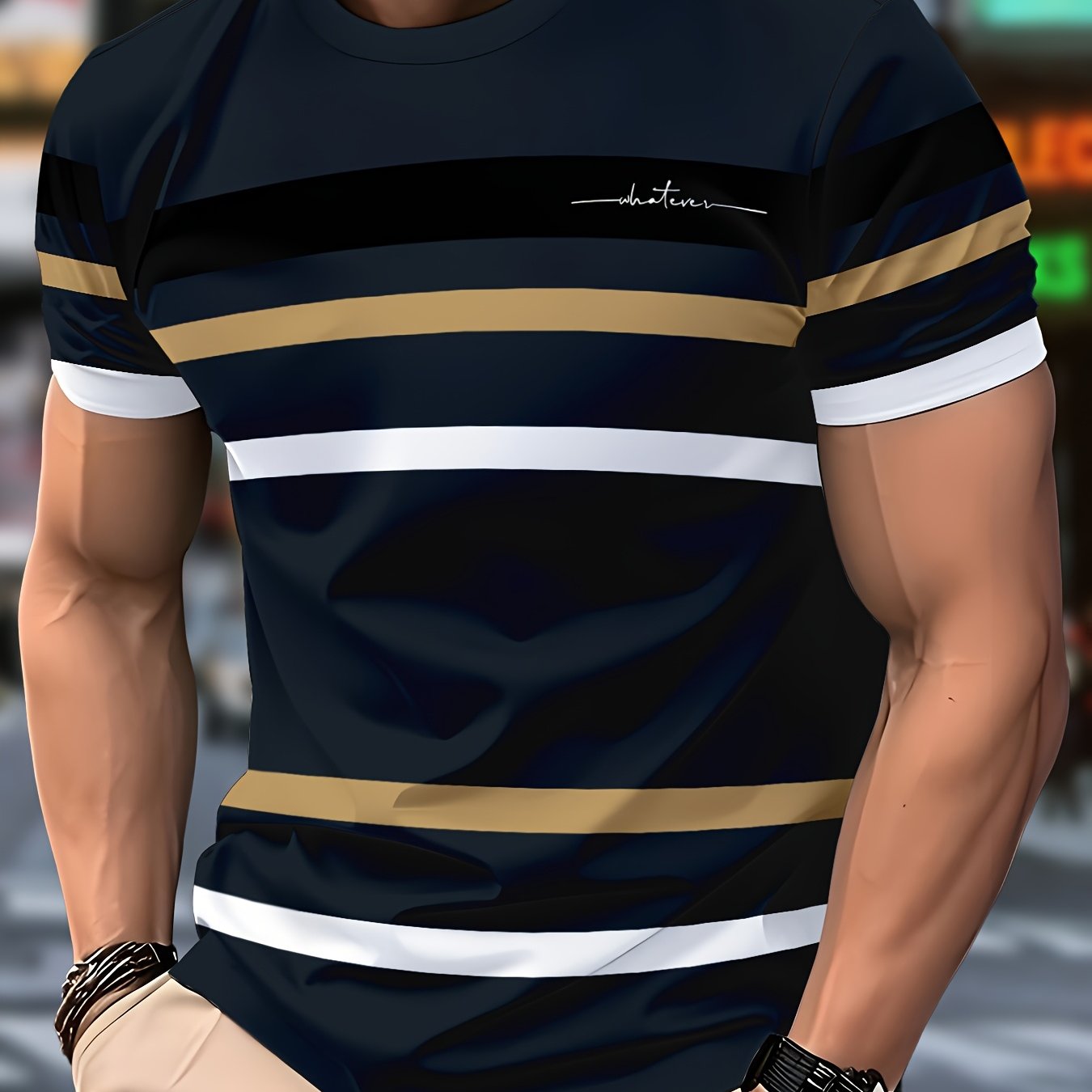 Men's 3D Printed Striped T-Shirt - Navy Blue, Casual Round Neck Fit