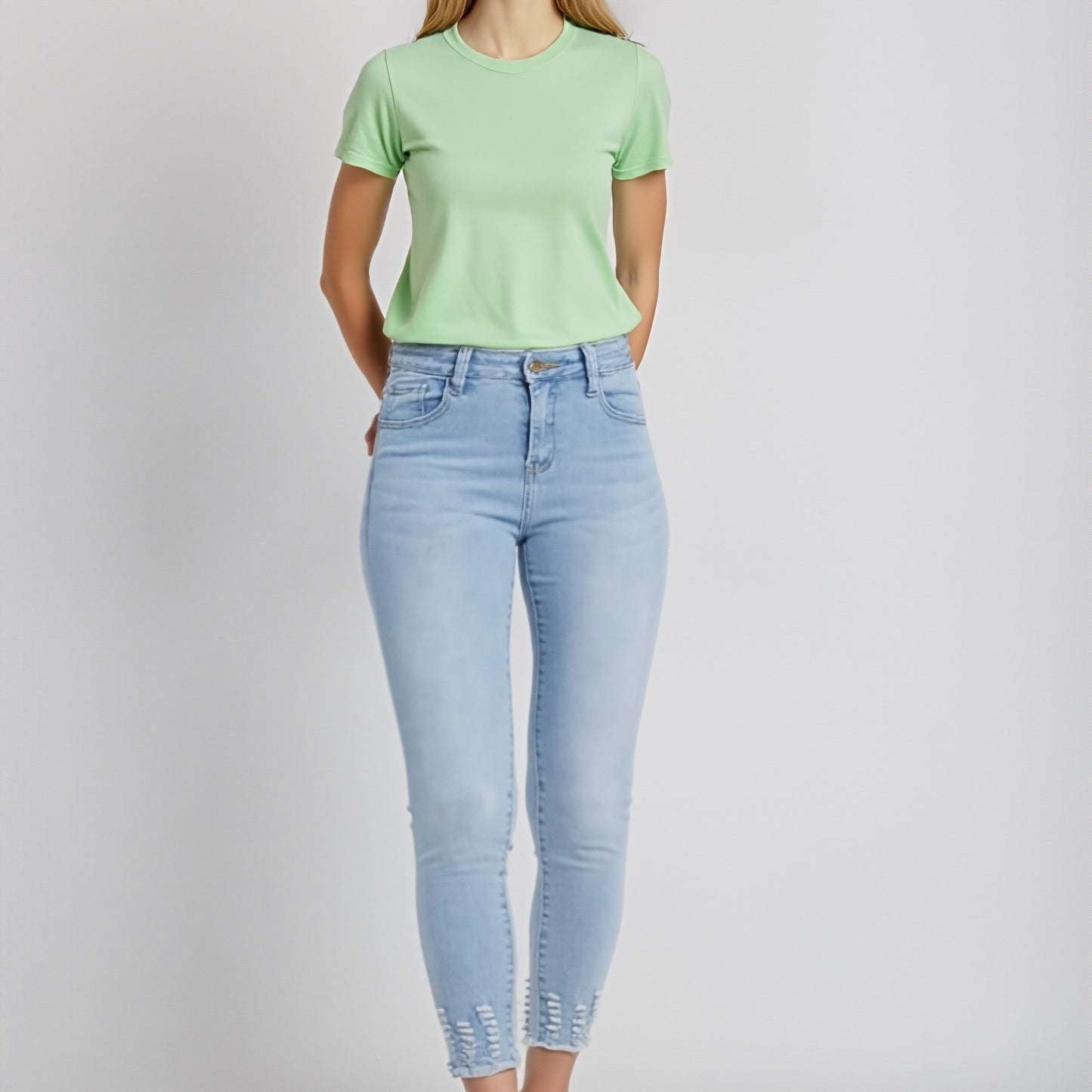 Jean Skinny Femme Bleu Clair - Confort Élastique, Taille Plus